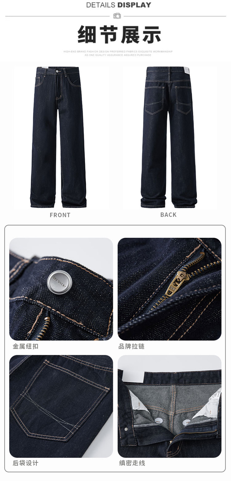 Design collection of open-stitch jeans for men in autumn American cleanfit straight pants retro casual versatile wide-leg pants