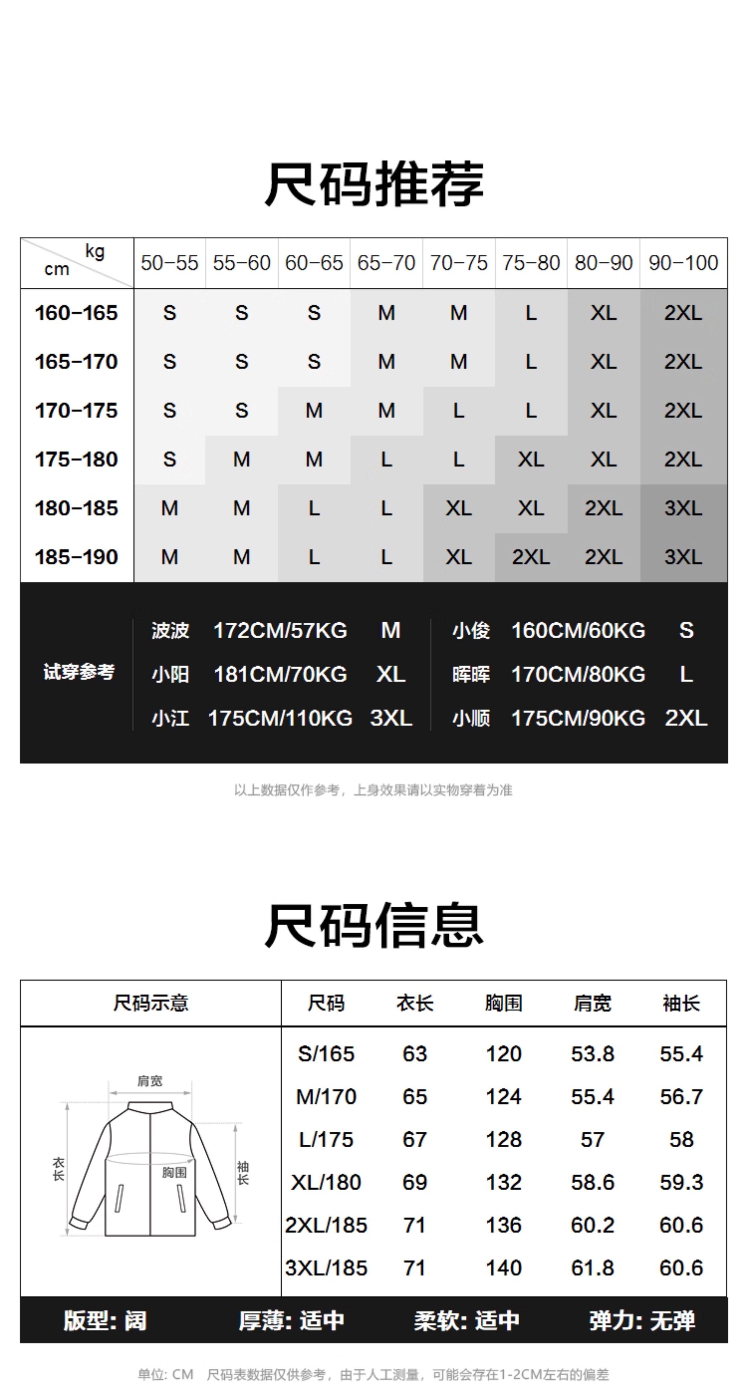 China (cm) 165 / 88-90 170 / 96-98 175 / 108-110 180 / 118-122 185 / 126-130