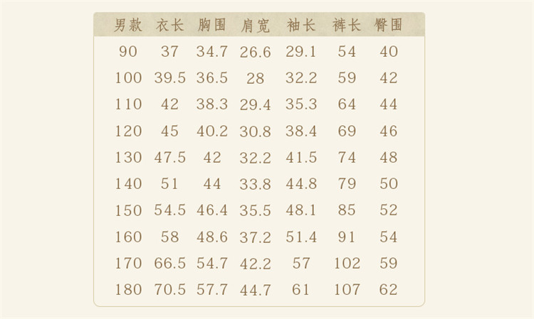 China (cm) 165 / 88-90 170 / 96-98 175 / 108-110 180 / 118-122 185 / 126-130