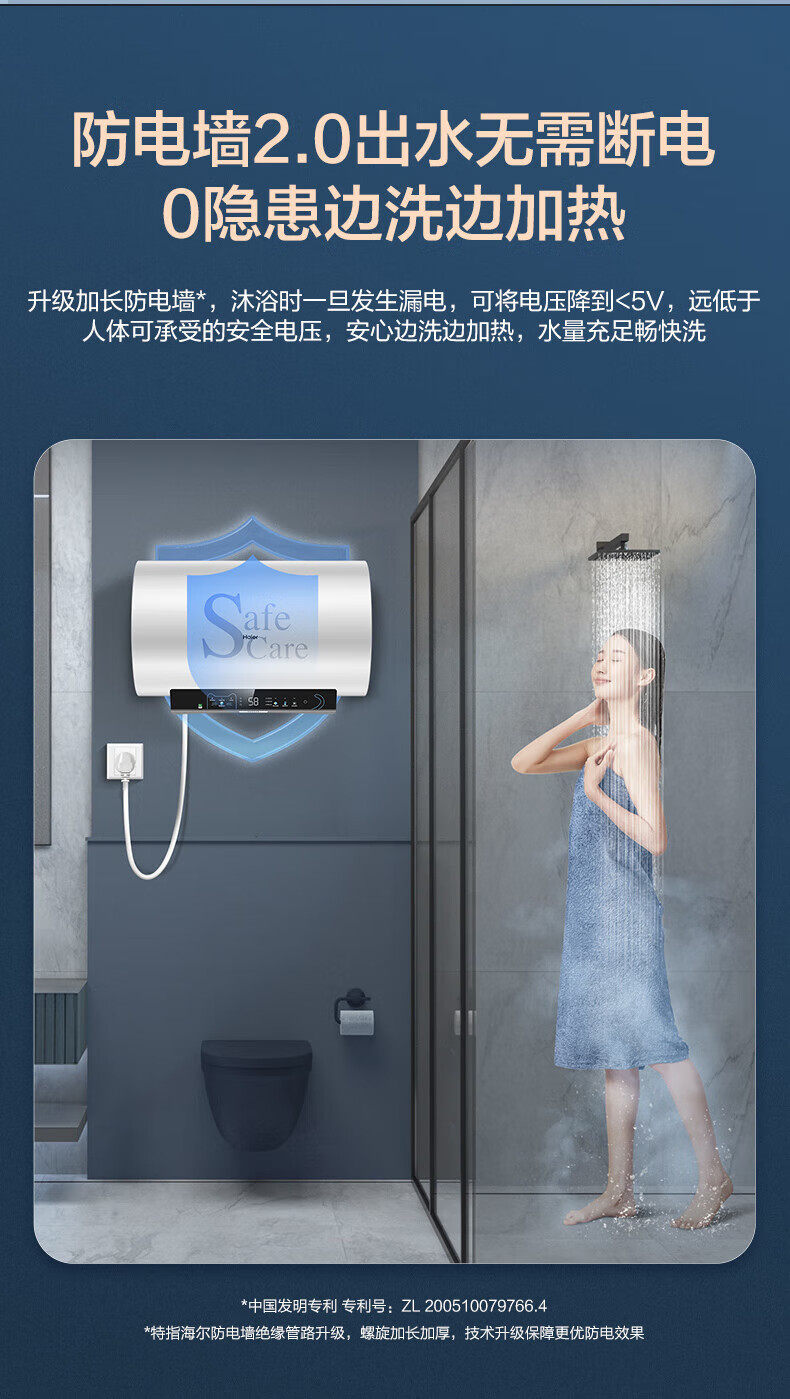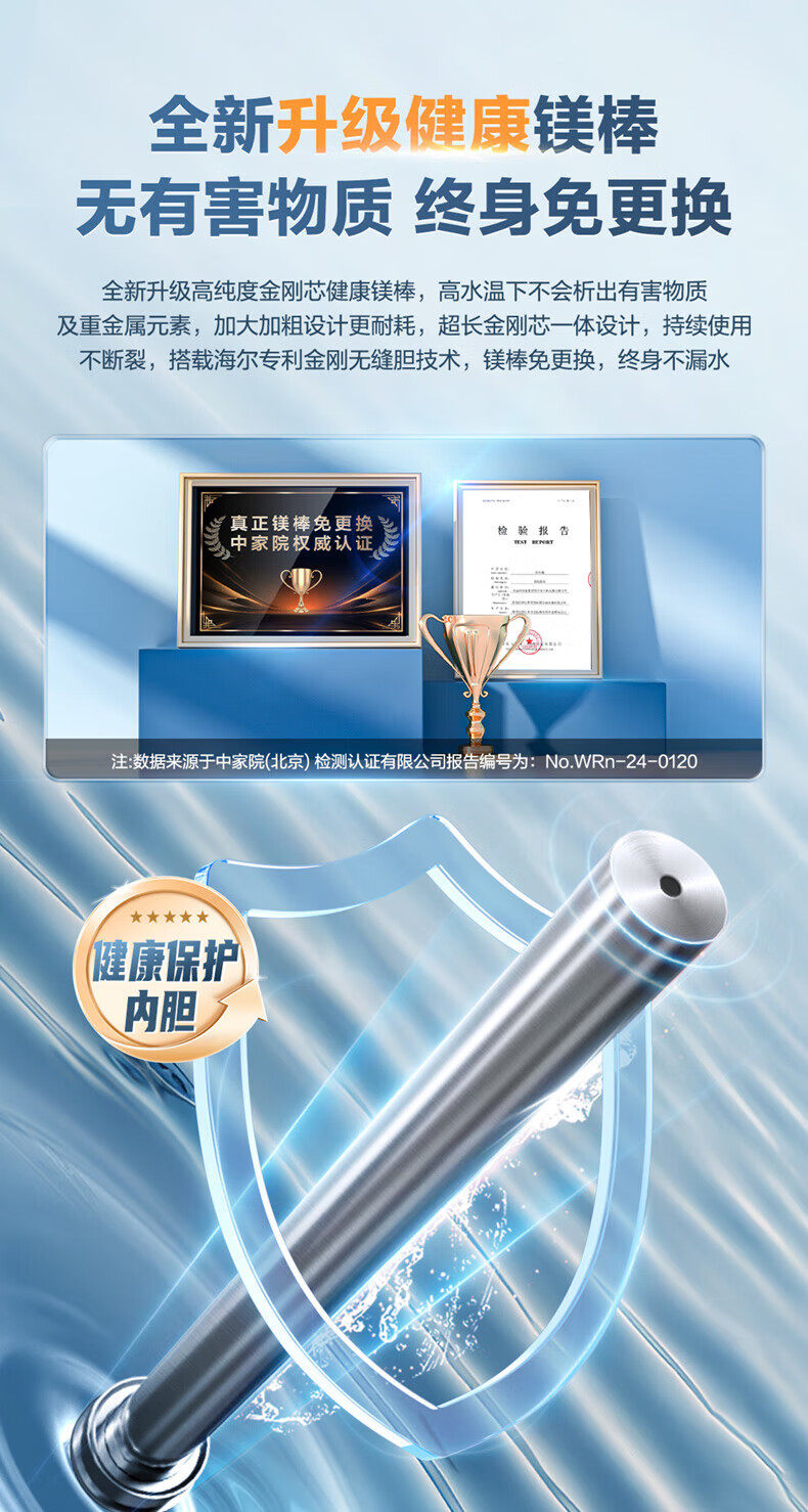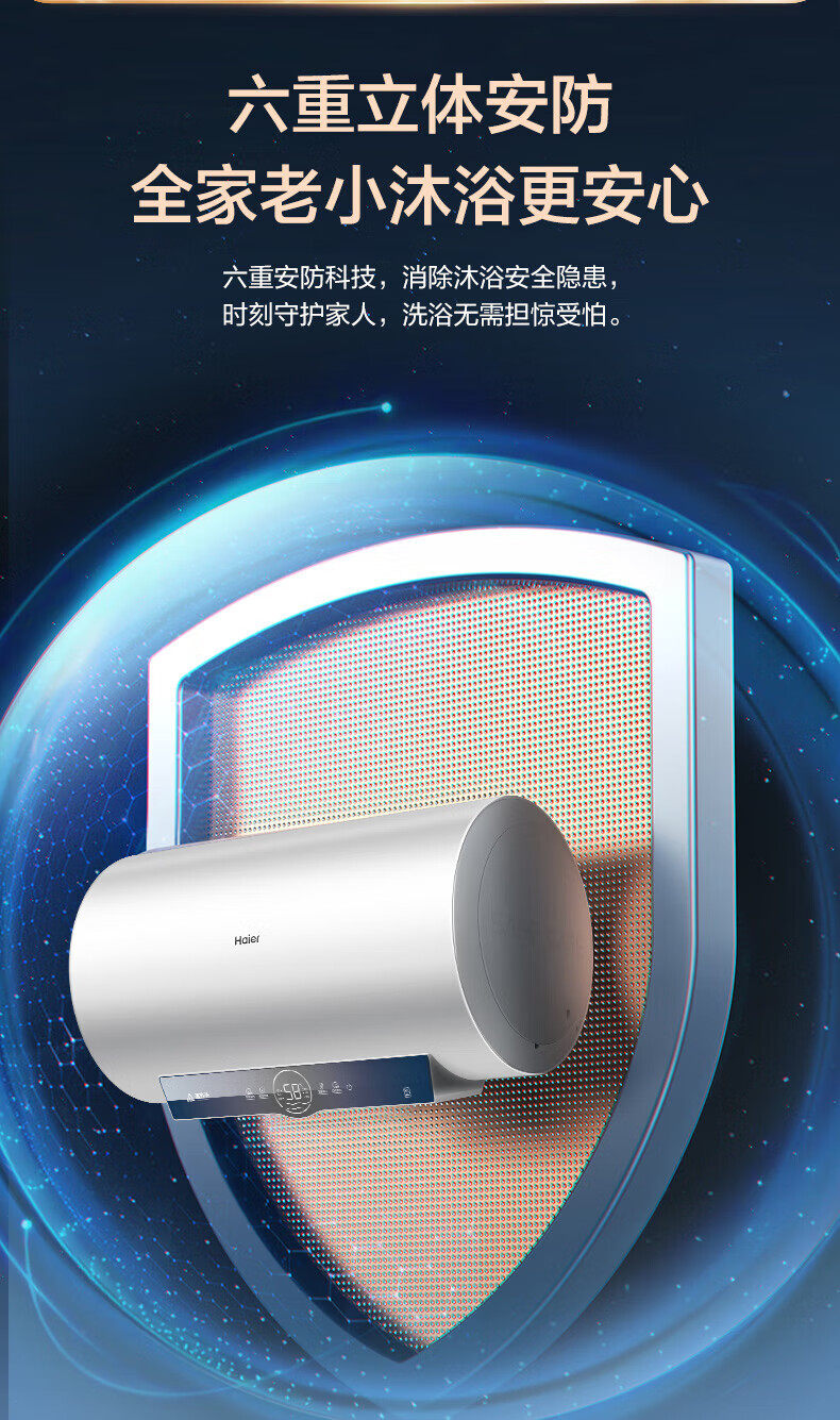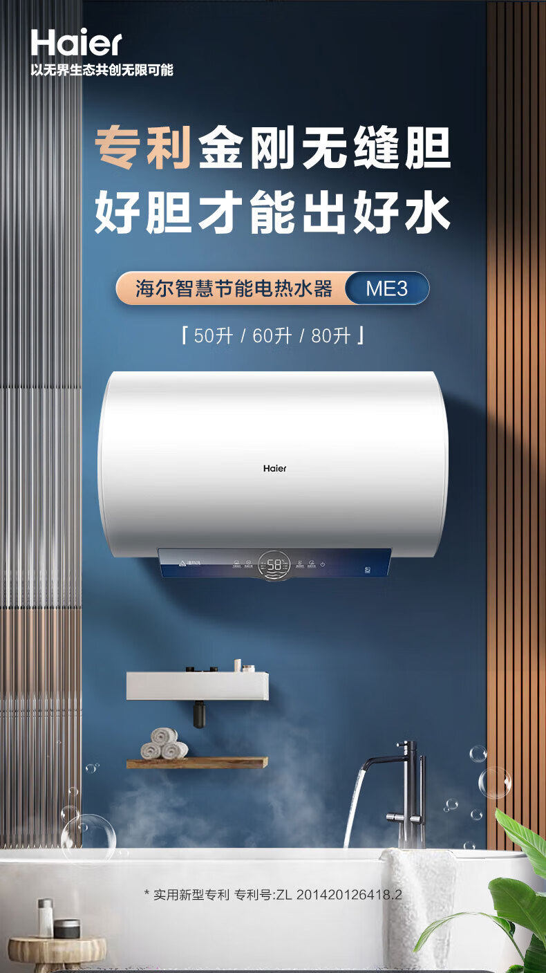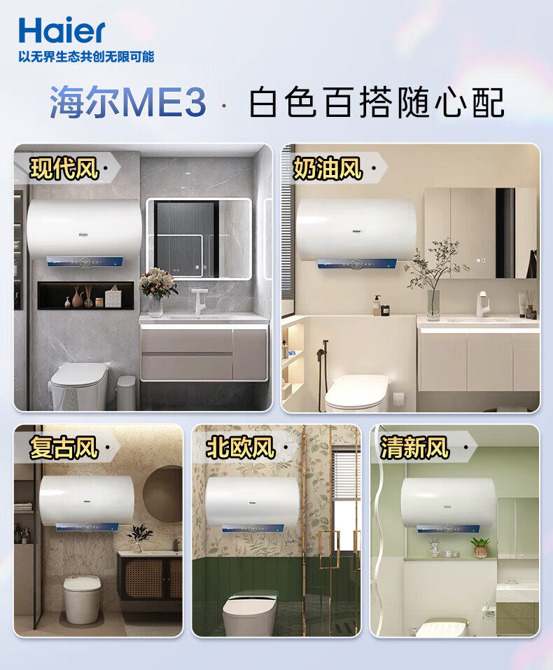 Haier 80-Liter 3000W Instant Water Heater, First-Class Energy Efficiency, Intelligent Control, Magnesium Rod, No Need to Replace, 60-Liter Ec8001-Me3U1