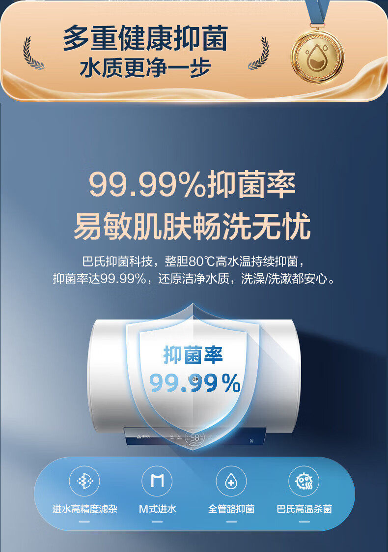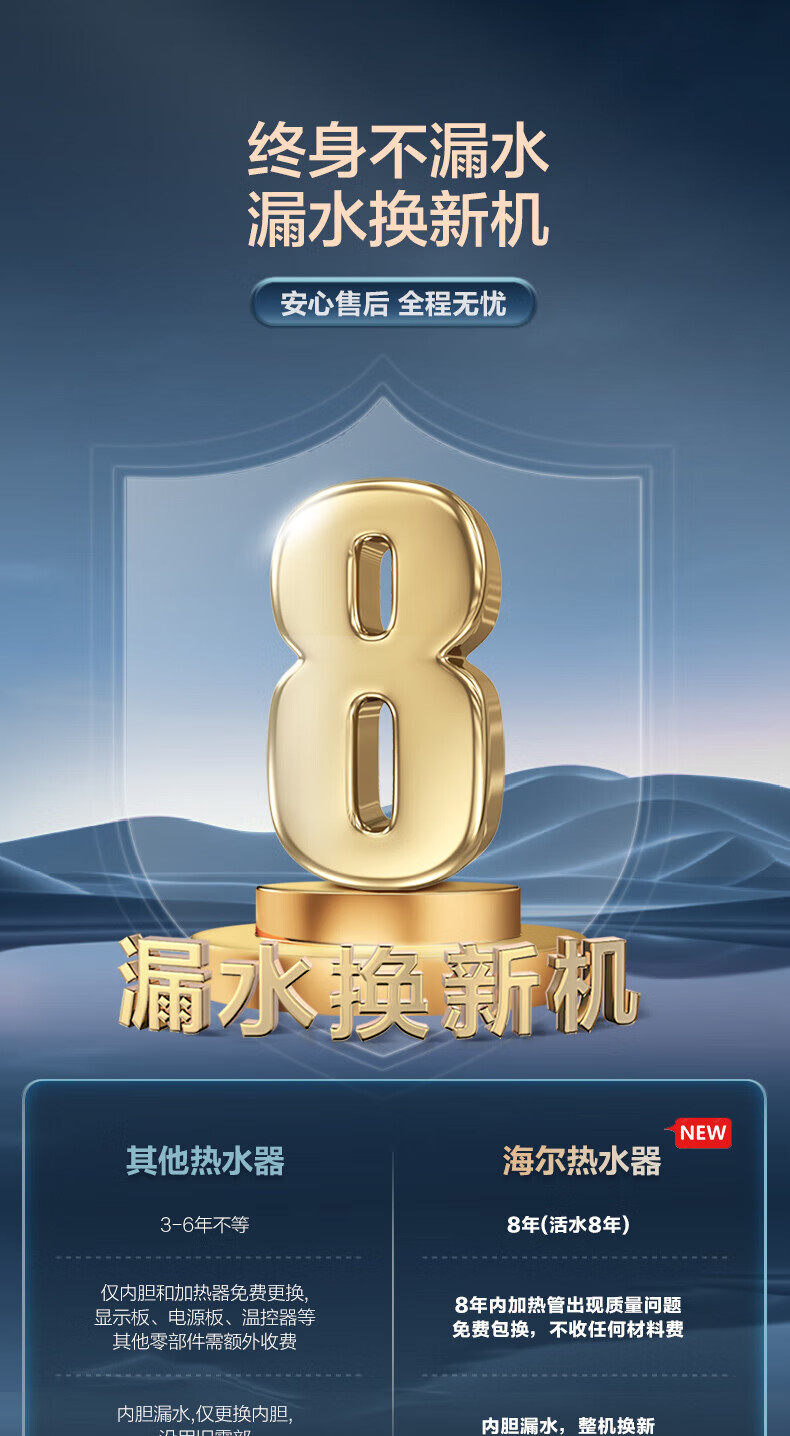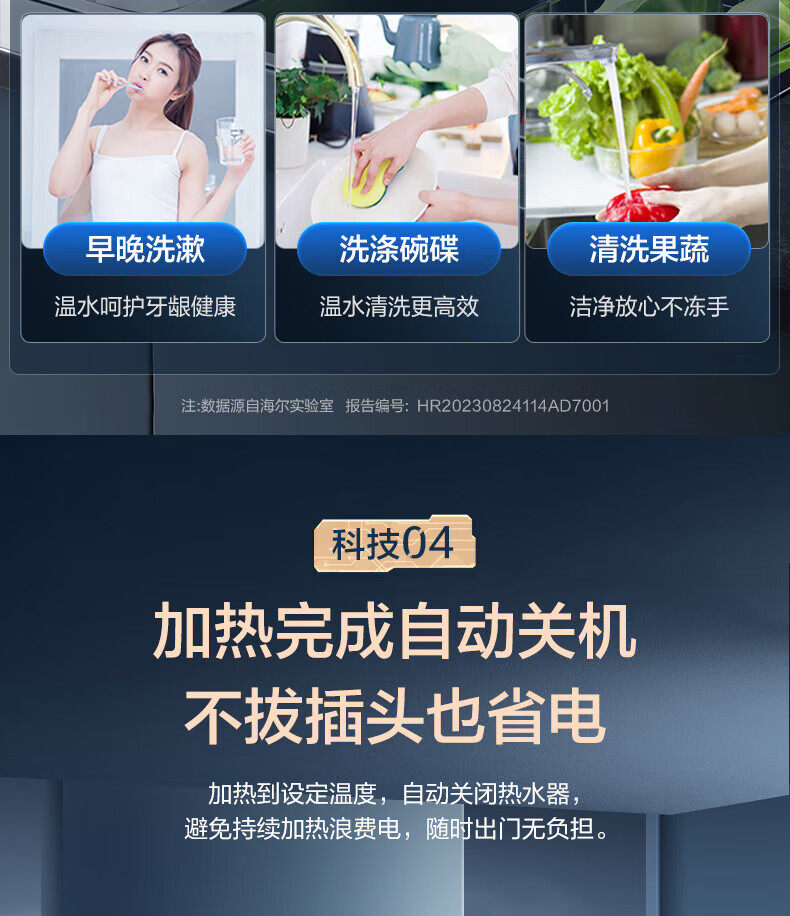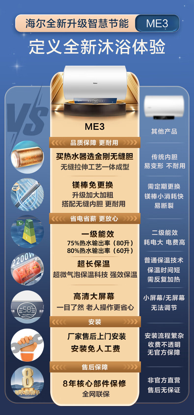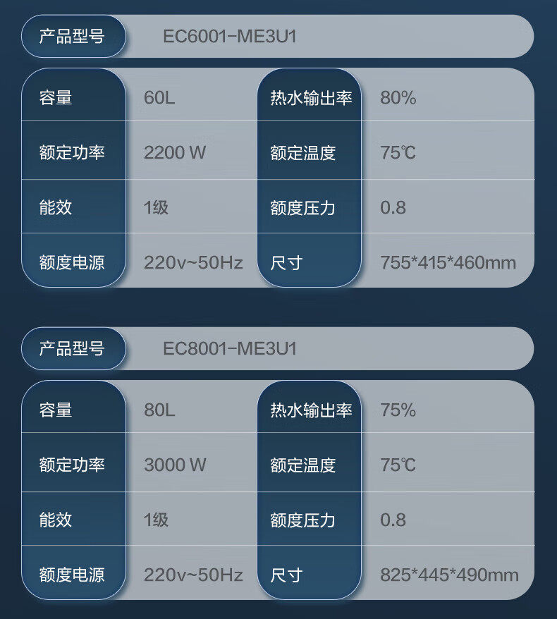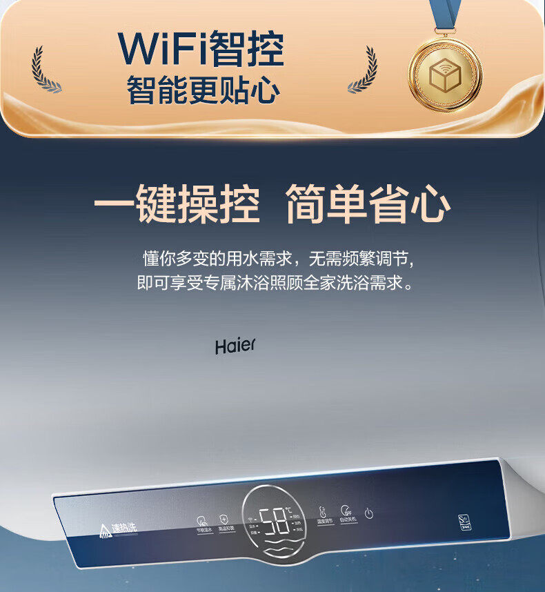 Haier 80-Liter 3000W Instant Water Heater, First-Class Energy Efficiency, Intelligent Control, Magnesium Rod, No Need to Replace, 60-Liter Ec8001-Me3U1
