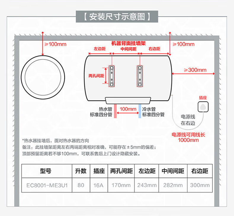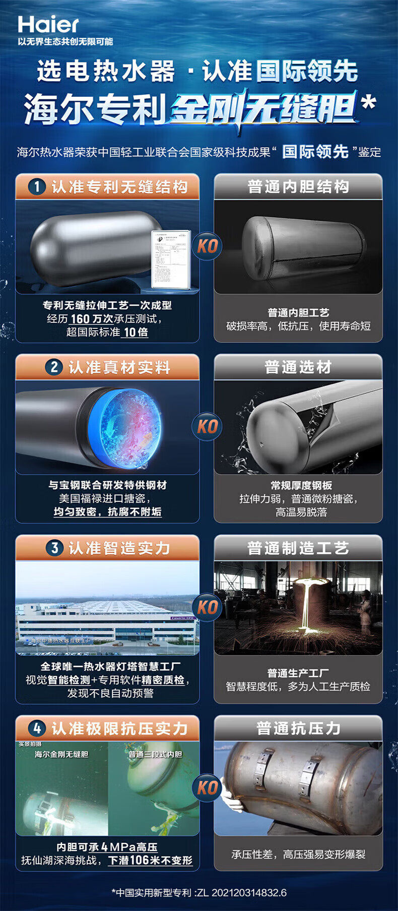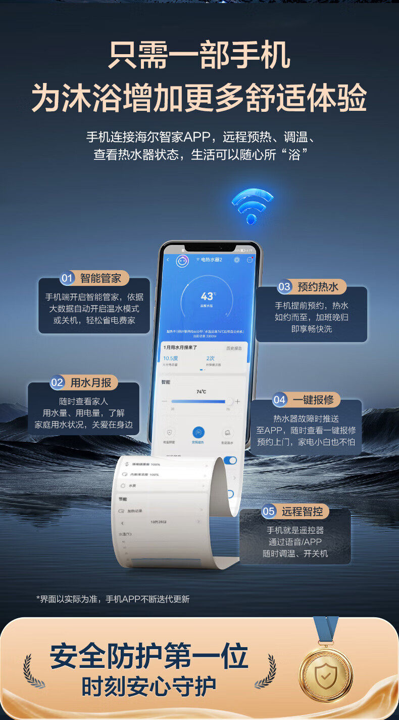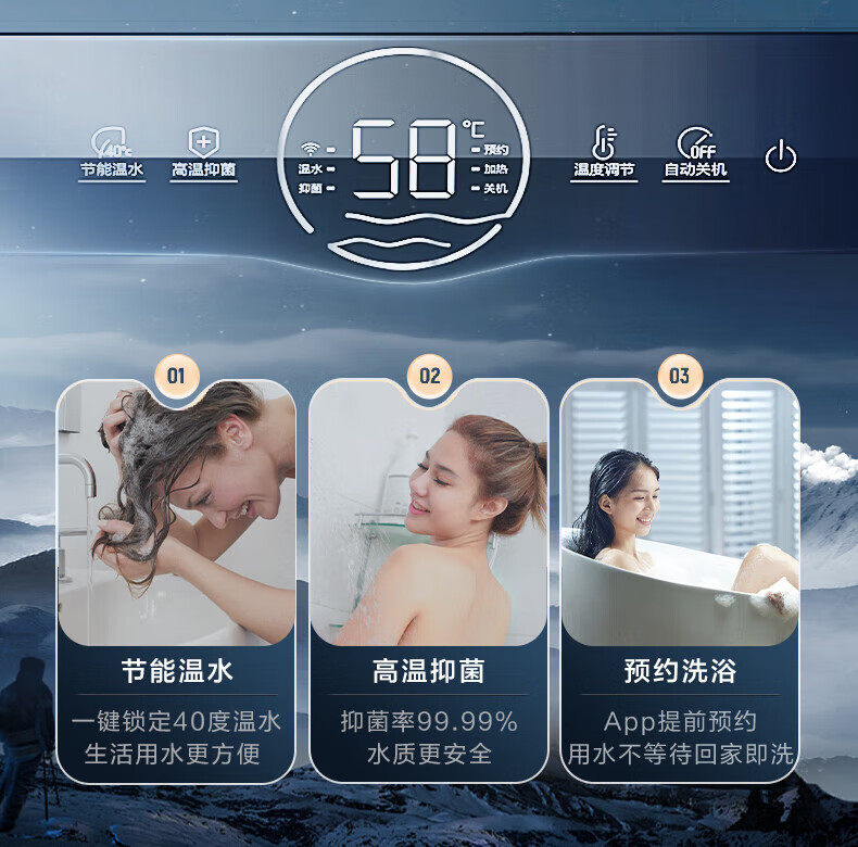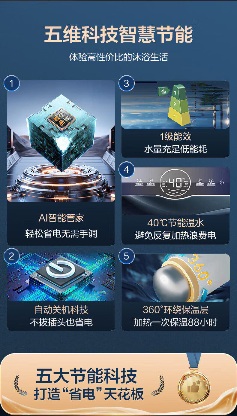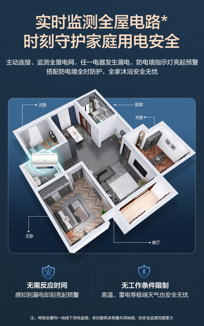Haier 80-Liter 3000W Instant Water Heater, First-Class Energy Efficiency, Intelligent Control, Magnesium Rod, No Need to Replace, 60-Liter Ec8001-Me3U1
