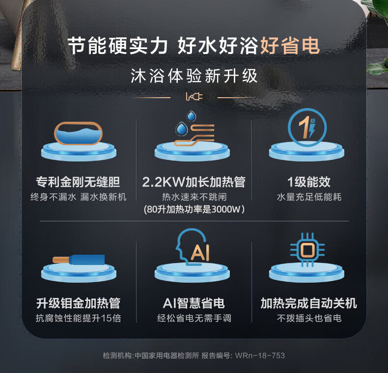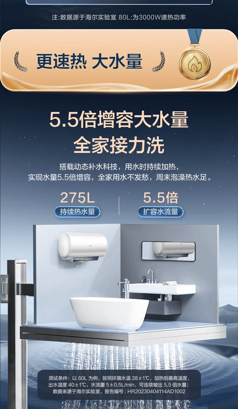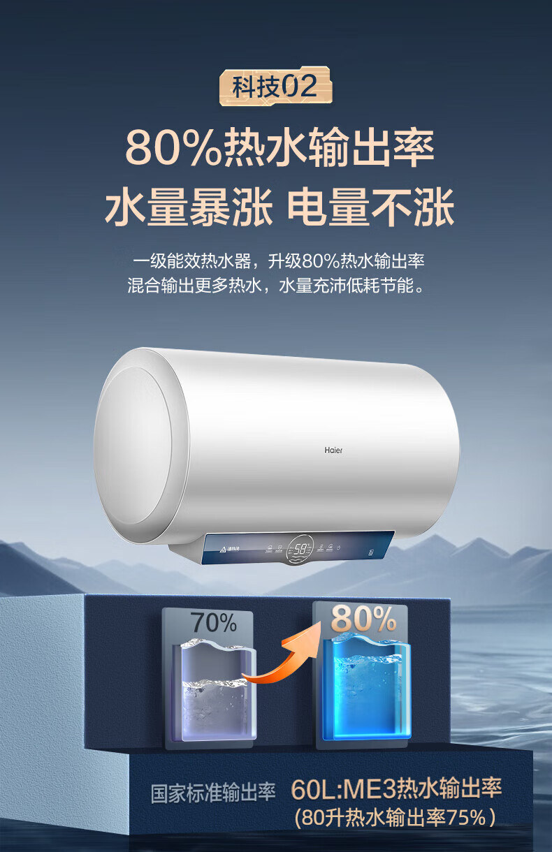 Haier 60-Liter 2200W Electric Water Heater with First-Class Magnesium Rod, No Need to Replace, Smart Control, 80-Liter Model Ec6001-Me3U1