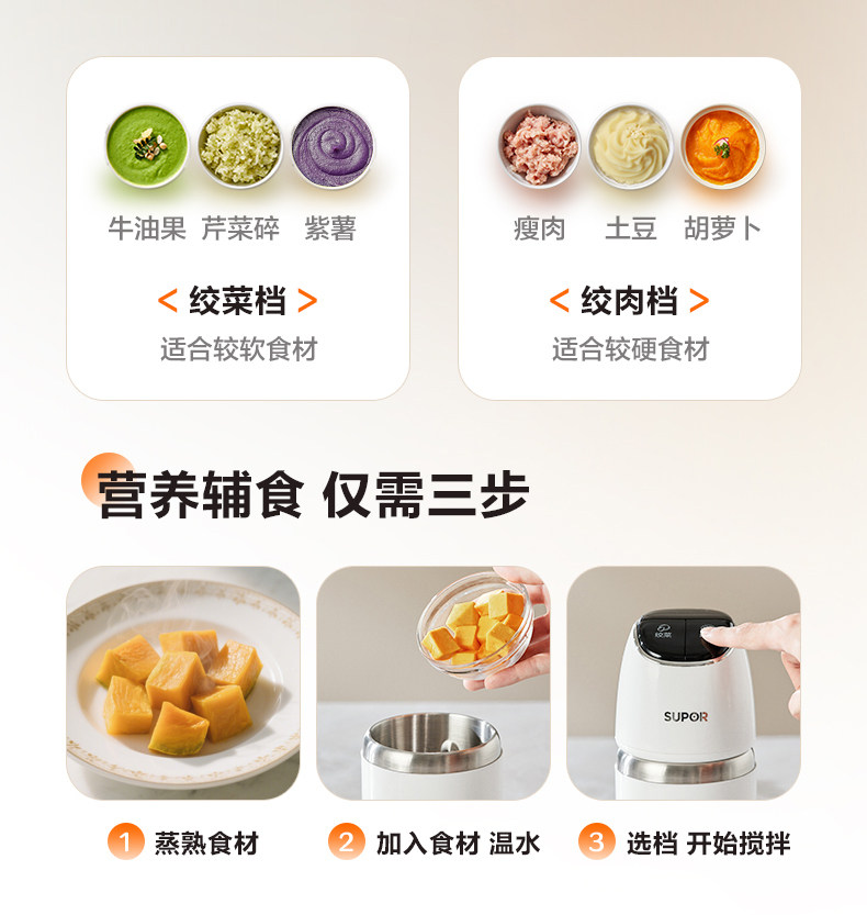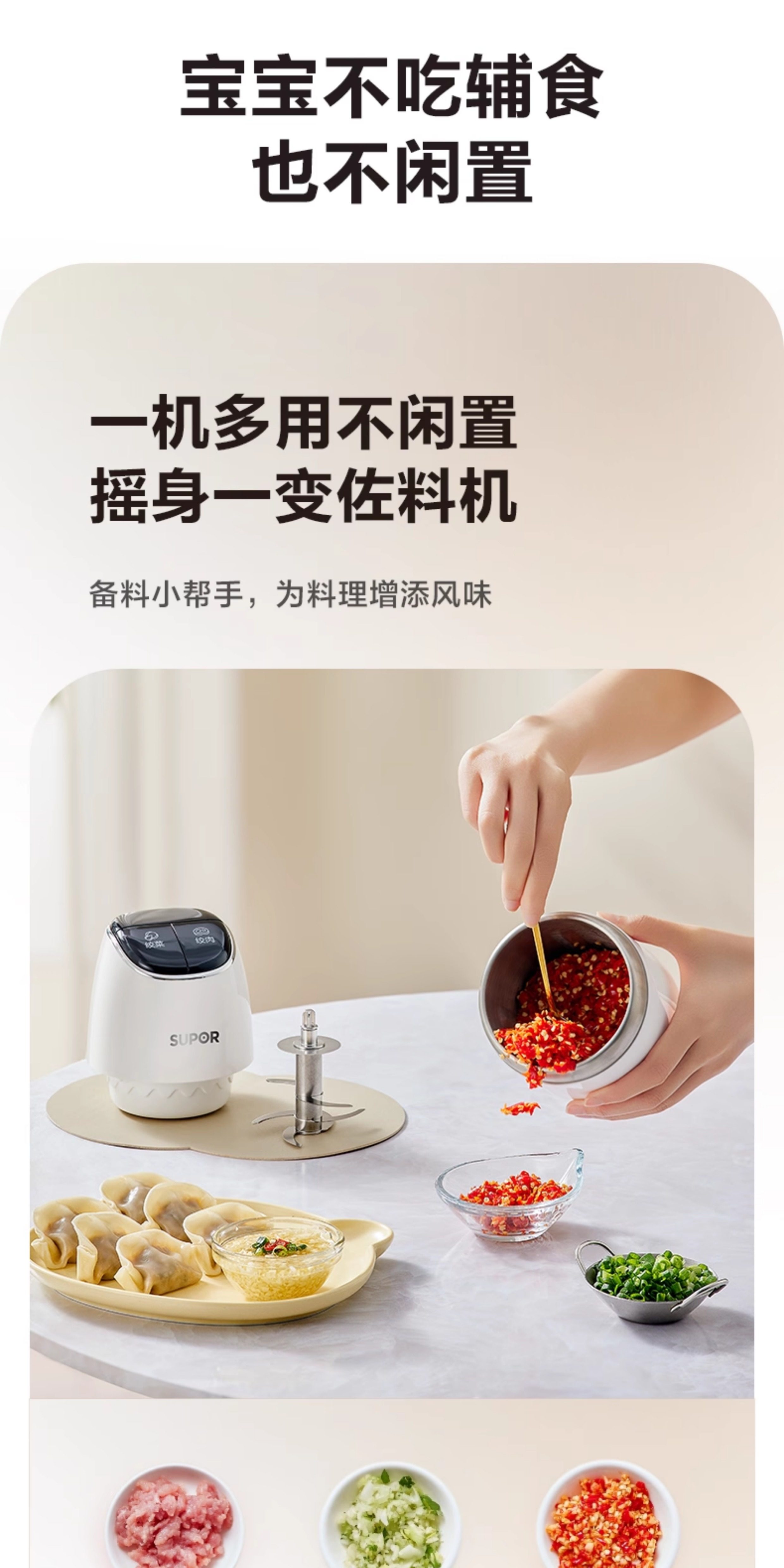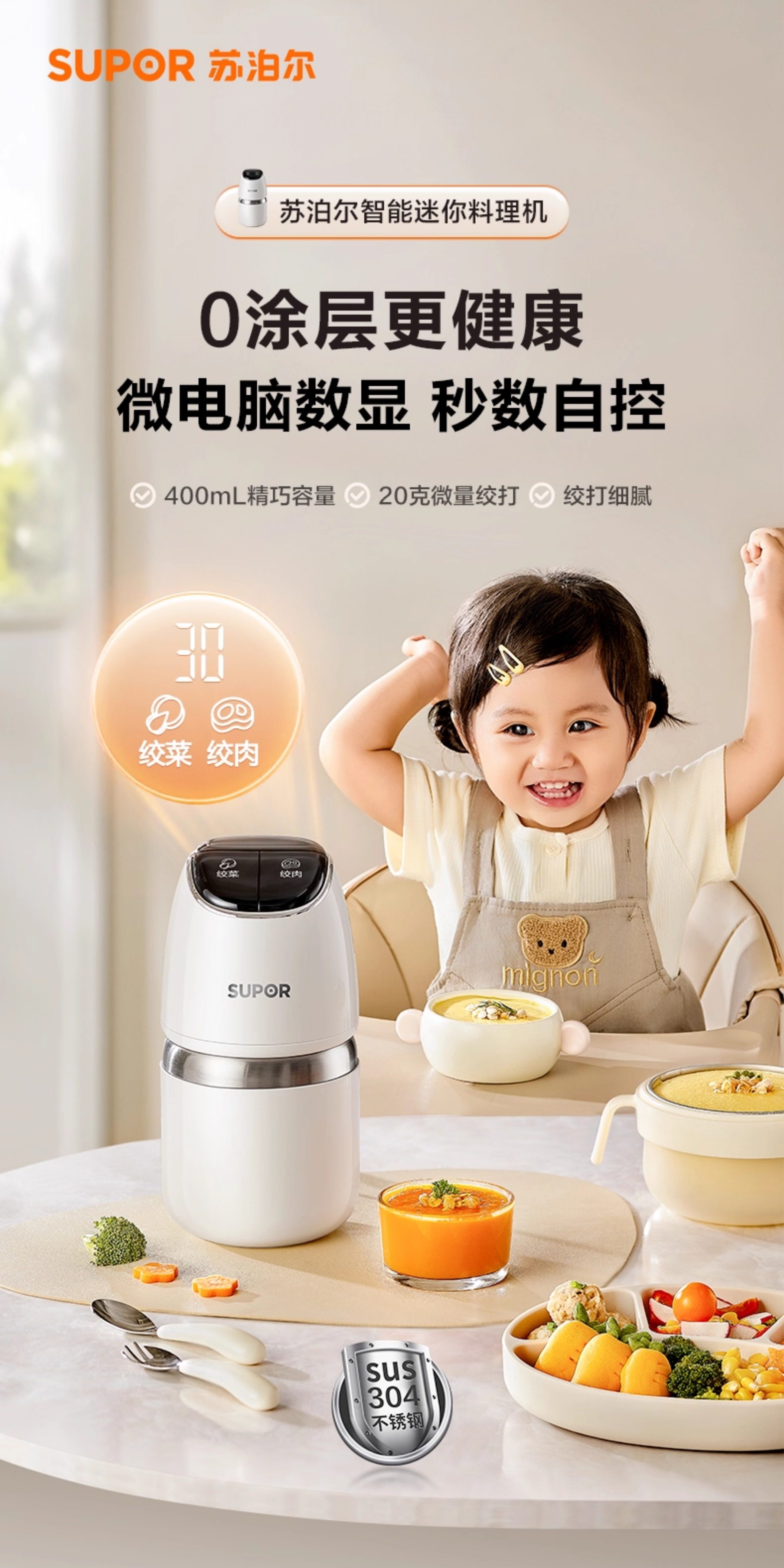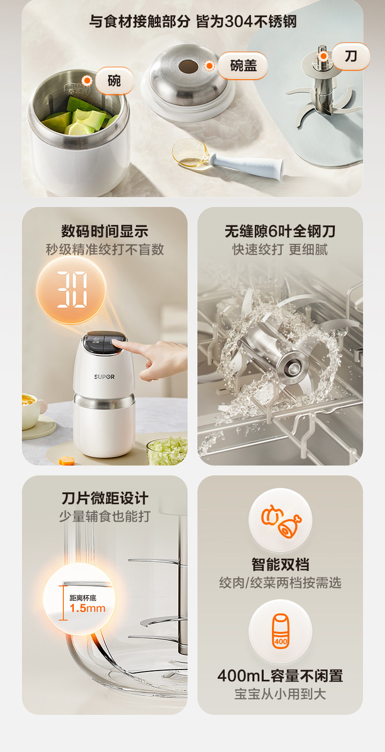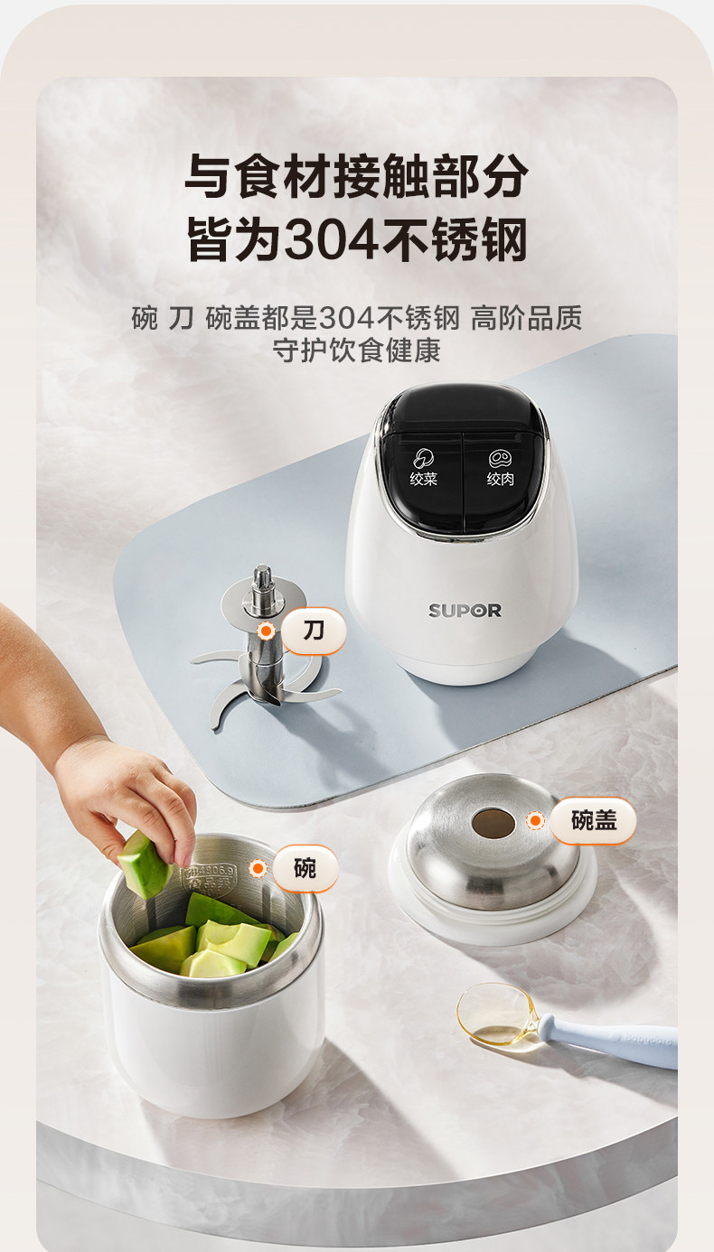 Supor Small Multifunctional Meat Grinder for Babies, Stainless Steel Baby Food Processor, New Model