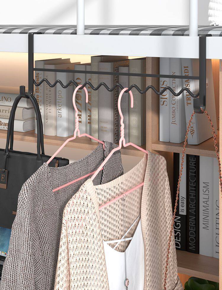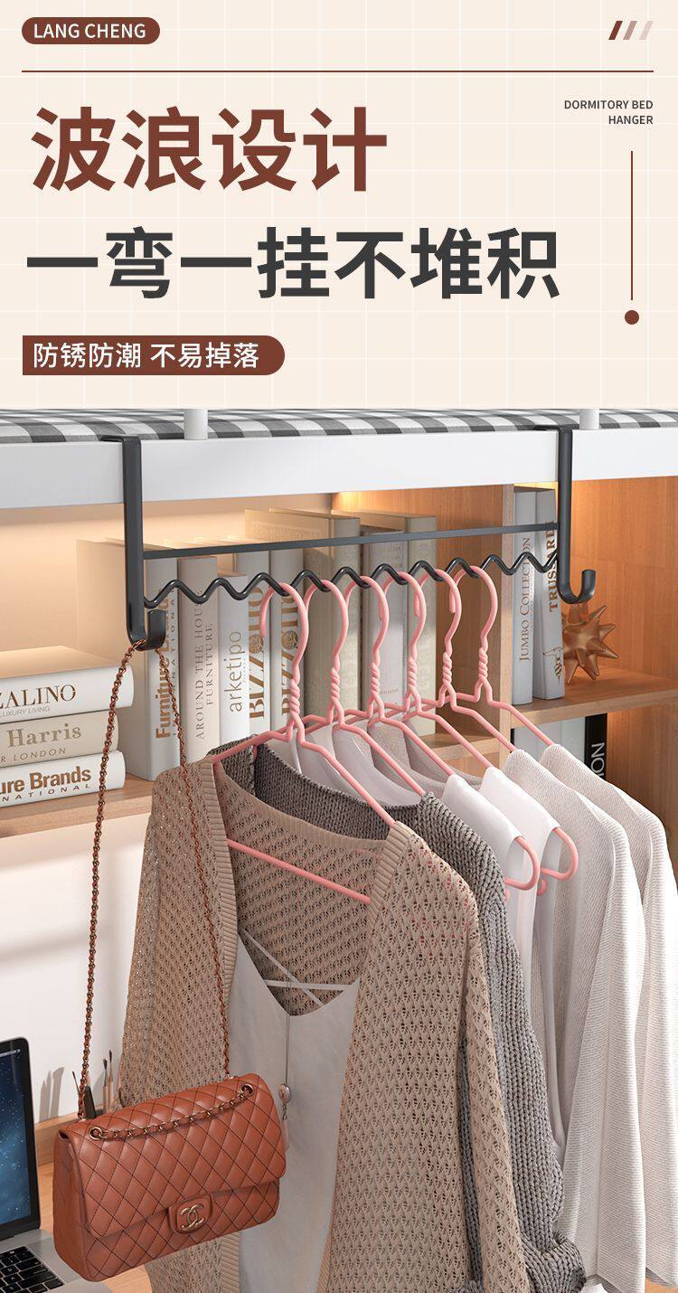 [Storage Magic Tool]Dormitory Bedside Clothes Hanger, Upper Bunk Storage Rack, Bedside Hook, Wave-Shaped Clothes Hanger for Storage