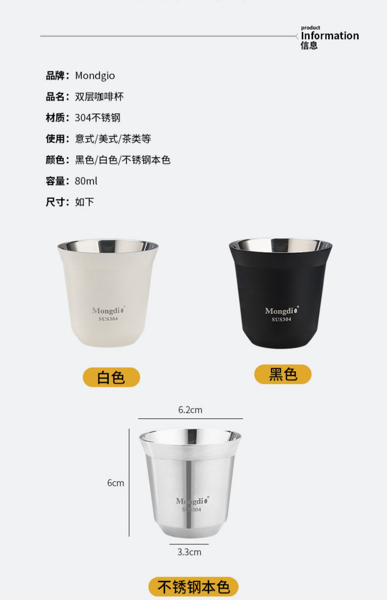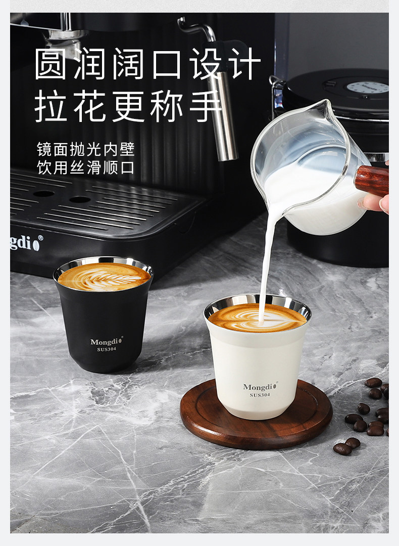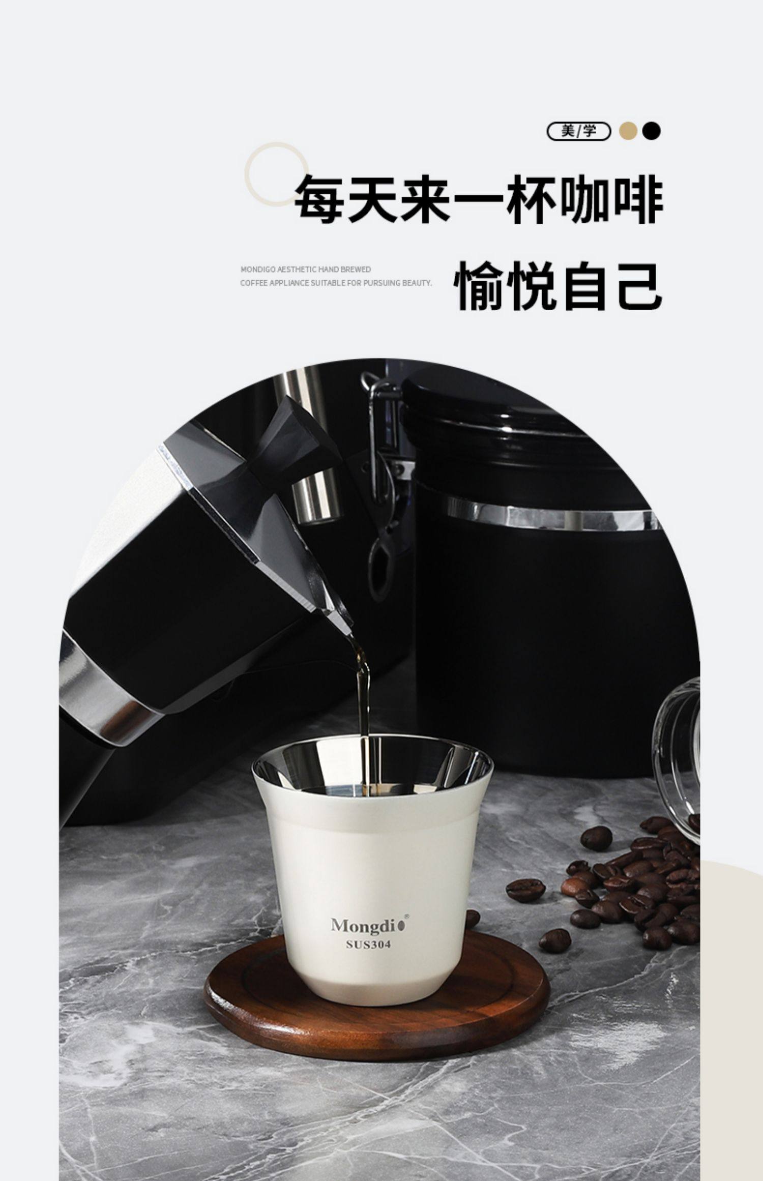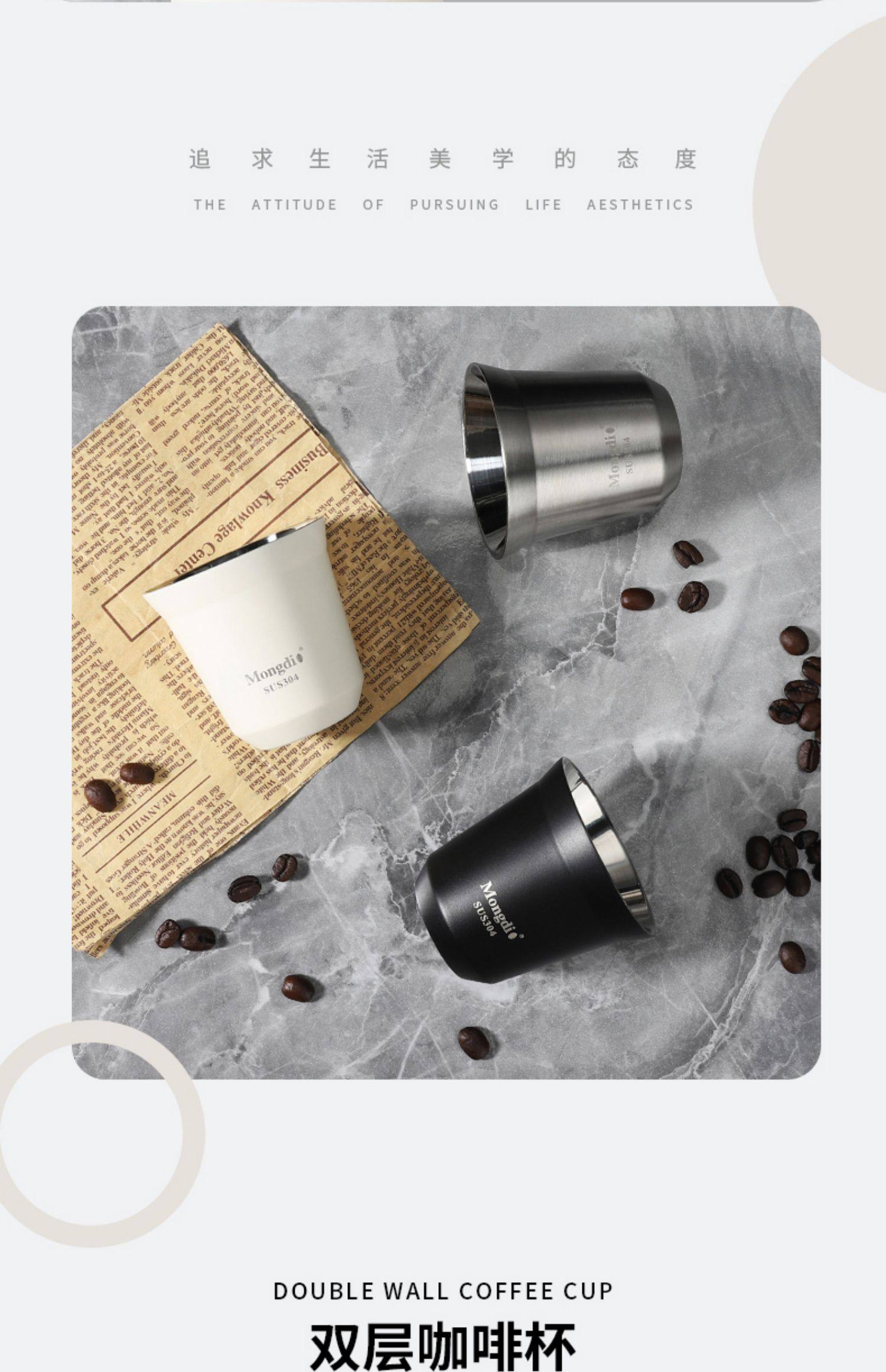 Mongdio Coffee Extraction Cup Stainless Steel Espresso Cup Coffee Machine Liquid Receiving Cup 304 Double-Layer Anti-Scalding