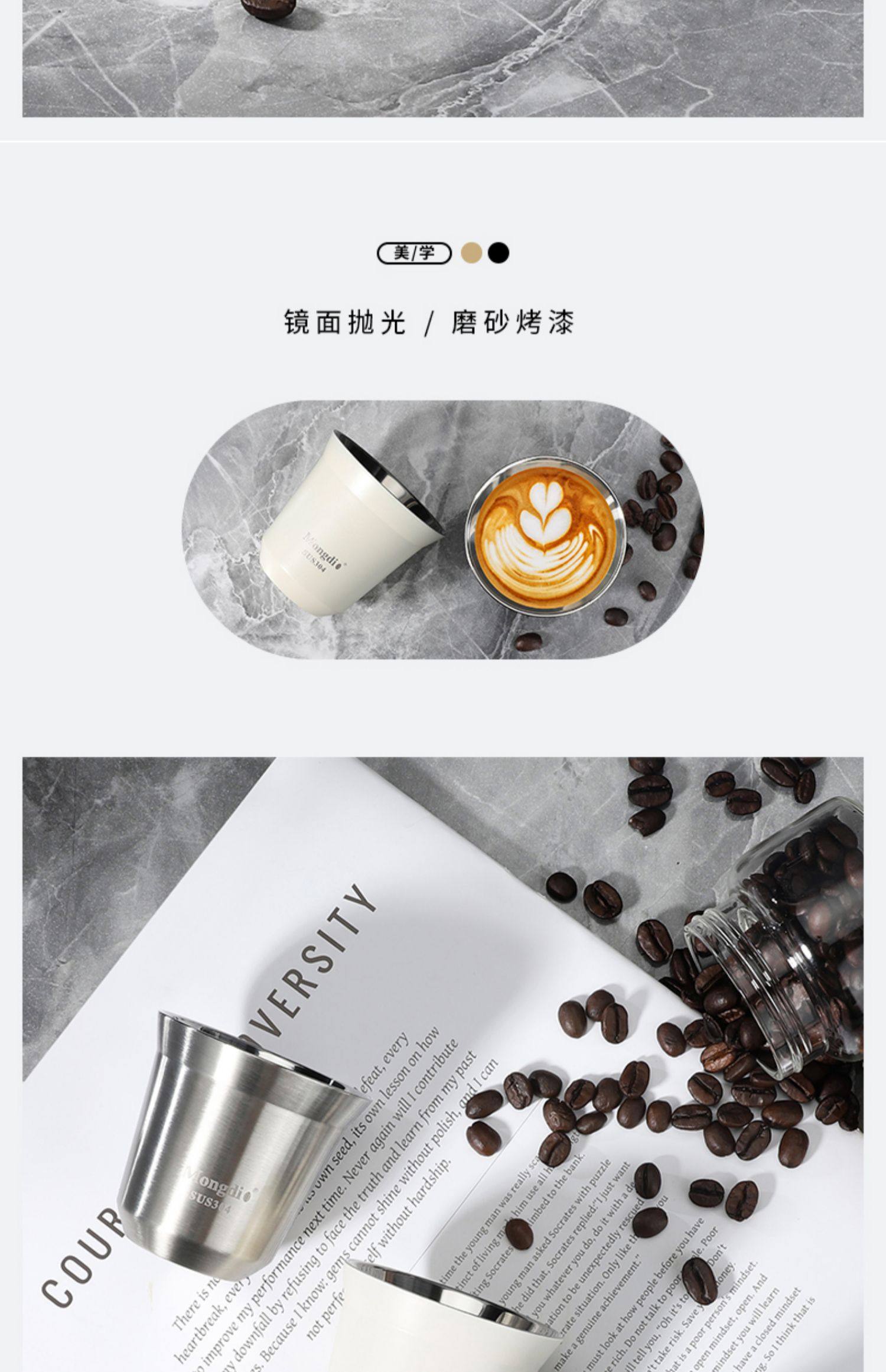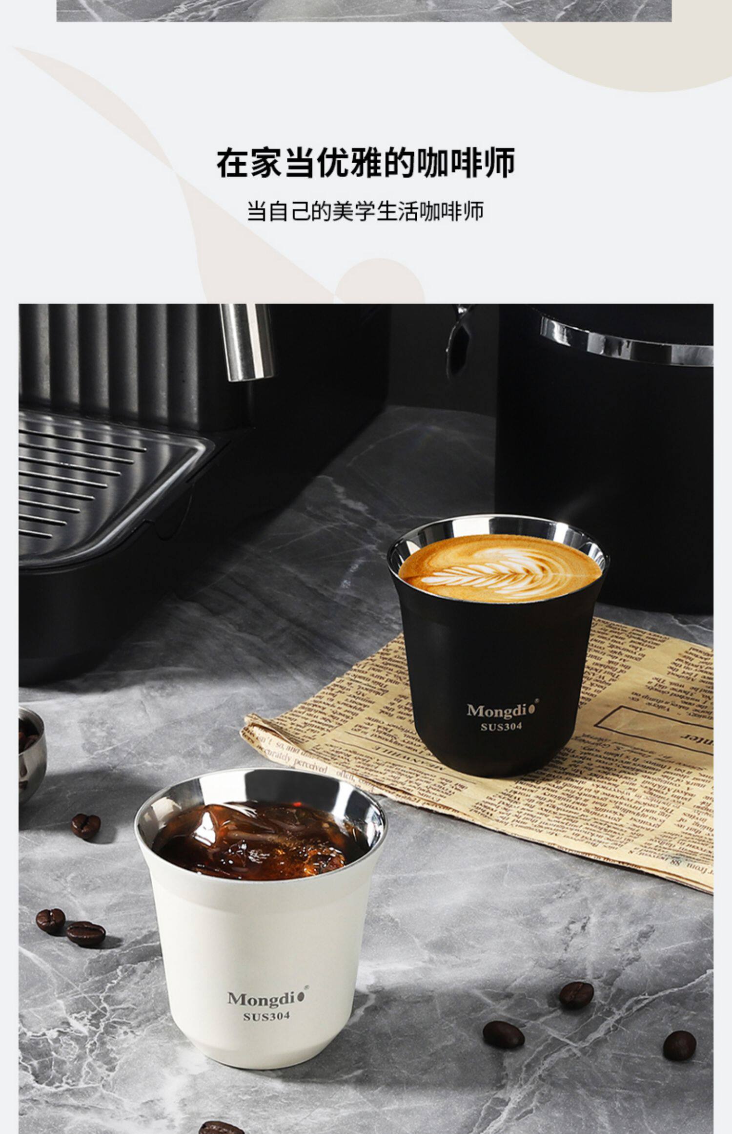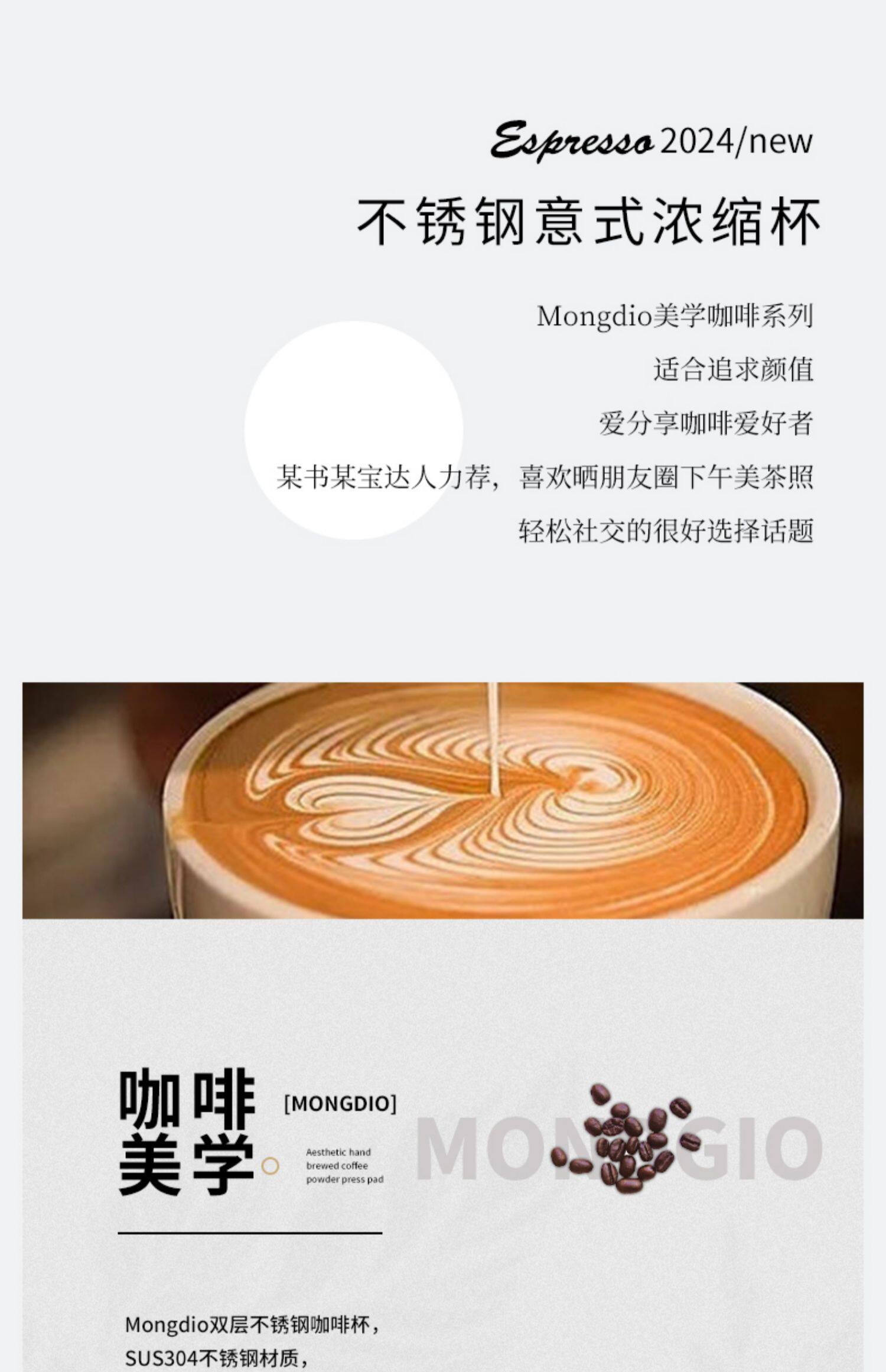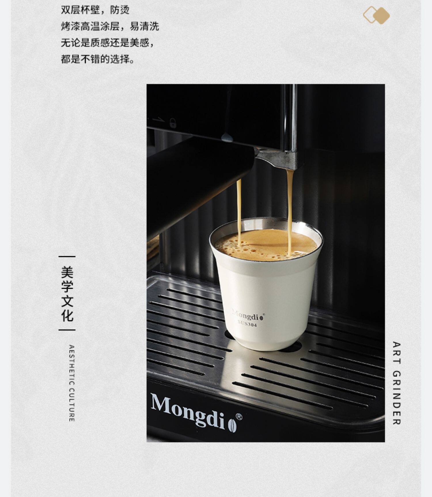 Mongdio Coffee Extraction Cup Stainless Steel Espresso Cup Coffee Machine Liquid Receiving Cup 304 Double-Layer Anti-Scalding