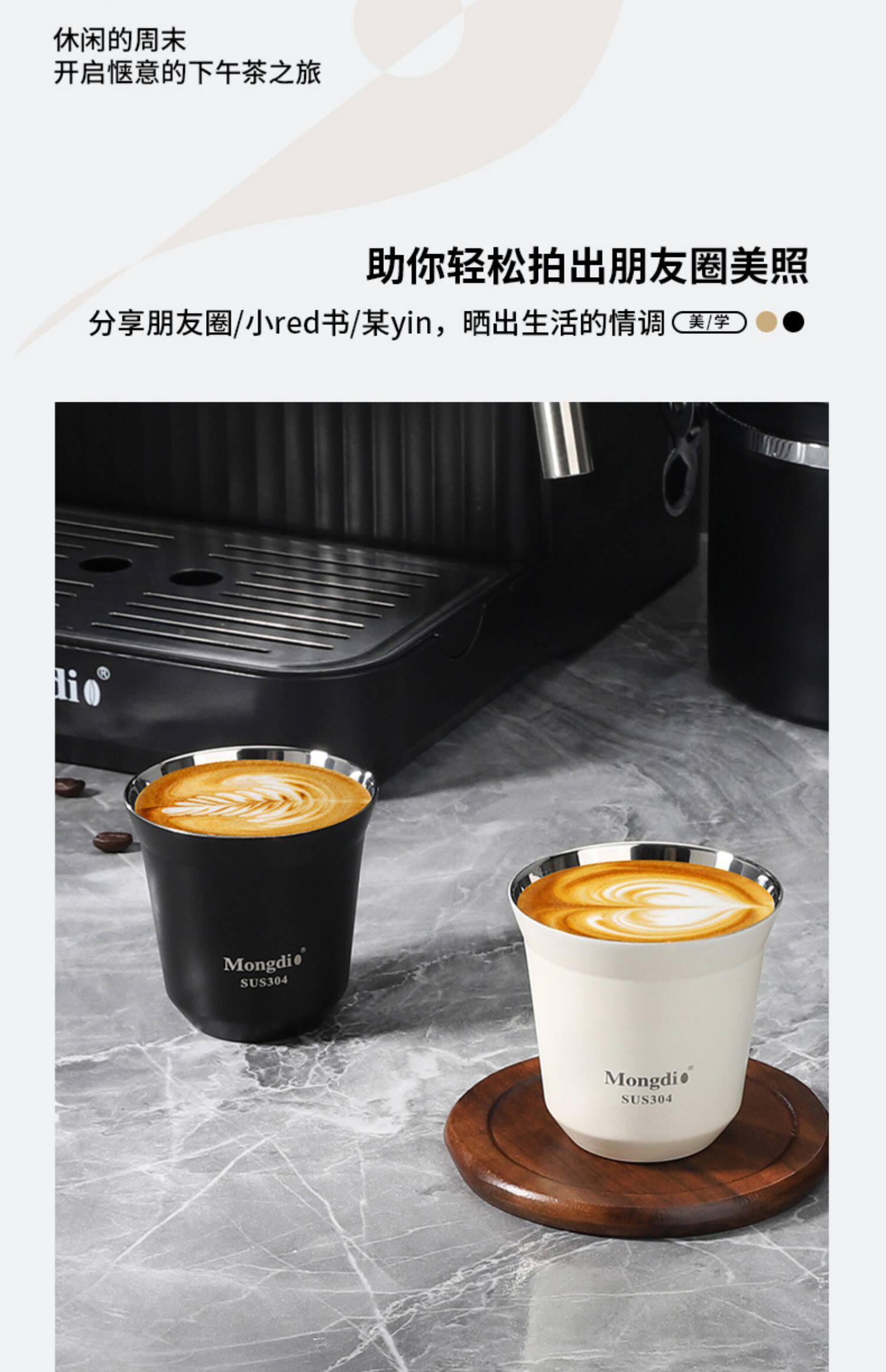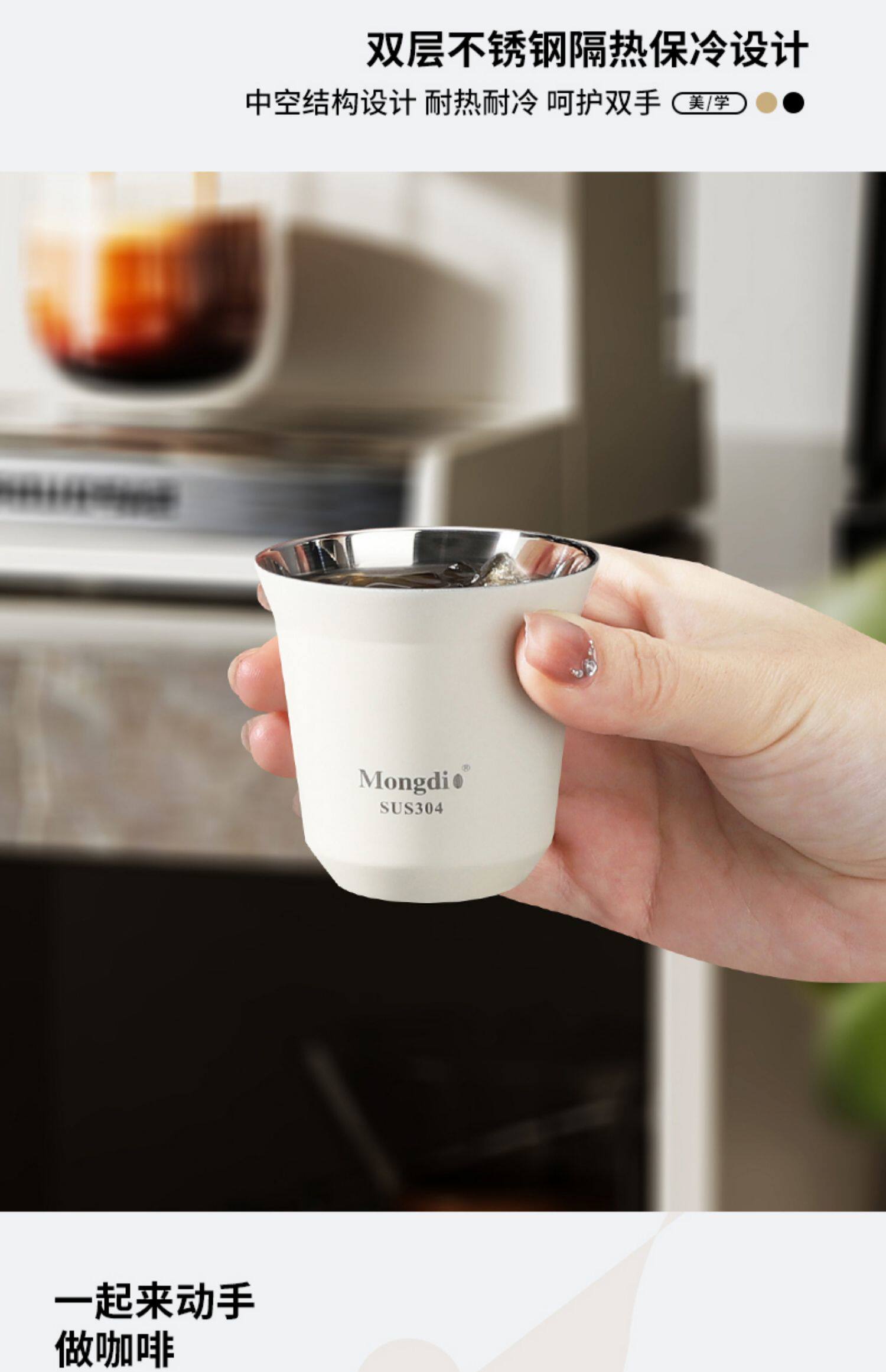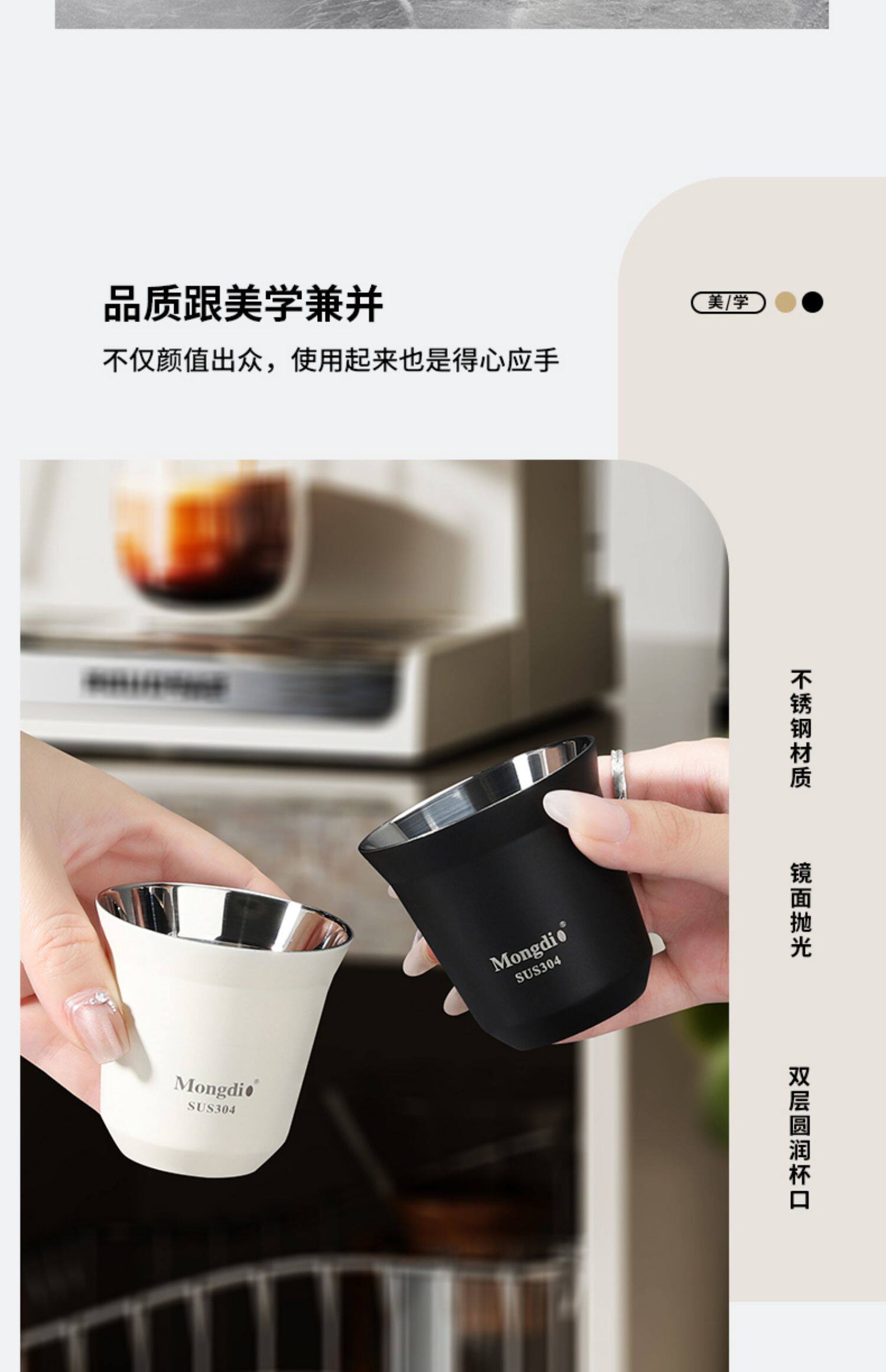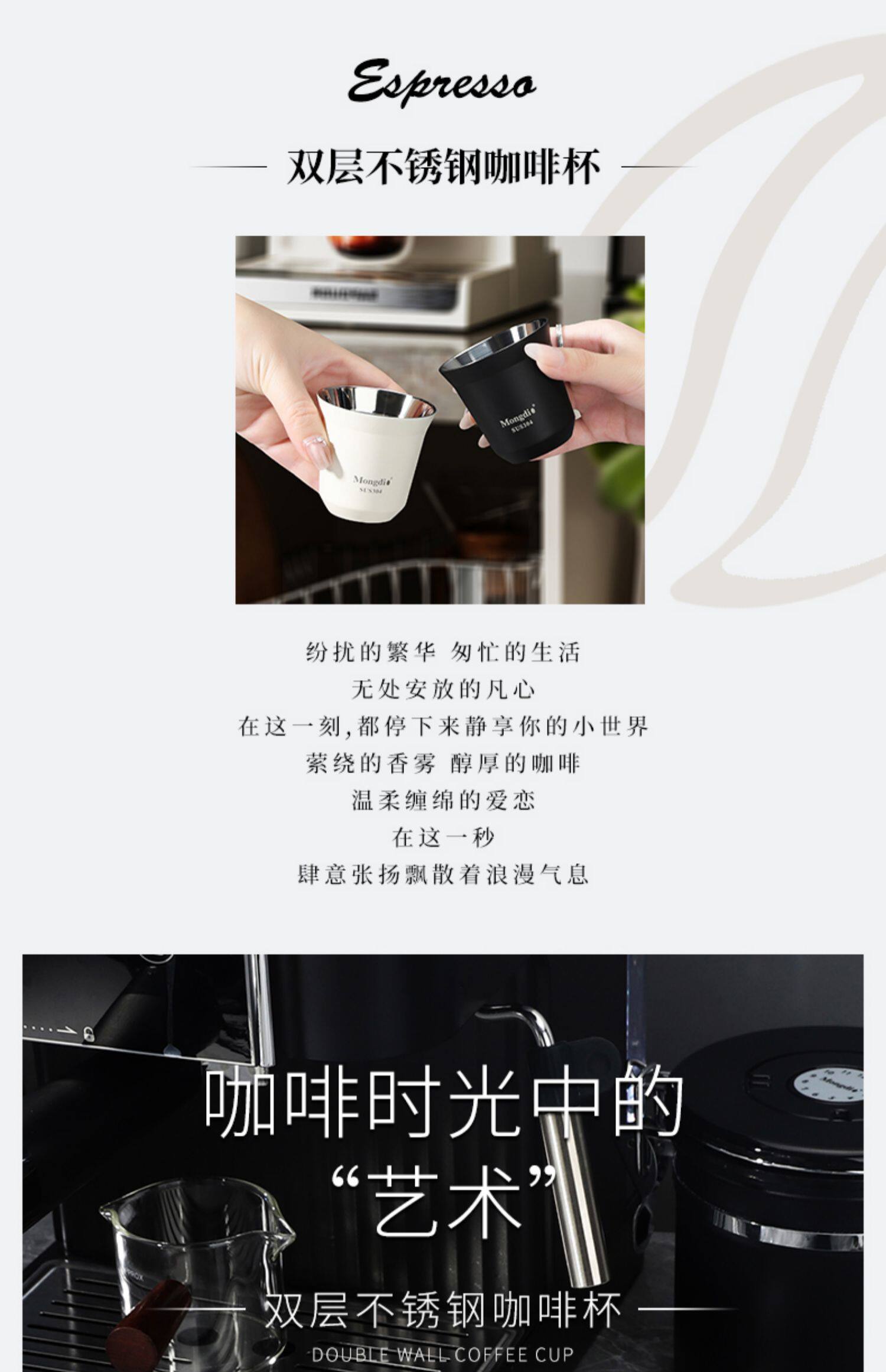 Mongdio Coffee Extraction Cup Stainless Steel Espresso Cup Coffee Machine Liquid Receiving Cup 304 Double-Layer Anti-Scalding
