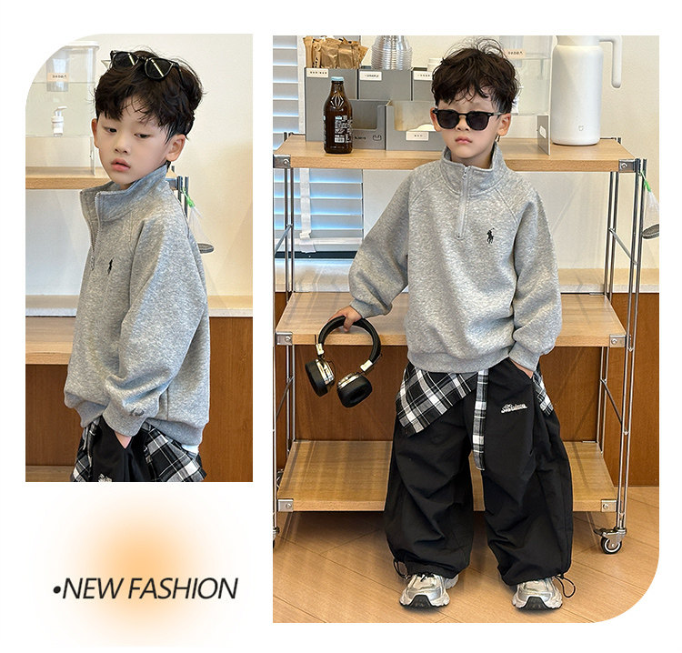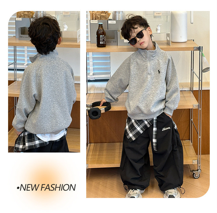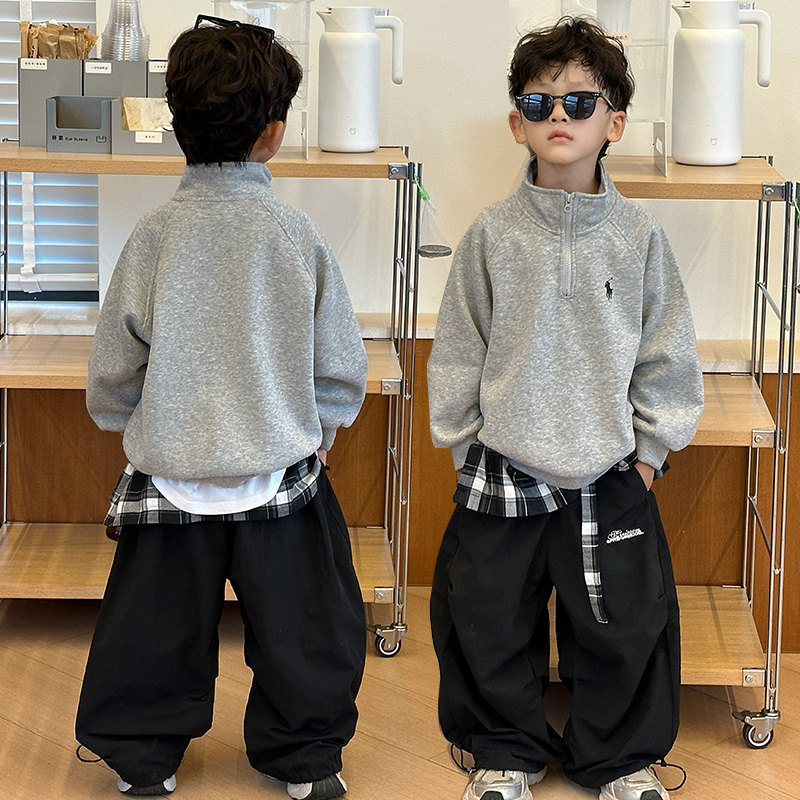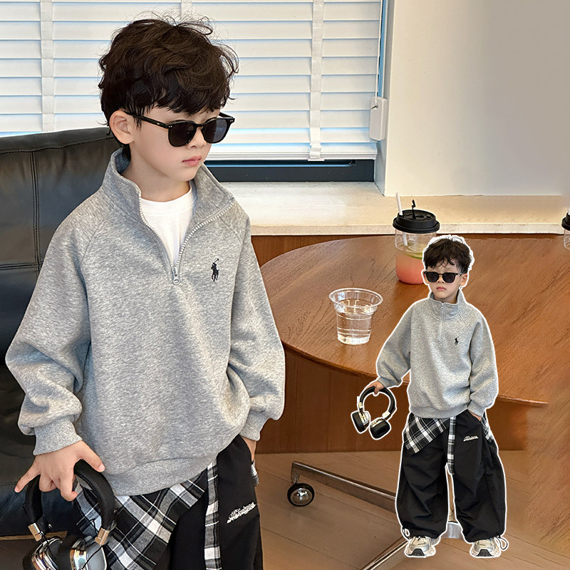 Boys' Spring and Autumn Sweatshirt 2025 New Style Boys' Autumn Casual Long-Sleeve Top Stylish Base Shirt Children's Trendy Clothing