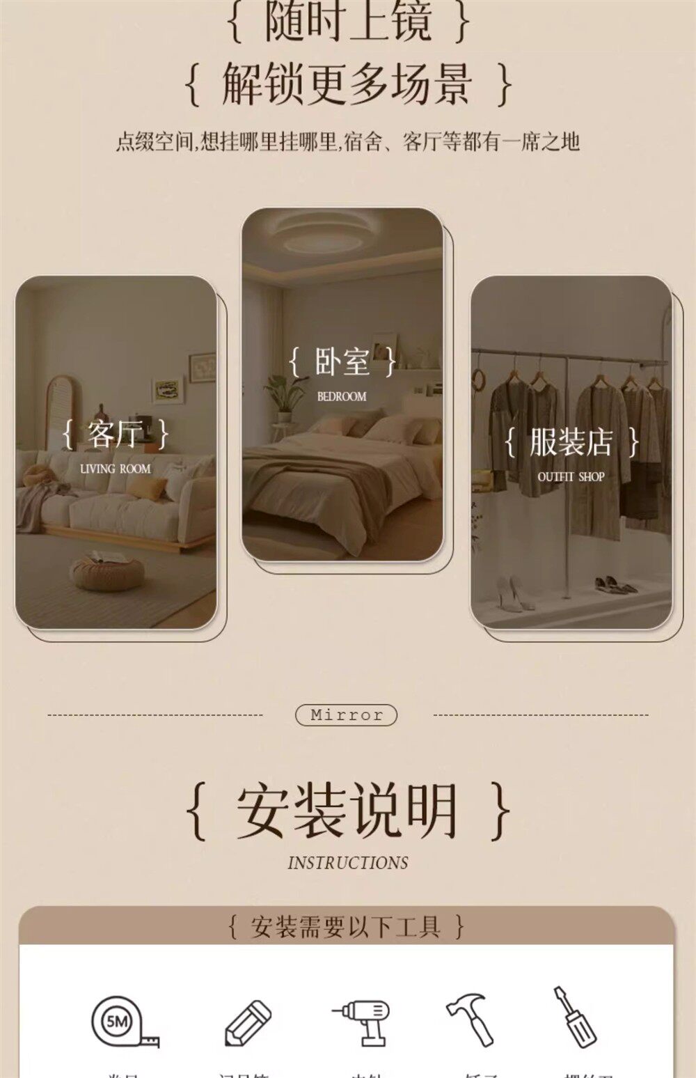 Swiss Joico Household Full-Length Mirror, Ins-Style Dressing Mirror, Bedroom Floor Mirror, High-End Luxury Fitting Mirror, Minimalist Design