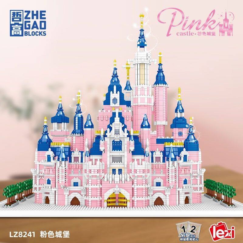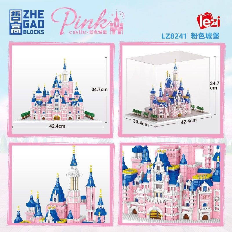 Zhegao Lezi Lz8241 Miniature Diamond Small Particle Pink Castle Model Educational Stress-Relief Building Block Toy Princess
