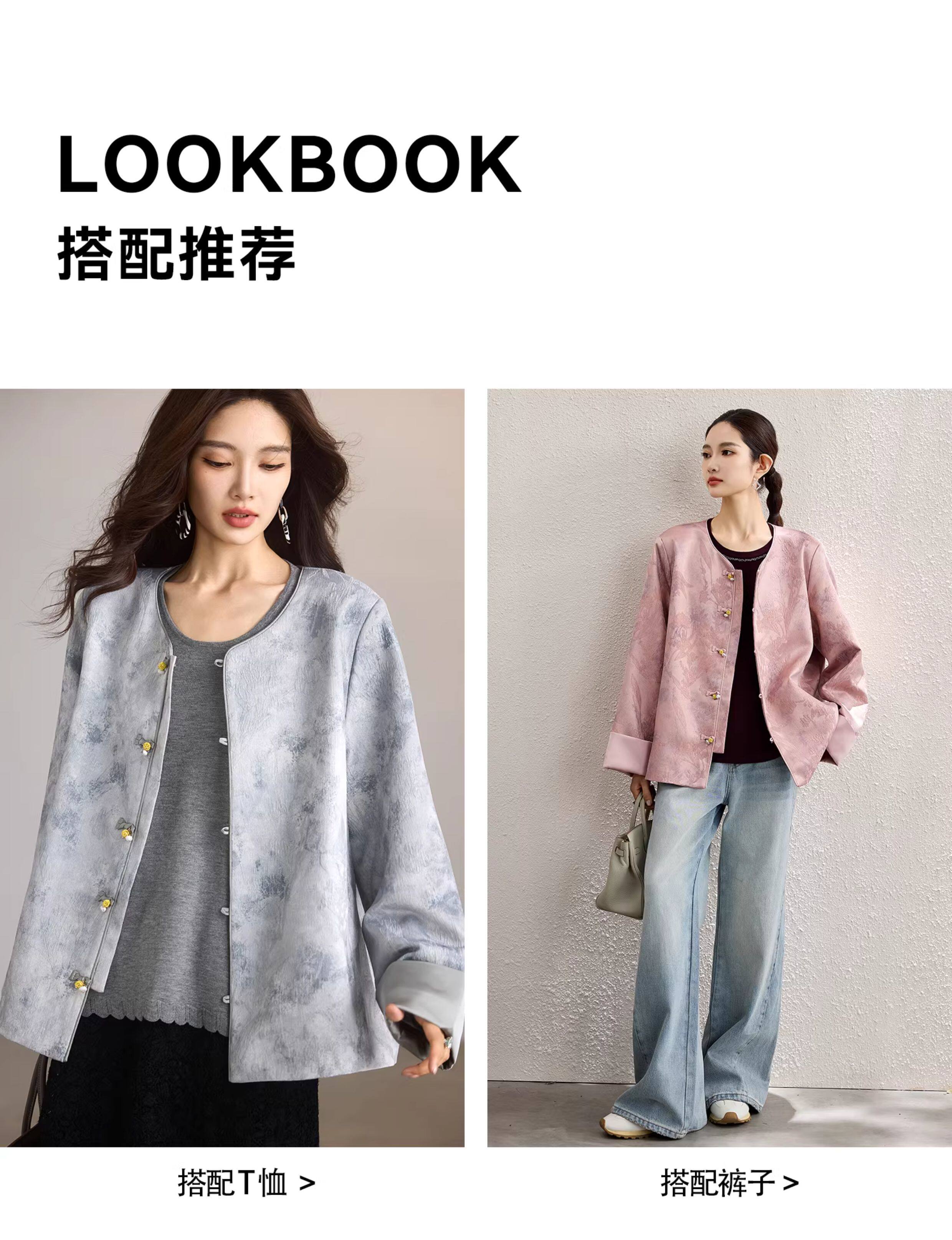 Plain wood new Chinese style satin jacquard jacket for women 2026 spring new temperament outer wear plus size women's tops trend