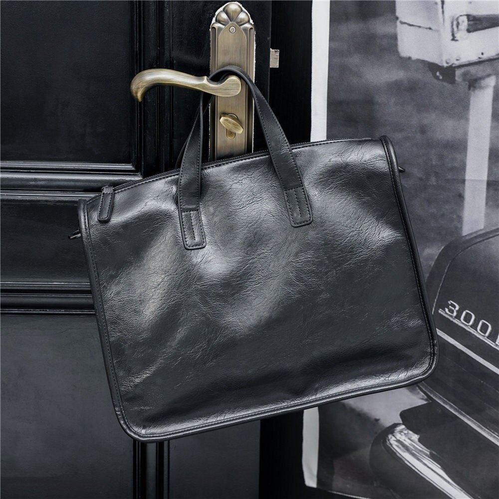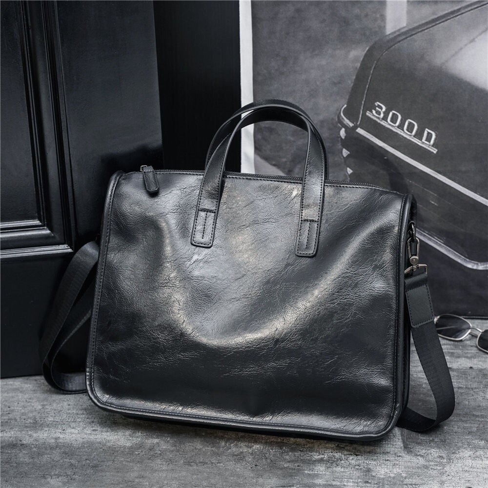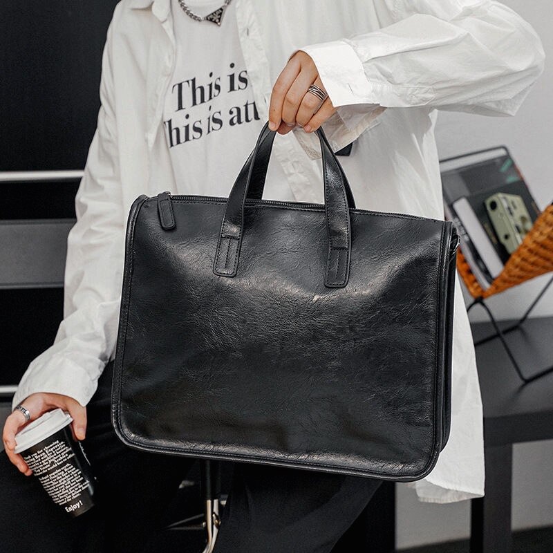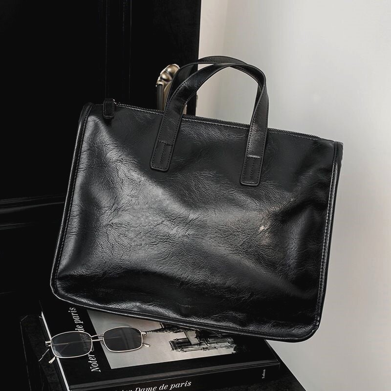 Trendy Brand Briefcase, Men's Business Office Handbag, High-End Leather Commuter Bag, Large-Capacity Computer File Bag