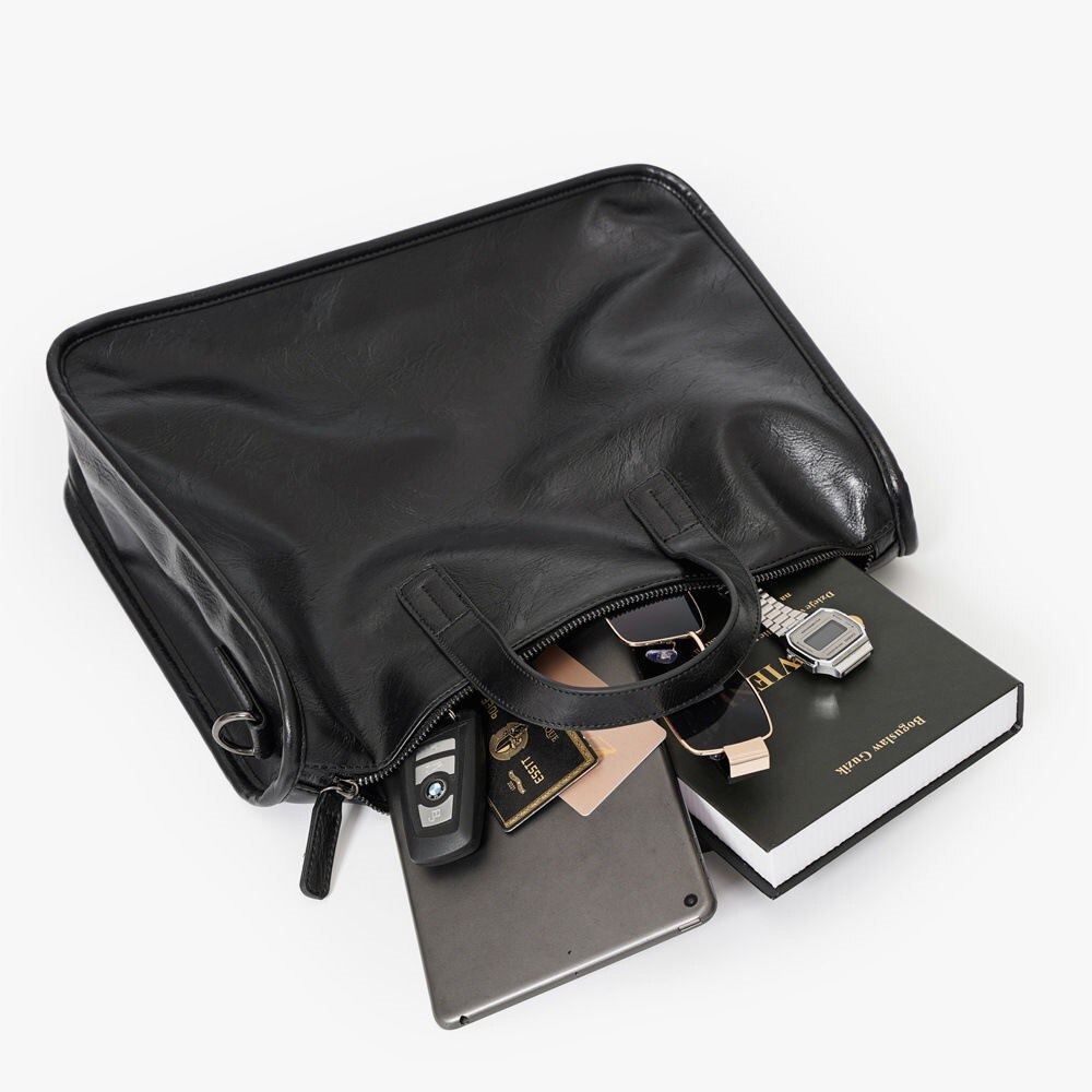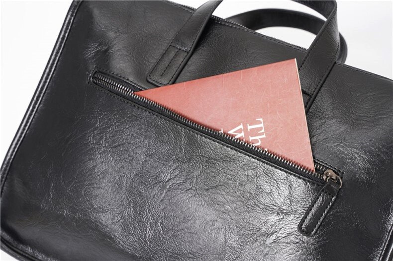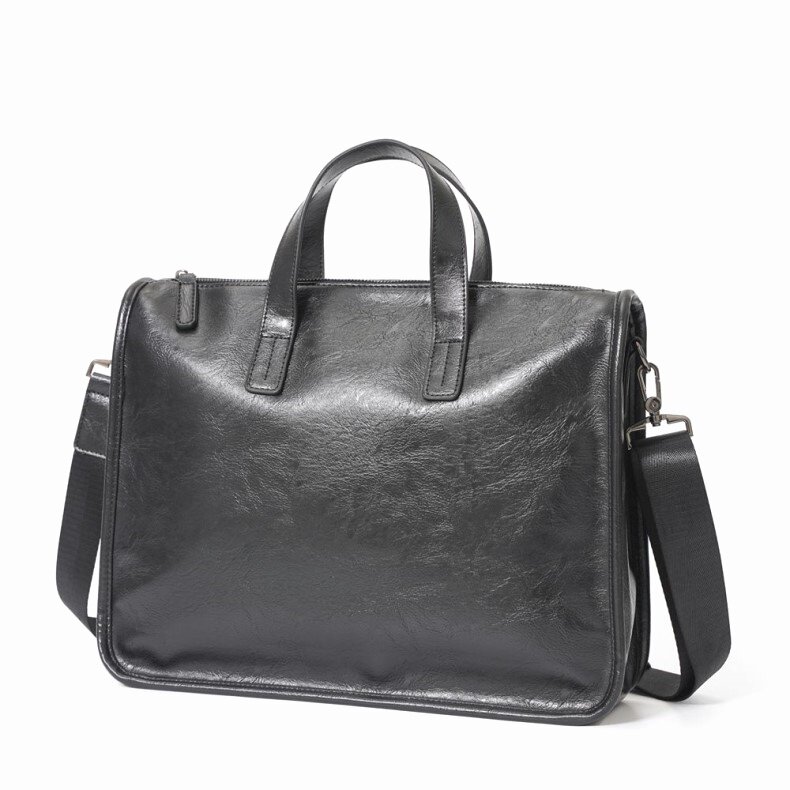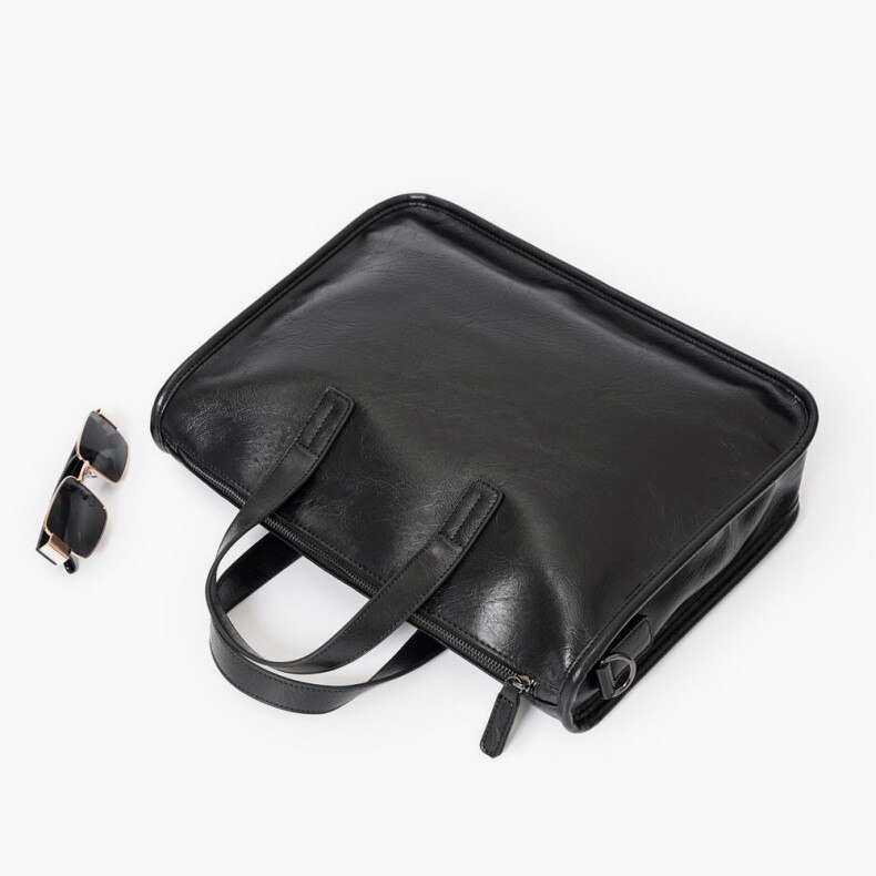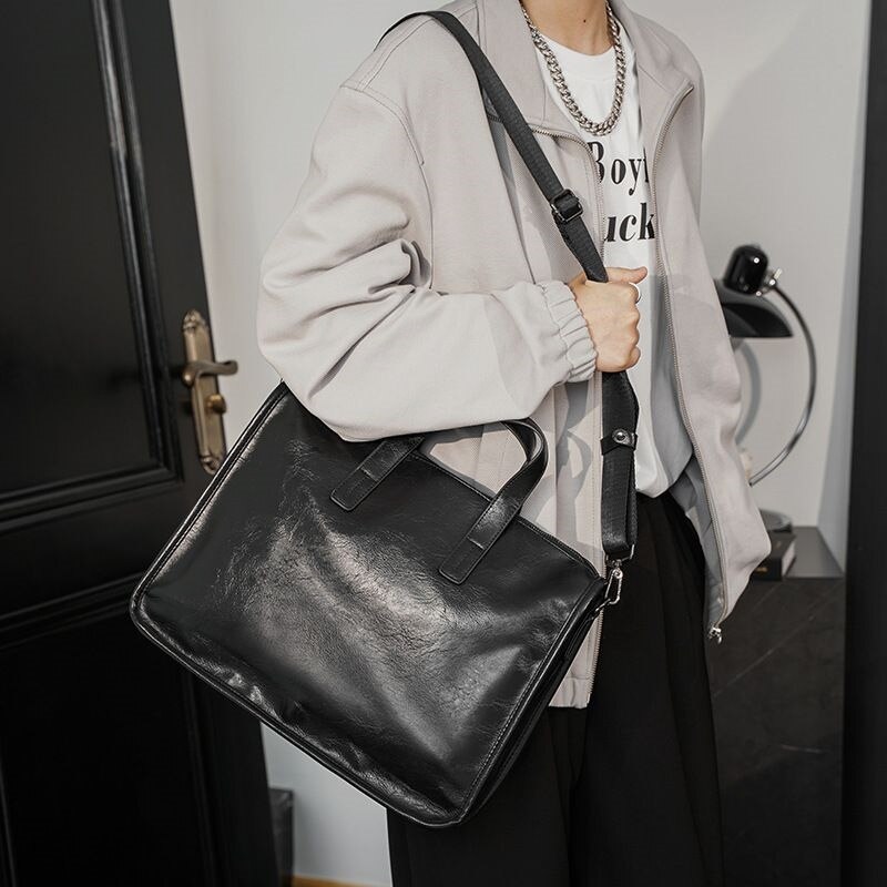 Trendy Brand Briefcase, Men's Business Office Handbag, High-End Leather Commuter Bag, Large-Capacity Computer File Bag