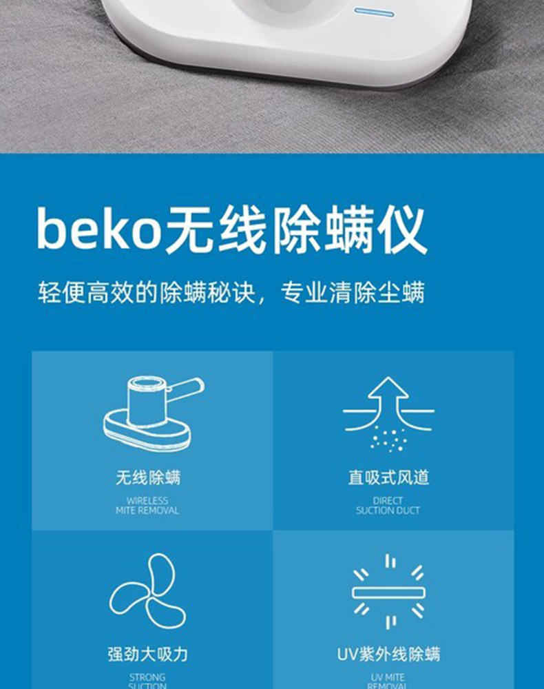 Beko Wireless Mite Remover Home Bed Ultraviolet Sterilization Sofa Bedroom Powerful Slapping Mite Remover Vacuum Cleaner