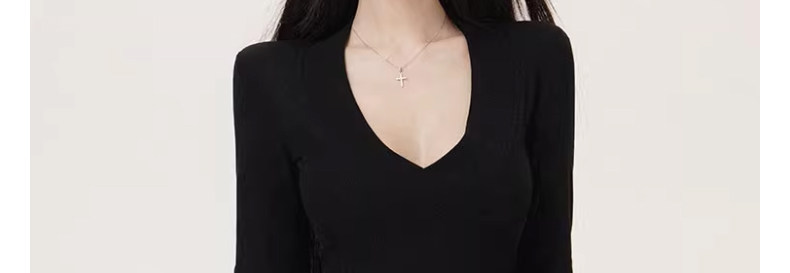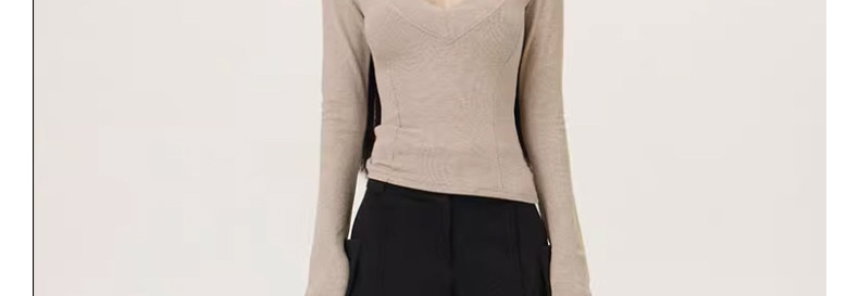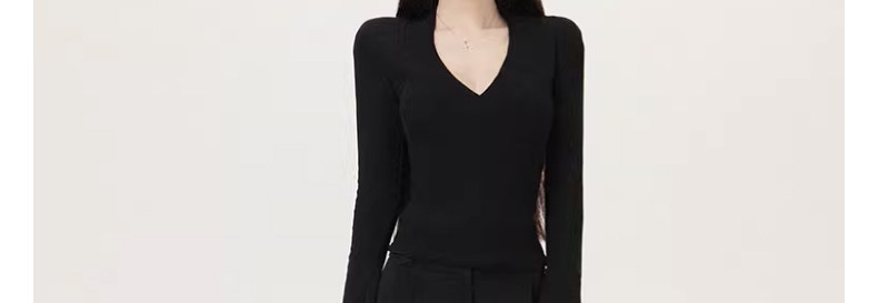 Hot Girl V-Neck Long-Sleeve Base Shirt for Women, New Autumn and Winter Style, Pure and Alluring Temperament, Versatile Slim-Fit Short T-Shirt Top