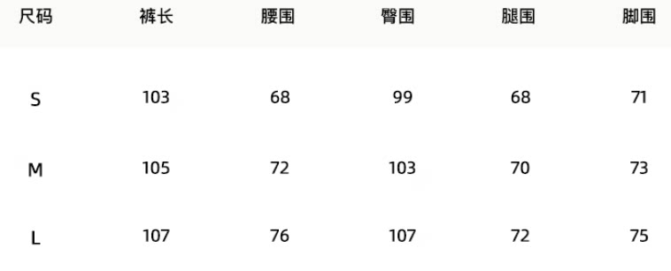 Outseam (cm) 99 cm 101.5 cm 104 cm 106.5 cm 109 cm