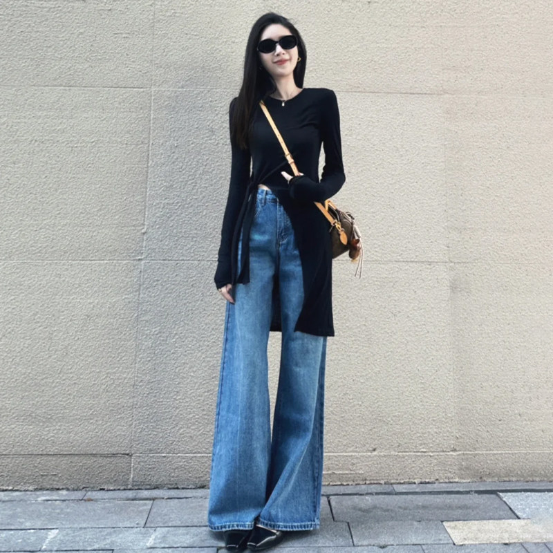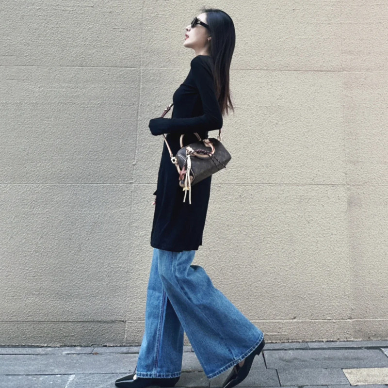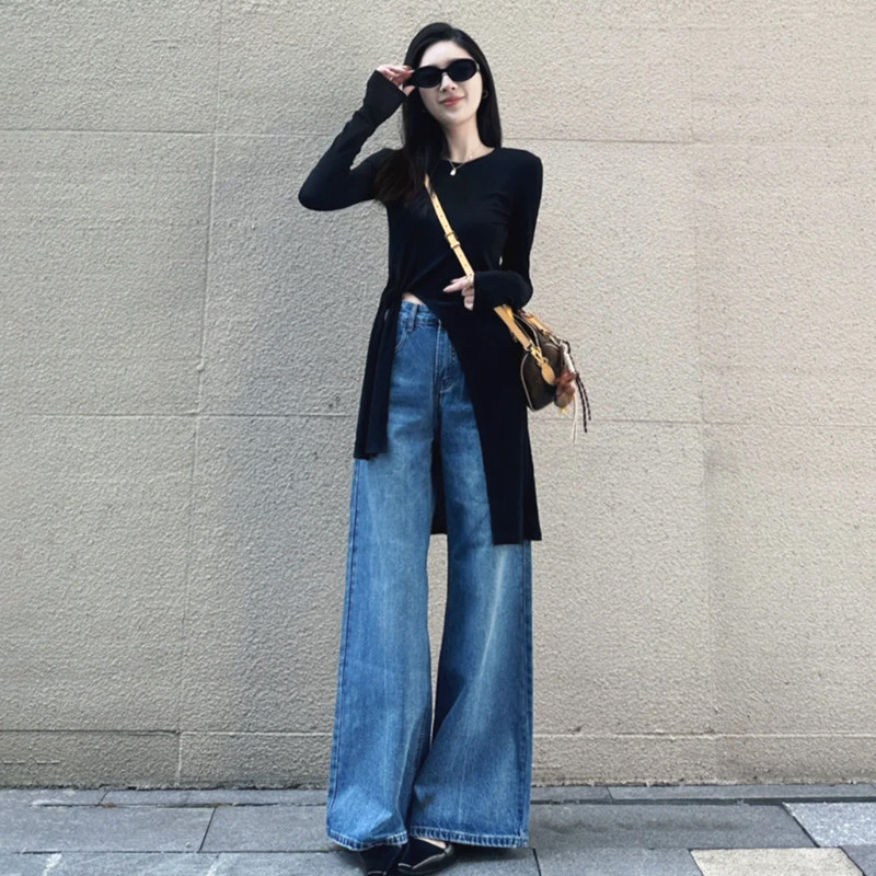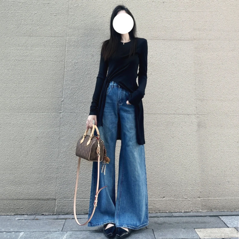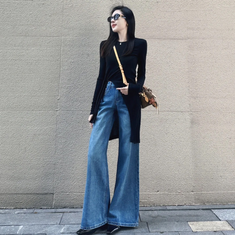 Vintage Versatile Blue Jeans for Women, 2025 Autumn New High-Waisted Design, Slim-Fit Straight-Leg Pants for Petite Figures