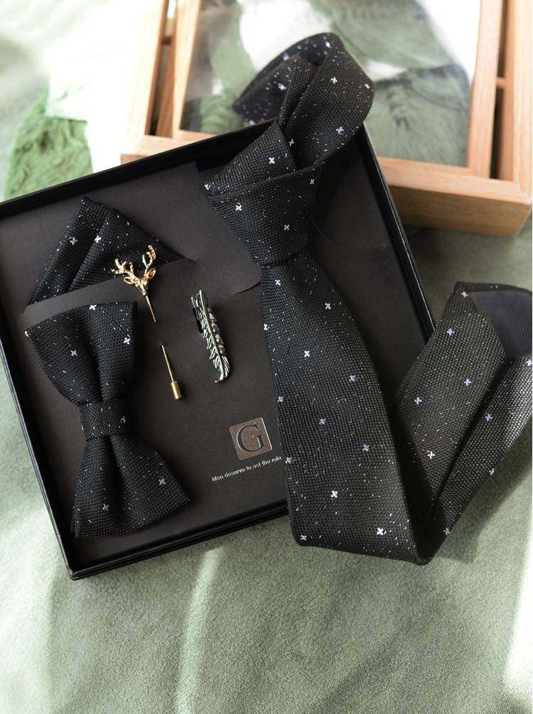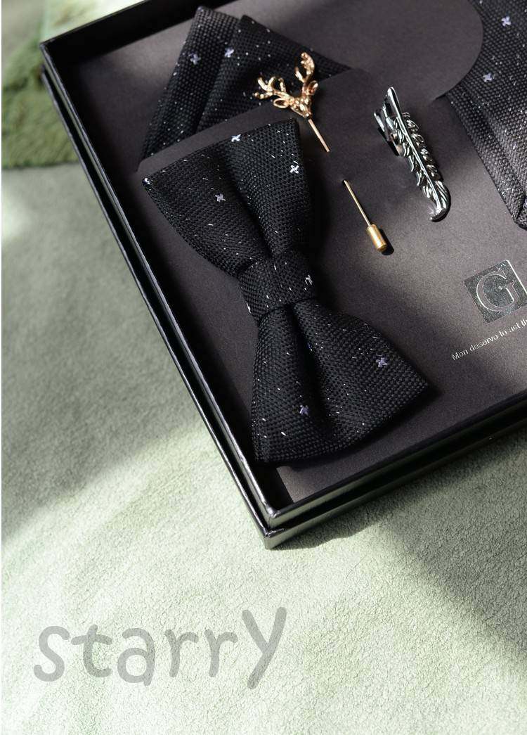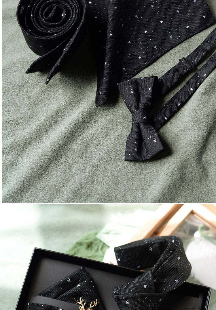 Color Classification Starry Black Tie,Starry Tie + Square Scarf,Starry Bow Tie + Square Scarf,Starry Simple 3-Piece Set,Starry Boutique Gift Box Set