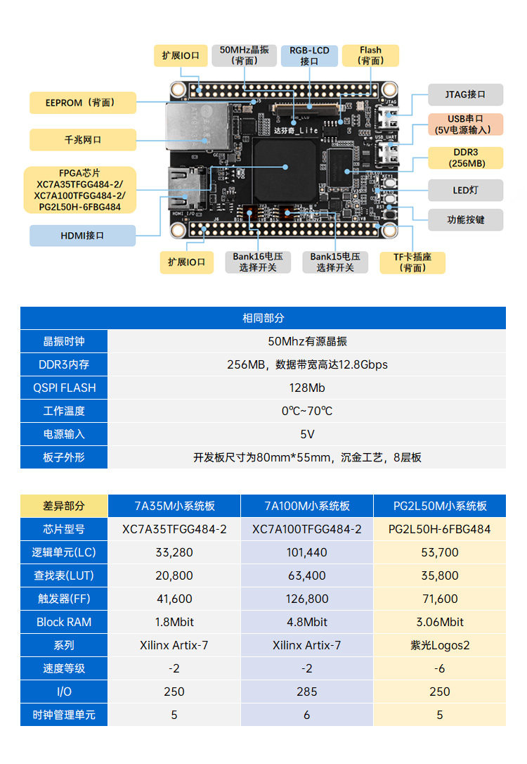 Color Classification Xc7A35T Small System Board,Xc7A100T Small System Board,Pg2L50H Small System Board,If You Need to Solder the Pin Header, Please Contact Customer Service