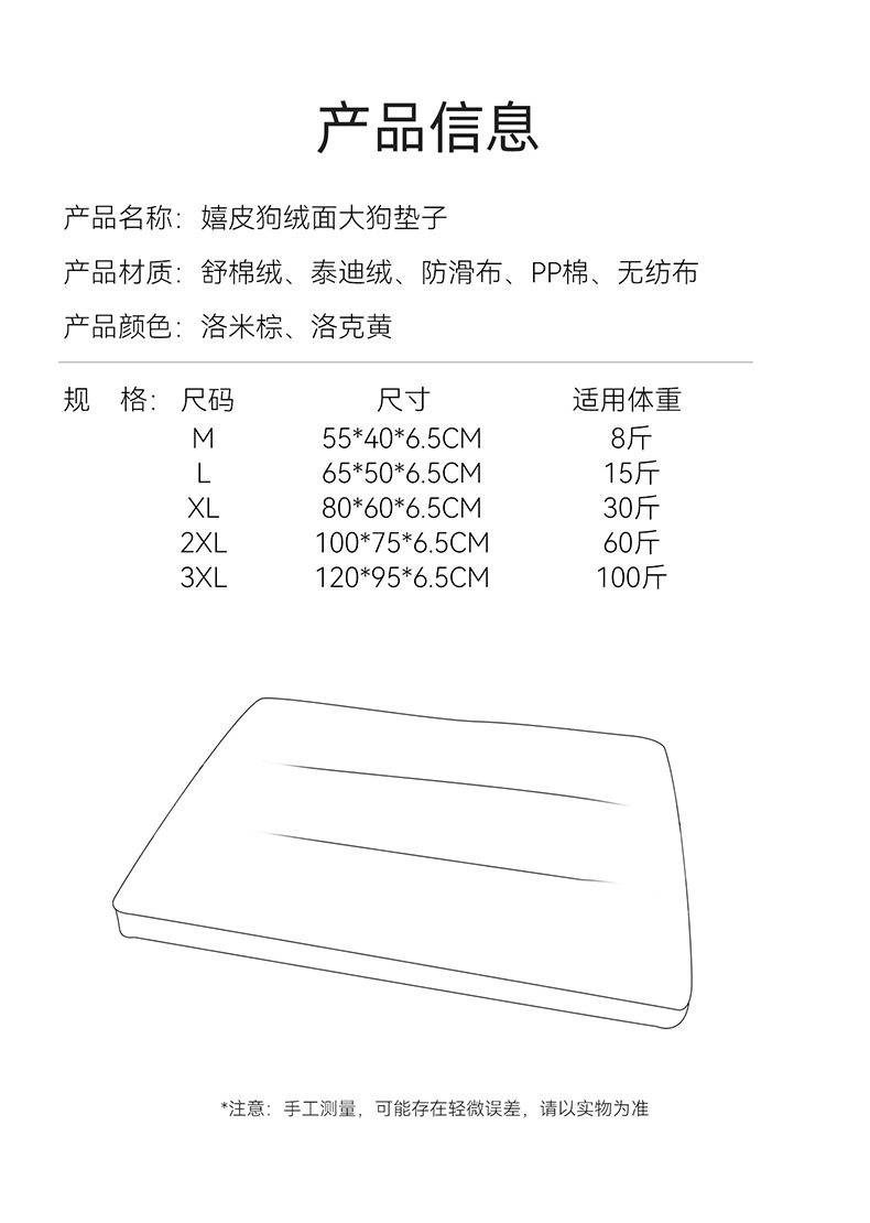 Applicable Sizes M-50*40*6.5cm (Recommended Weight Within 2.5kg),L-60*50*6.5cm (Recommended Weight Within 6kg),XL-80*60*6.5cm (Recommended Weight Within 15kg),XXL-100*75*6.5cm (Recommended Weight Within 30kg),3XL-120*95*6.5cm (Recommended Weight Within 50kg)