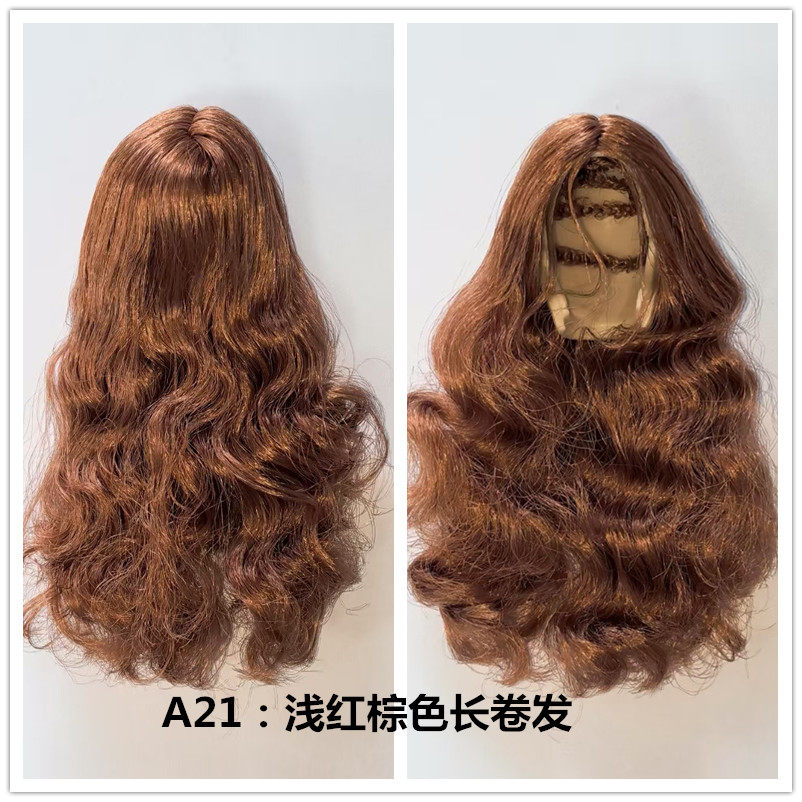 1/6 Female Soldier Head Sculpt Wig for Hair Modification, with Back of the Head A21: Light Reddish-Brown Long Curly Hair