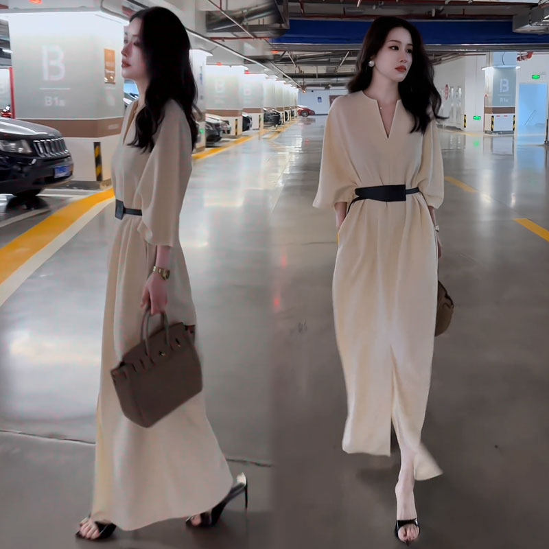 Counter dress spring 2026 new fashion Hepburn style lace-up waist slimming high-end temperament black long skirt