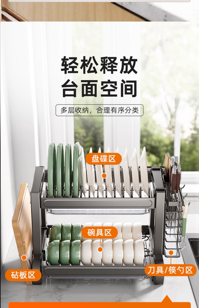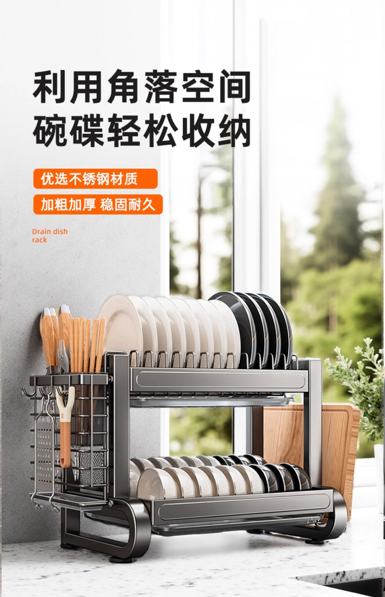 Stainless Steel Dish Rack, Drain Rack, Multi-Layer Dish Rack for Home Use, Kitchen Storage Rack, Countertop Dish Rack for Bowls, Plates, Chopsticks, and Cupboards