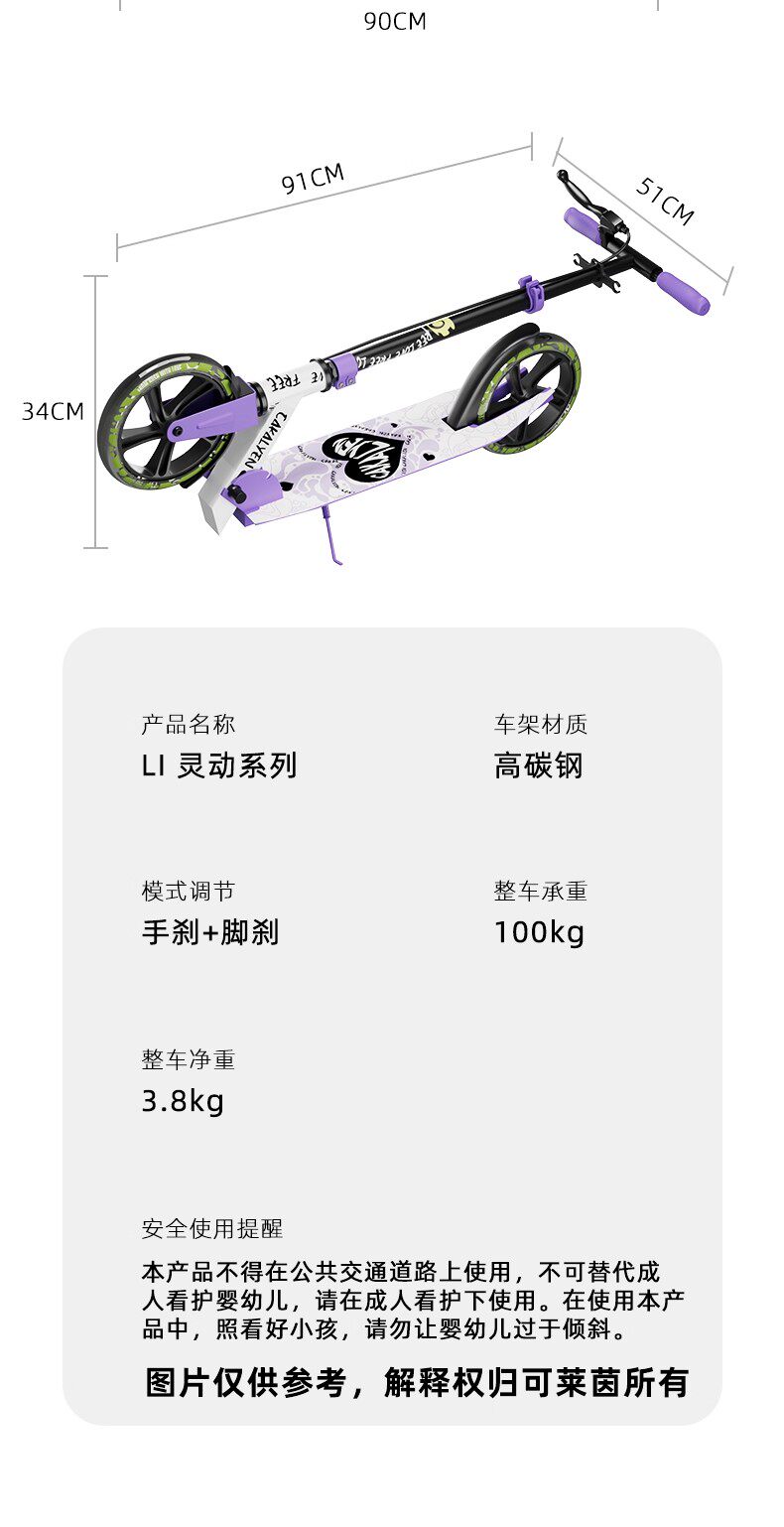 Klein 2-Wheel Scooter for Older Children Aged 6-12 and Above, Adult Campus Transportation, Two-Wheeled Non-Electric Skateboard 146