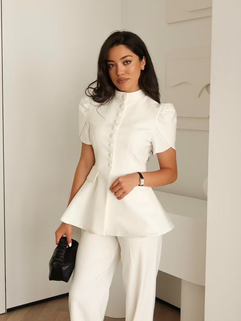European and American Style New Design Puff Sleeve Single-Breasted Waist-Cinching Blazer Single-Breasted Suit