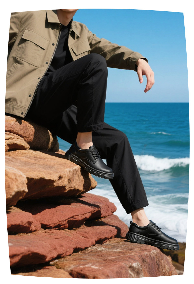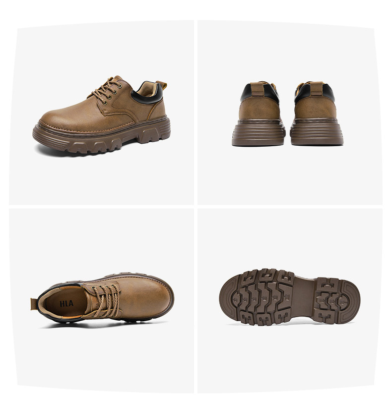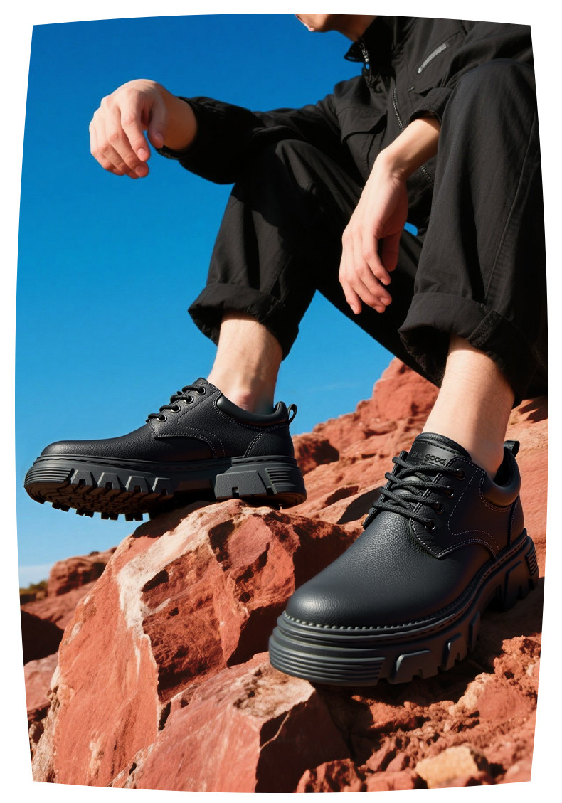 Hailan Home Men's Genuine Leather Wear-Resistant Summer Thick-Soled Height-Increasing Low-Cut Martin Boots Big-Toe Work Casual Leather Shoes for Men