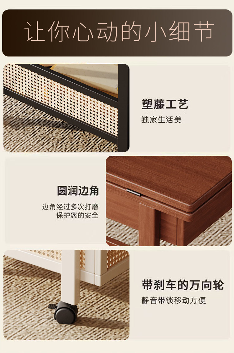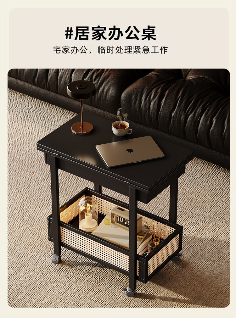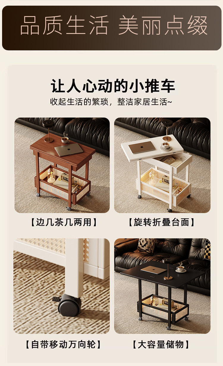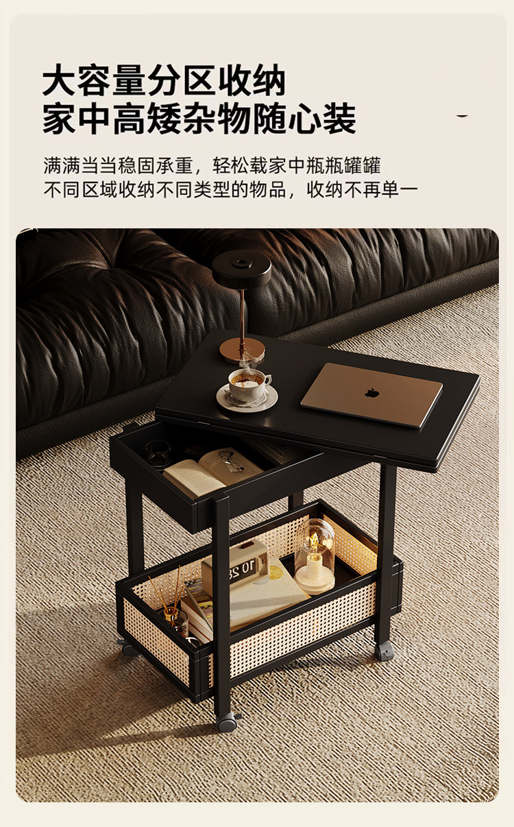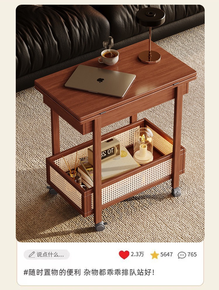 Side Table, Coffee Table, Movable Sofa Side Cabinet, Small Apartment Folding Cart, Living Room Storage Rack, Solid Wood Vintage Small Table