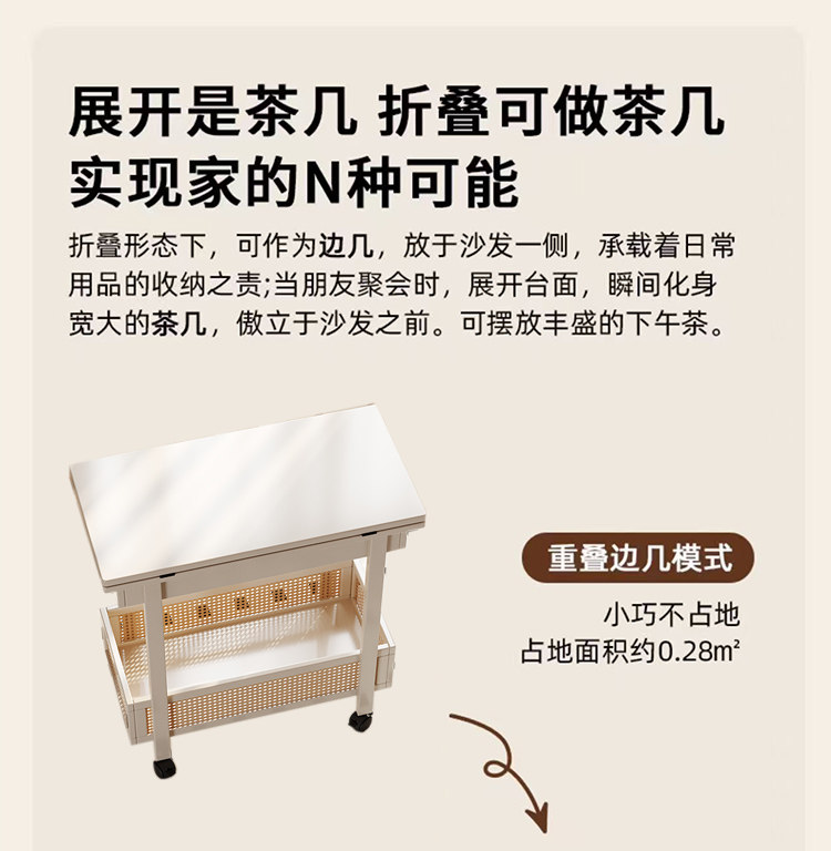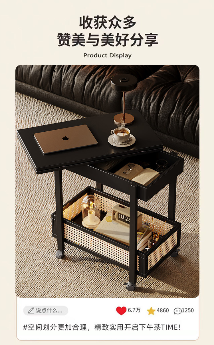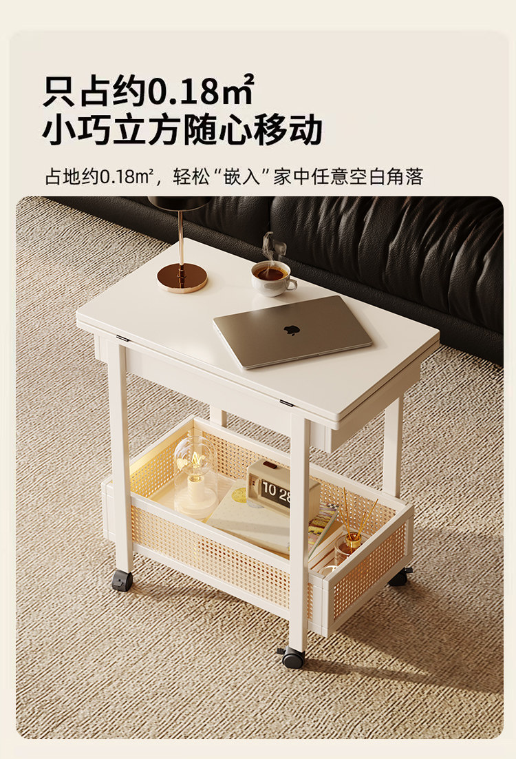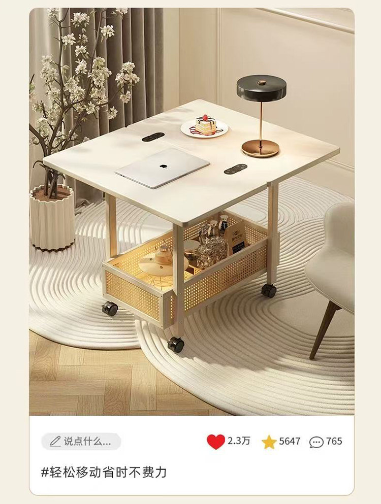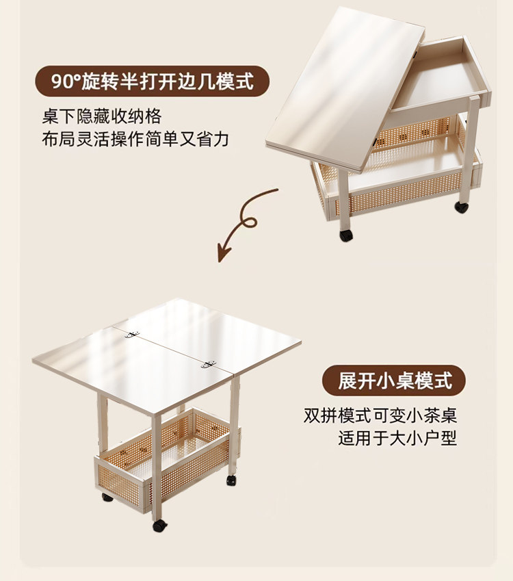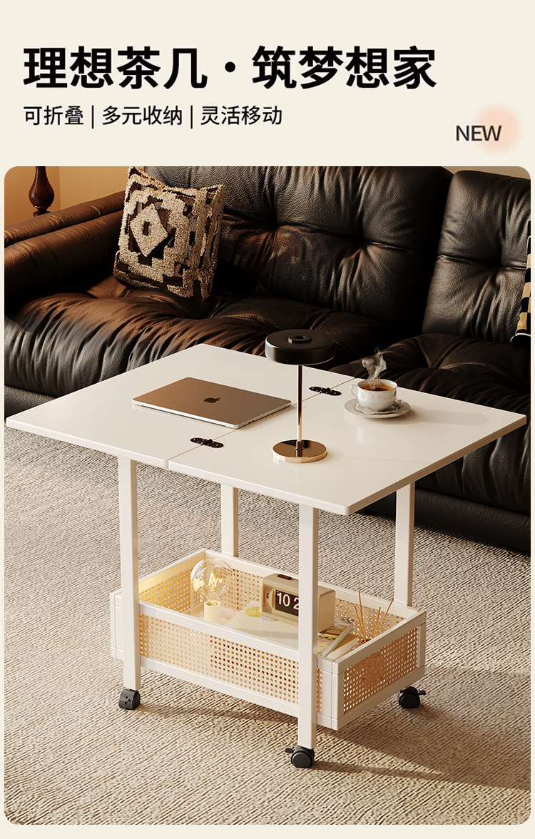 Side Table, Coffee Table, Movable Sofa Side Cabinet, Small Apartment Folding Cart, Living Room Storage Rack, Solid Wood Vintage Small Table