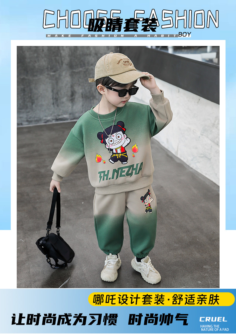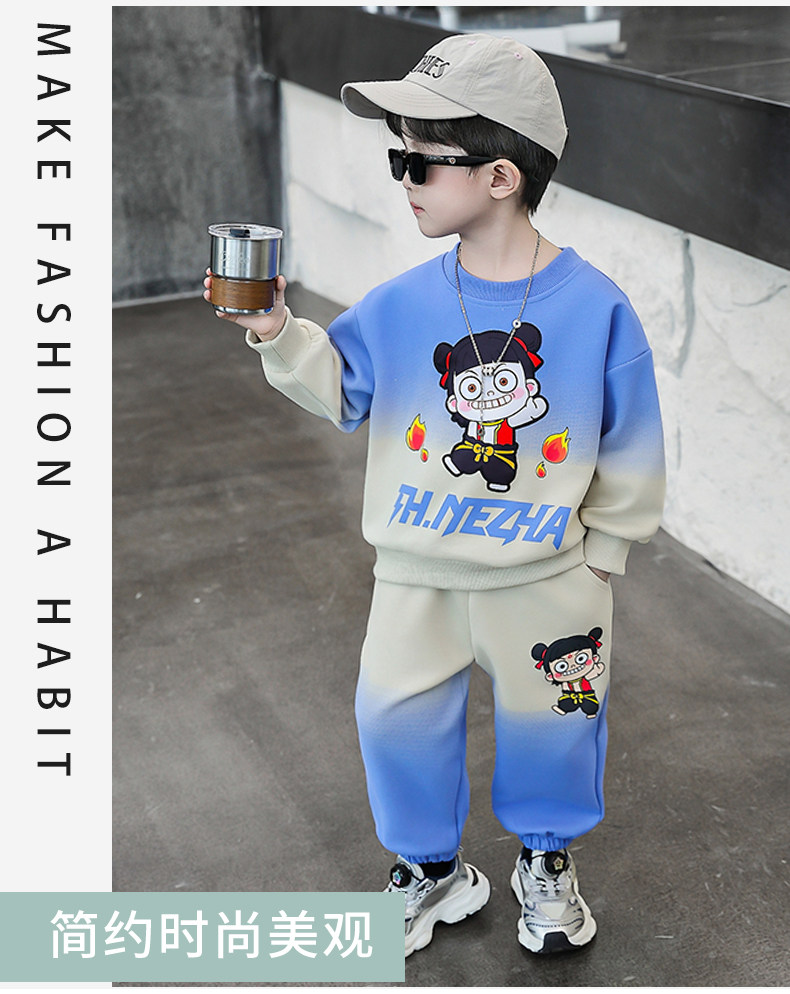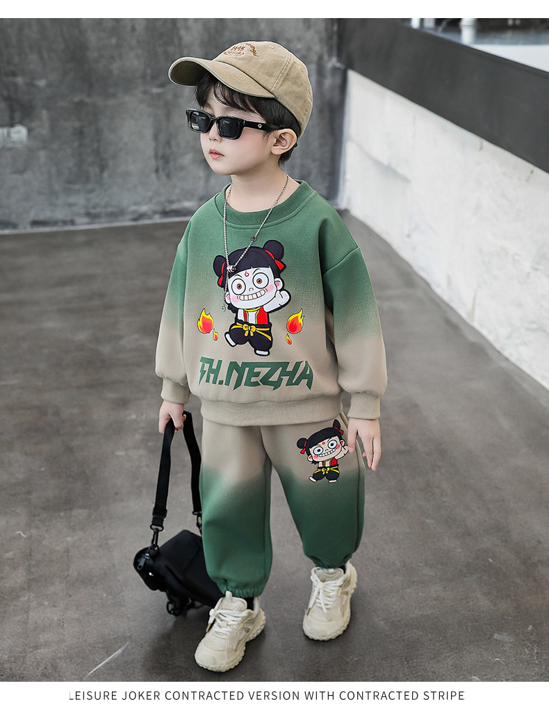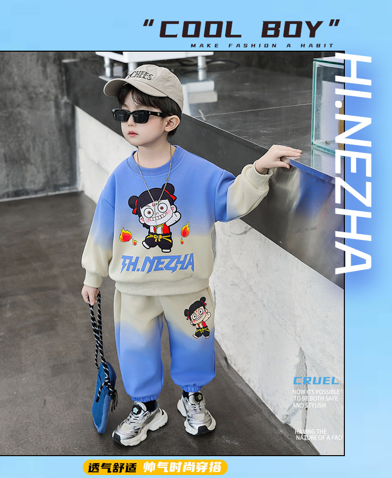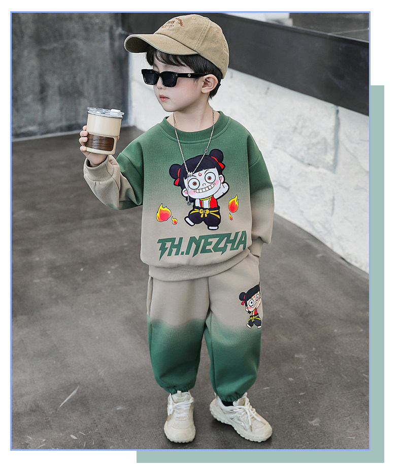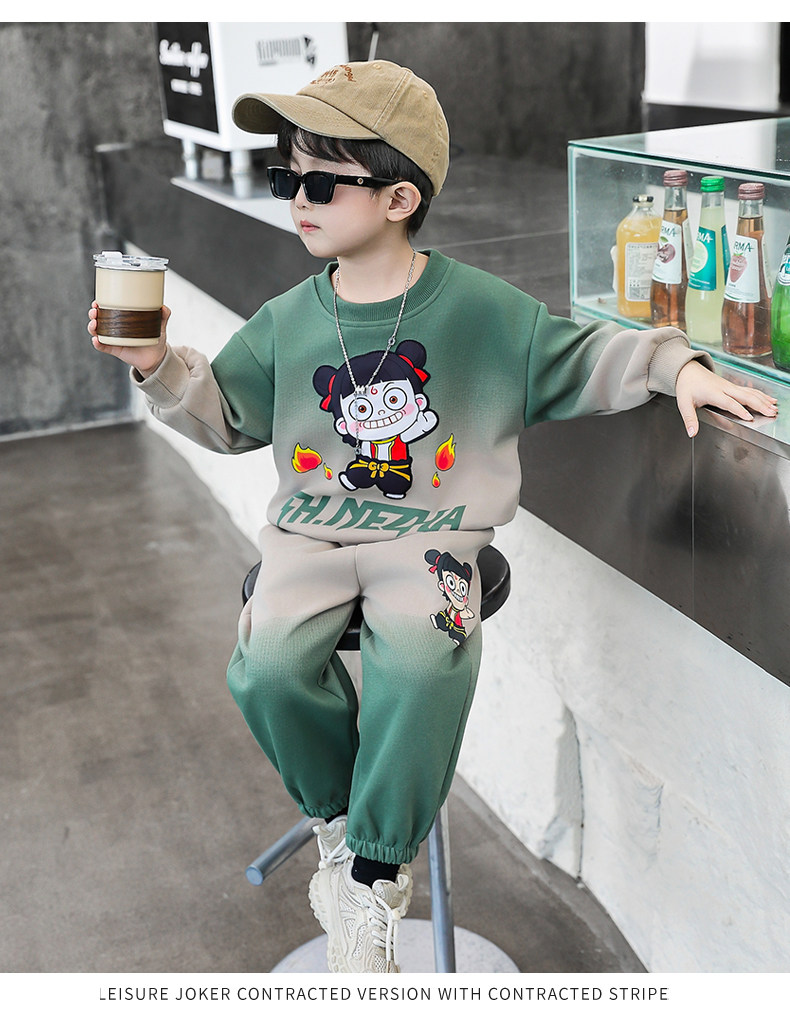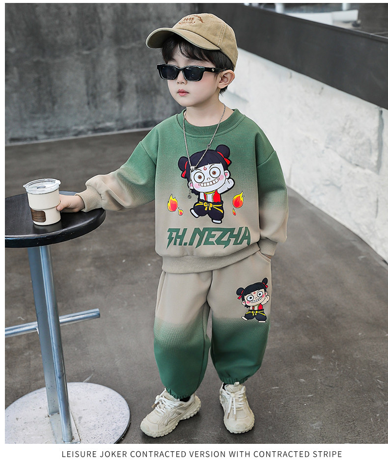 Boys' Nezha Sweatshirt Set, Autumn 2025 New Style, Cool and Handsome Children's Casual Two-Piece Set, Stylish Boys' Spring and Autumn Outfit