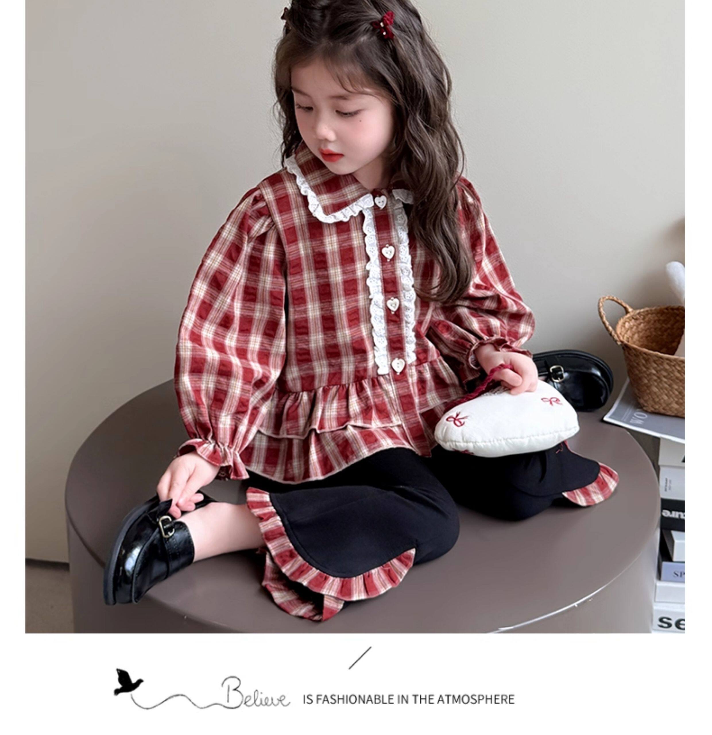 Girls' Outfit Autumn 2025 New Stylish Children's Clothing, Very Attractive Autumn Outfit for Baby Girls, Shirt and Flared Pants Two-Piece Set