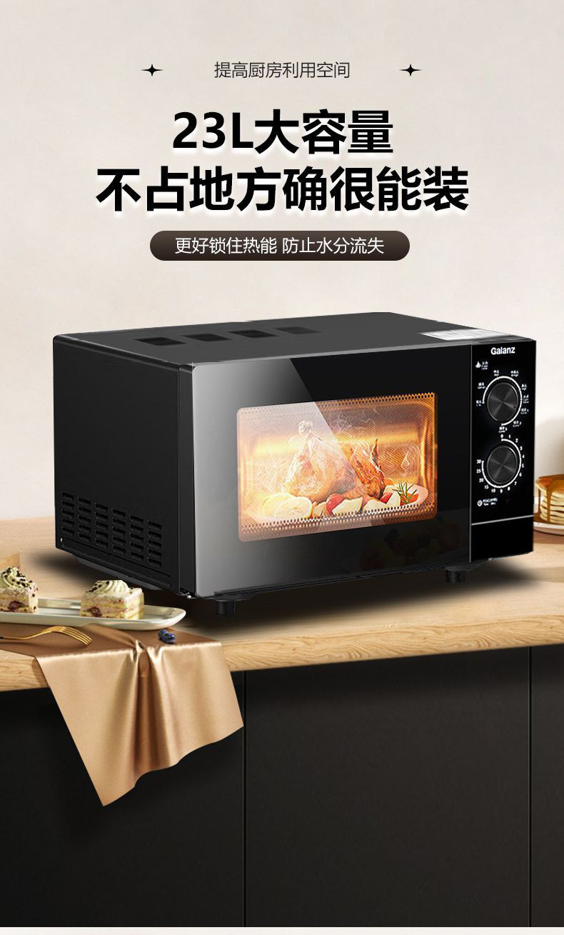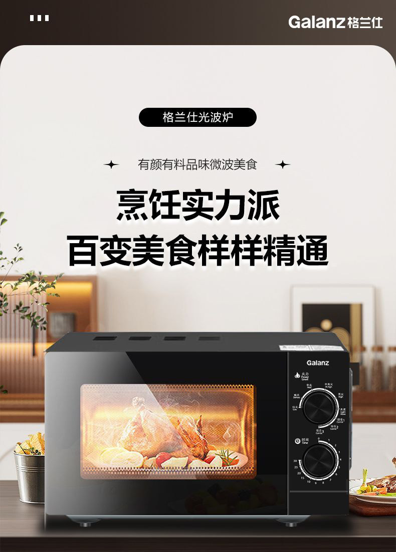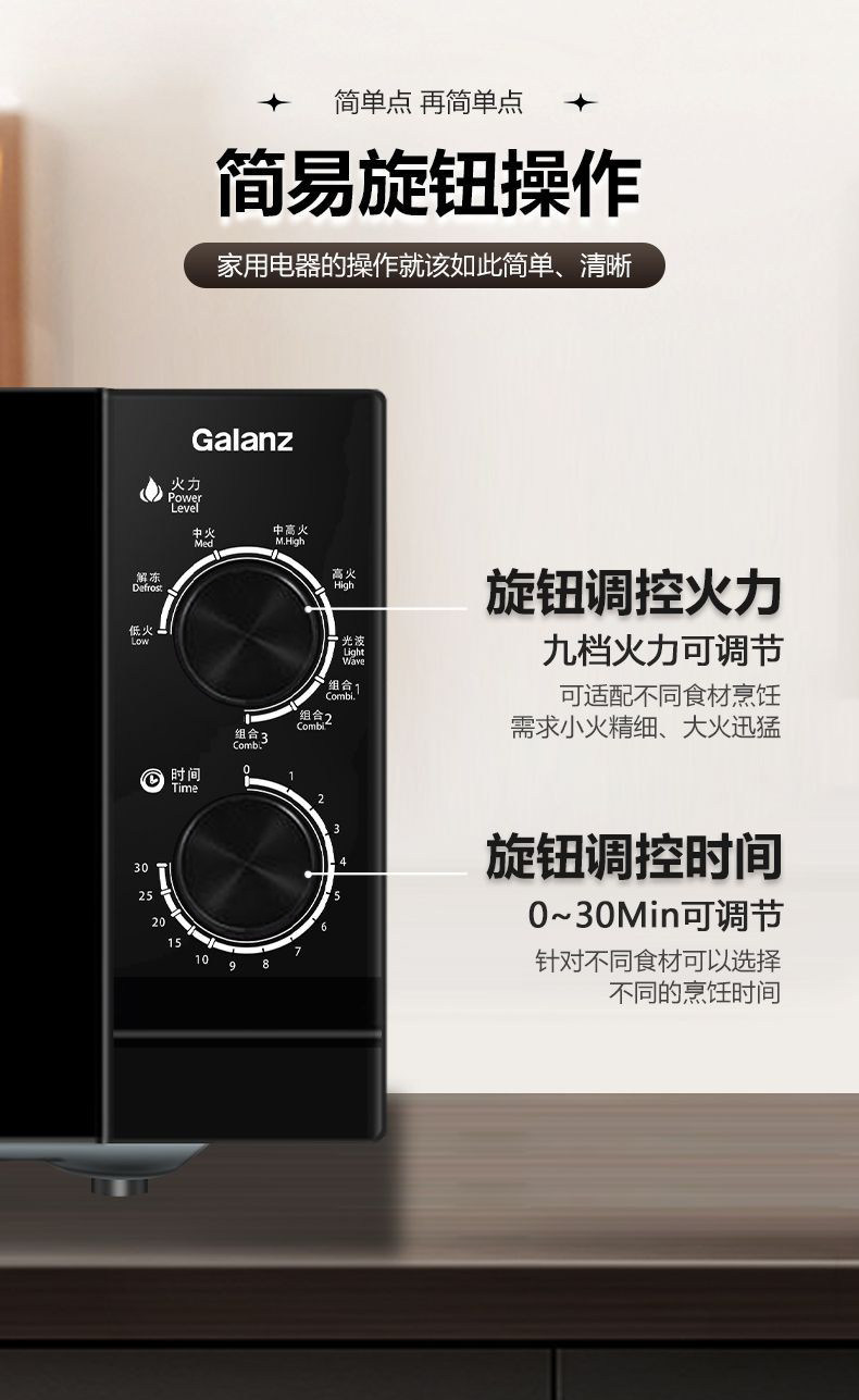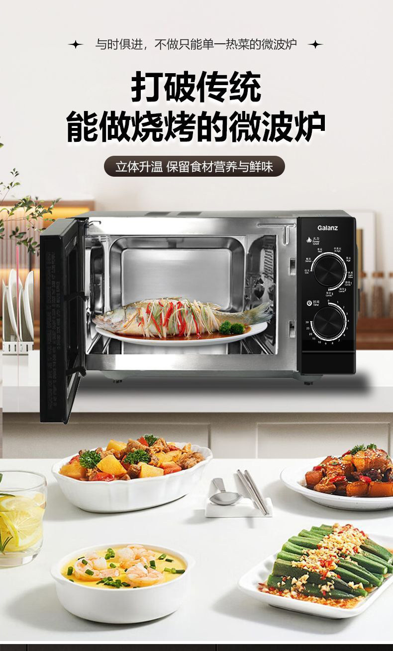 Galanz Stainless Steel Microwave Oven for Home Use, Flat-Panel Micro-Steaming and Baking Oven, Integrated Mechanical Knob Lightwave Oven, Official Genuine Product