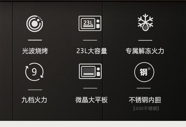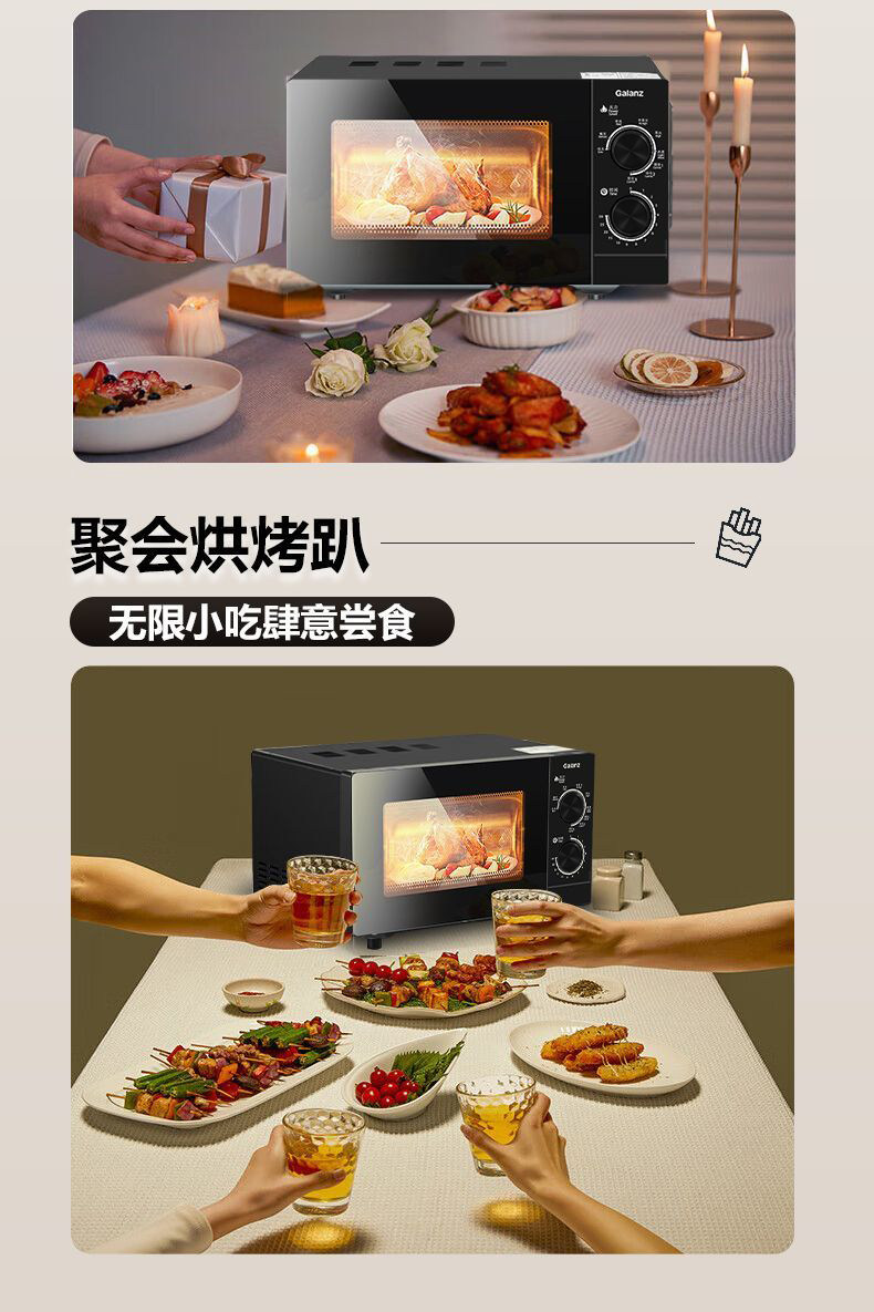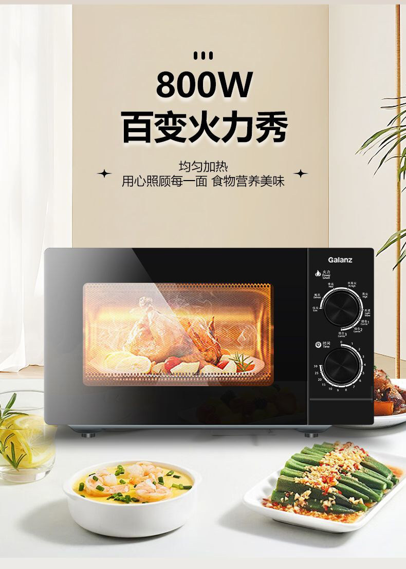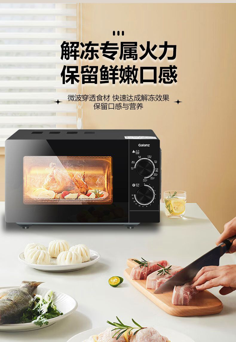 Galanz Stainless Steel Microwave Oven for Home Use, Flat-Panel Micro-Steaming and Baking Oven, Integrated Mechanical Knob Lightwave Oven, Official Genuine Product