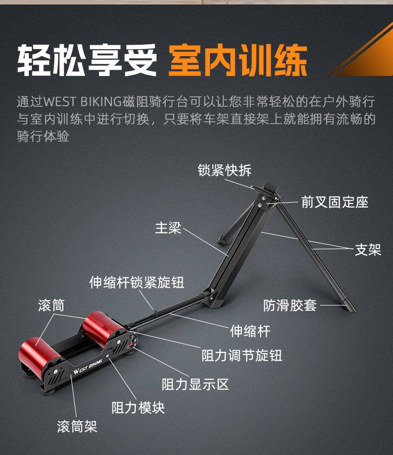 West Rider Indoor Roller Cycling Platform Mountain Road Bike Magnetic Resistance Training Station Home Fitness Exercise Folding Equipment