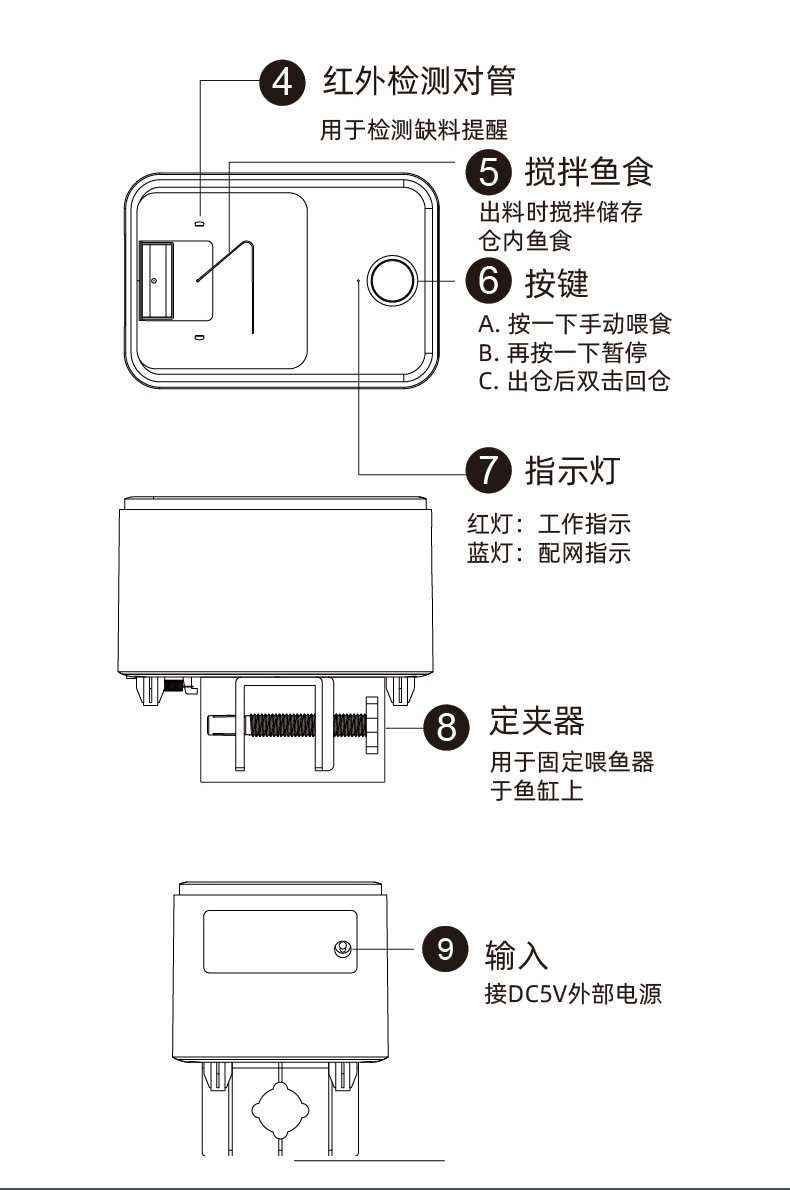 Automatic Fish Tank Feeder, Timed Fish Feeding Device, Wall-Mounted Feeding Machine, Wifi Small Fish Feeder