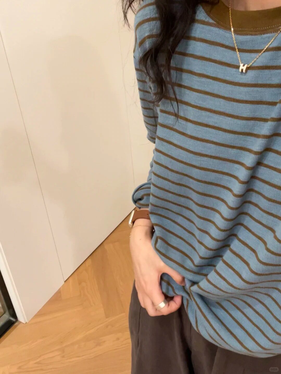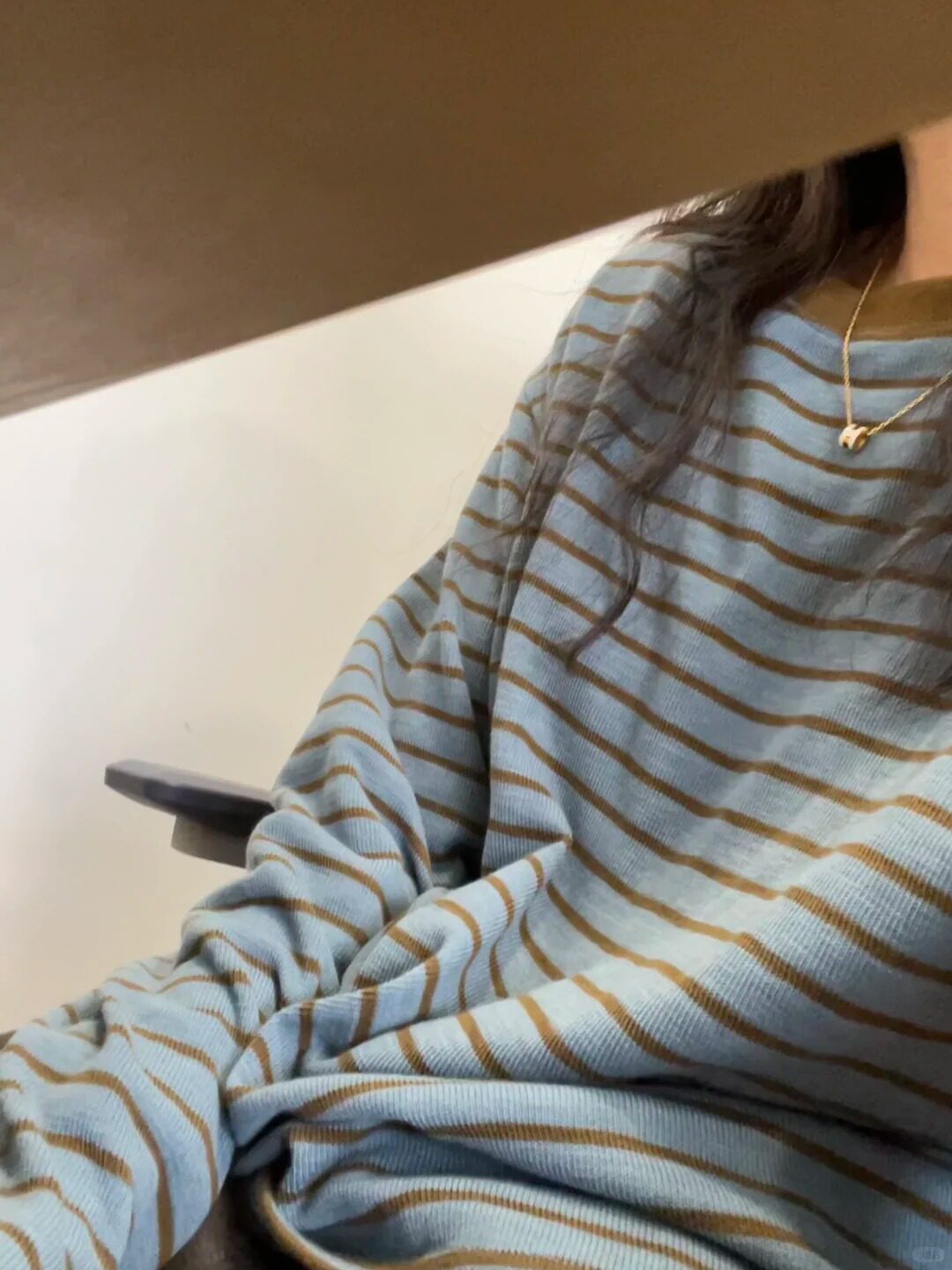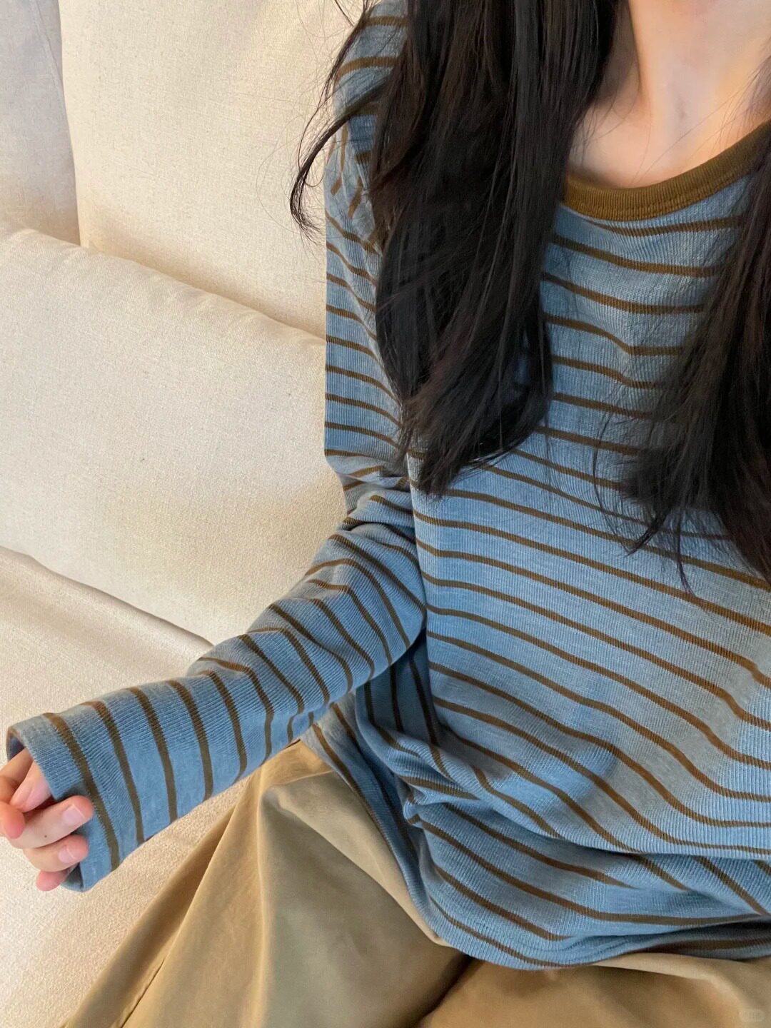 Soft and Comfortable Casual Round-Neck Blue and Yellow Striped Color-Block Long-Sleeve Base Layer T-Shirt for Women, New Autumn 2025 Model
