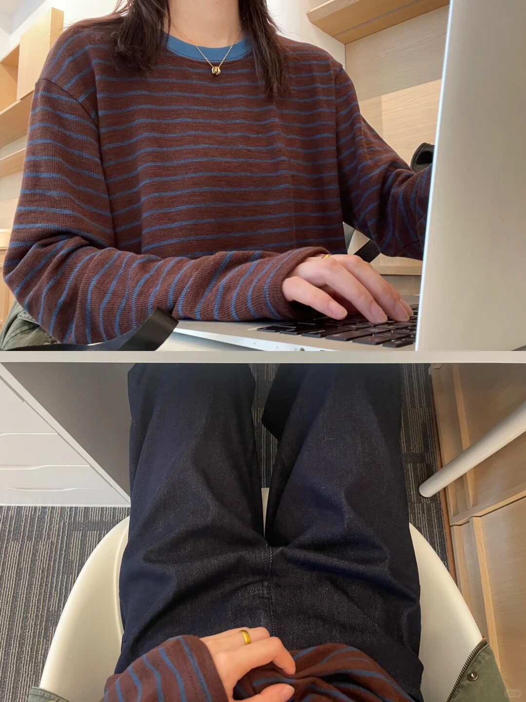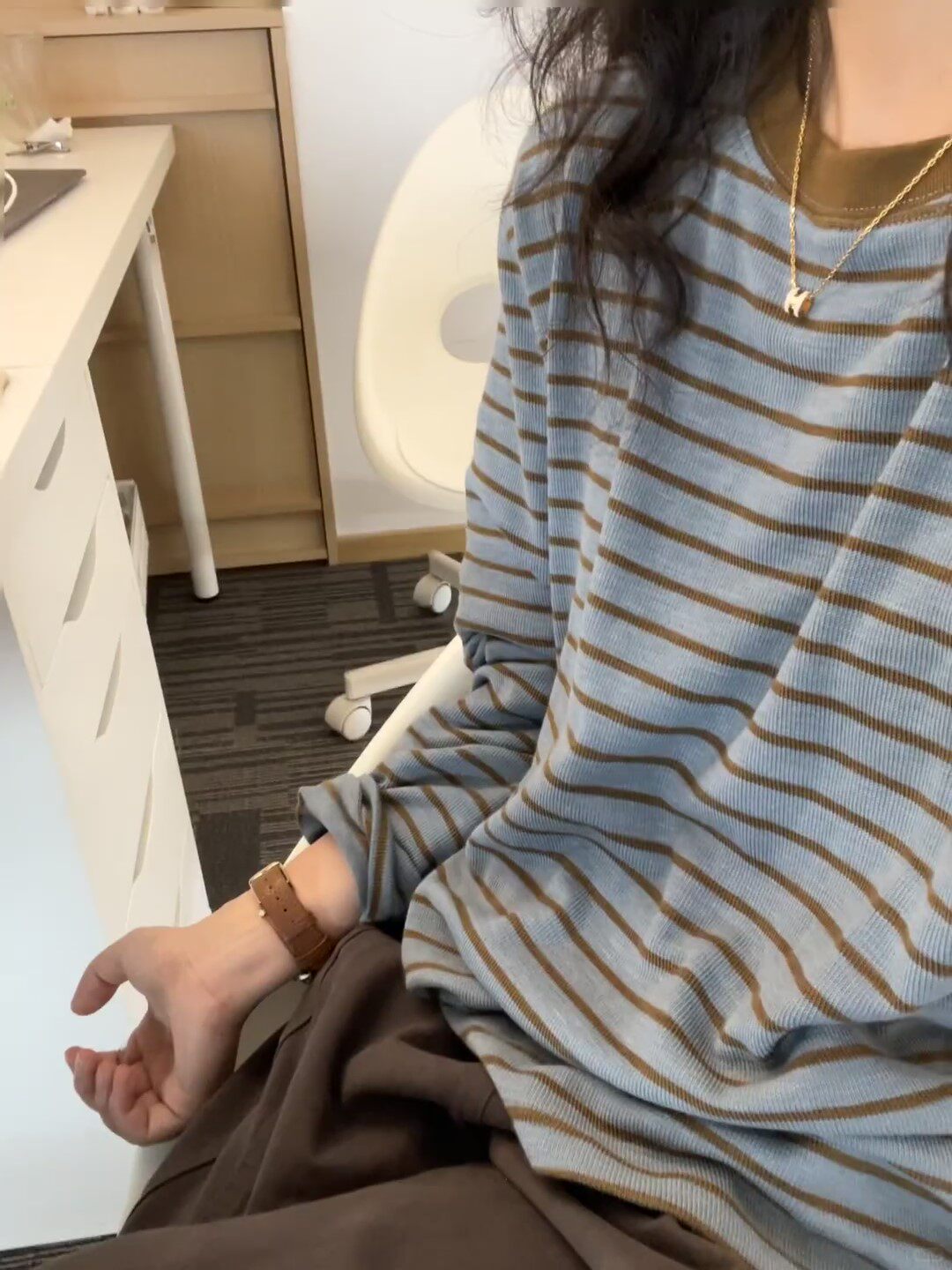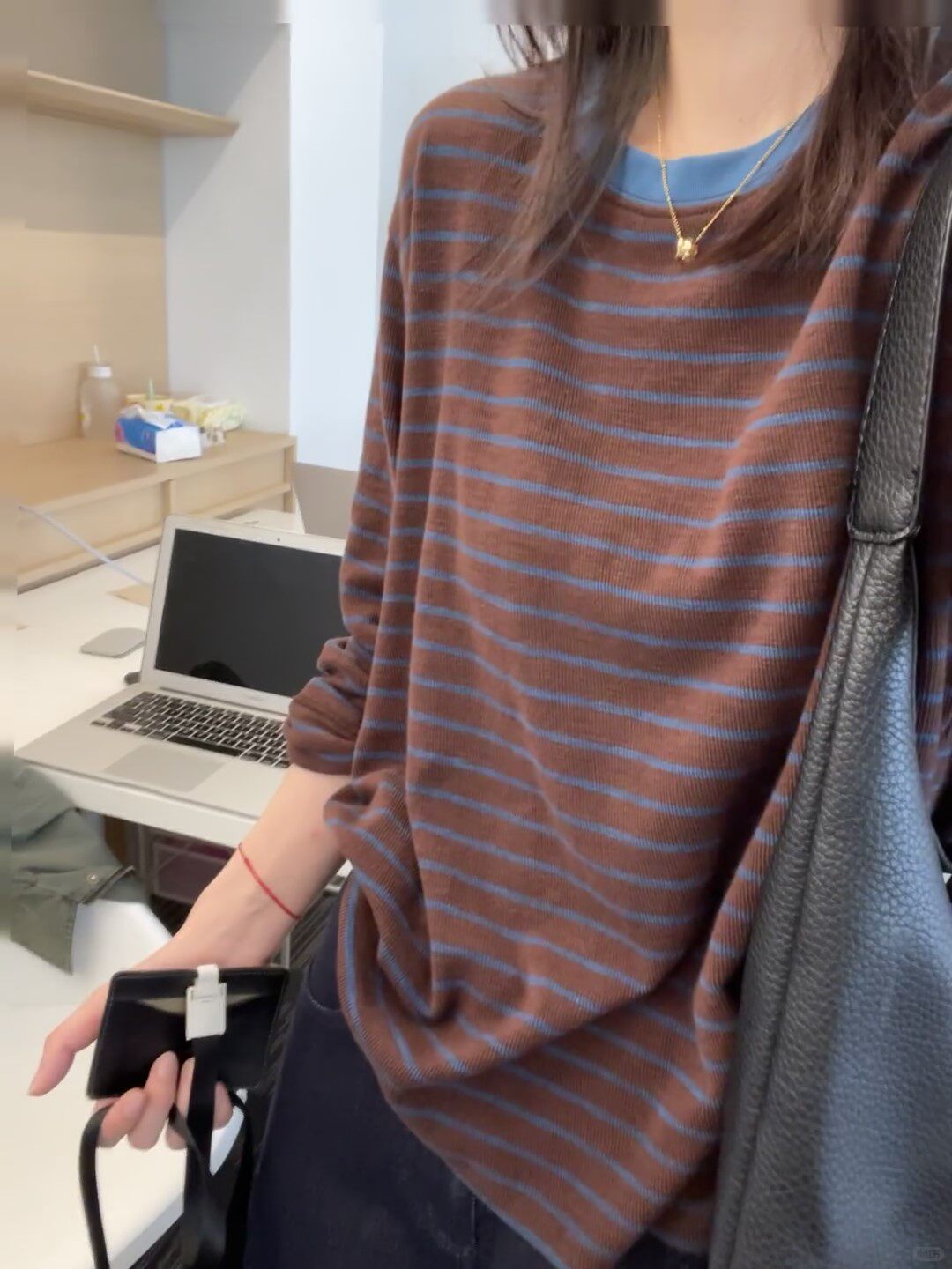 Soft and Comfortable Casual Round-Neck Blue and Yellow Striped Color-Block Long-Sleeve Base Layer T-Shirt for Women, New Autumn 2025 Model