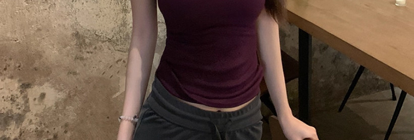 Purple Camisole with Chest Pads for Women, Summer Pure and Sexy Style, Beautiful Back, Slim Fit, Inner Layer, Sleeveless Top