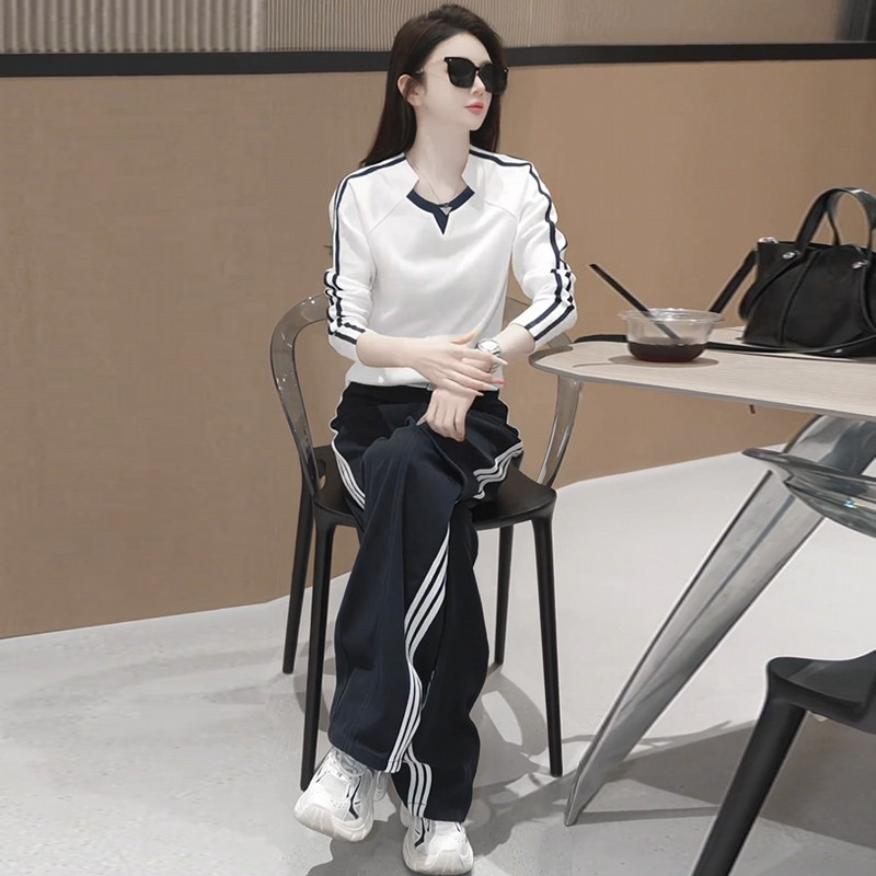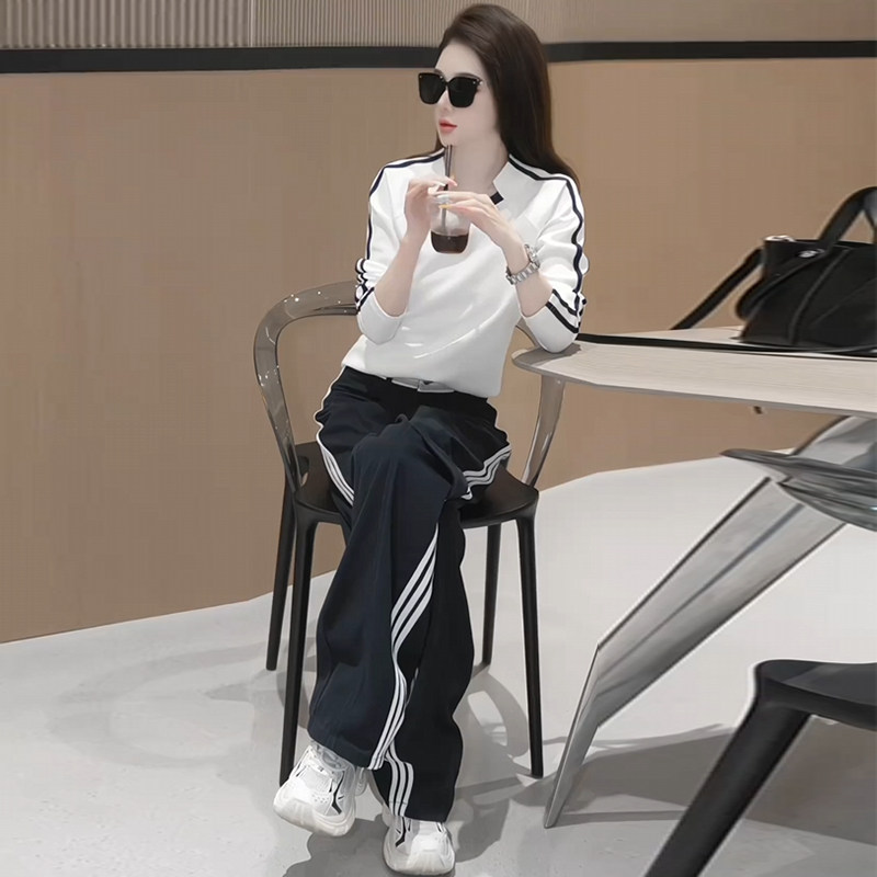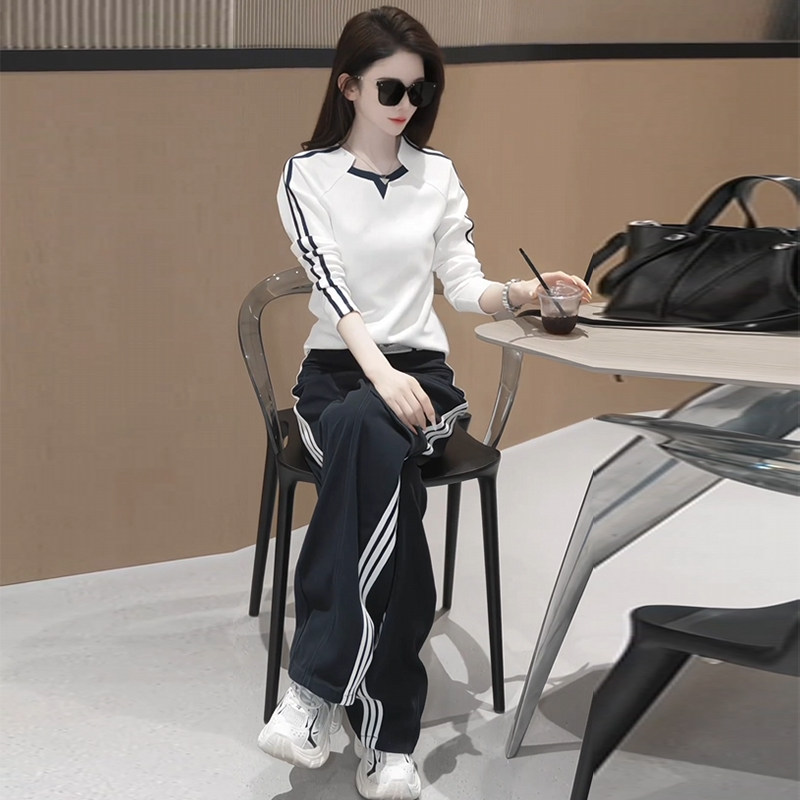 Jasmine haute couture autumn suit for women 2025 new design niche long-sleeved T-shirt wide-leg pants casual two-piece set