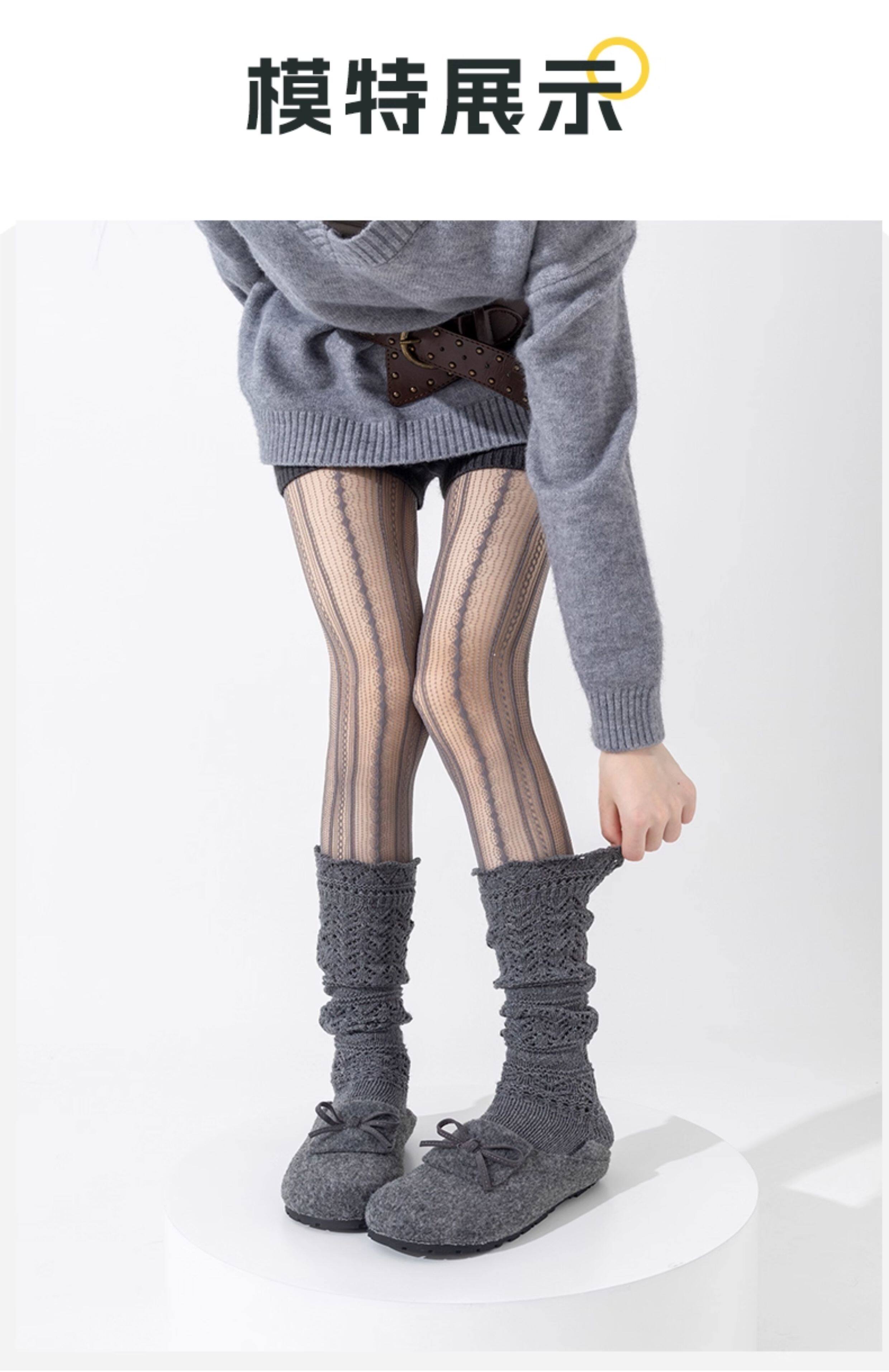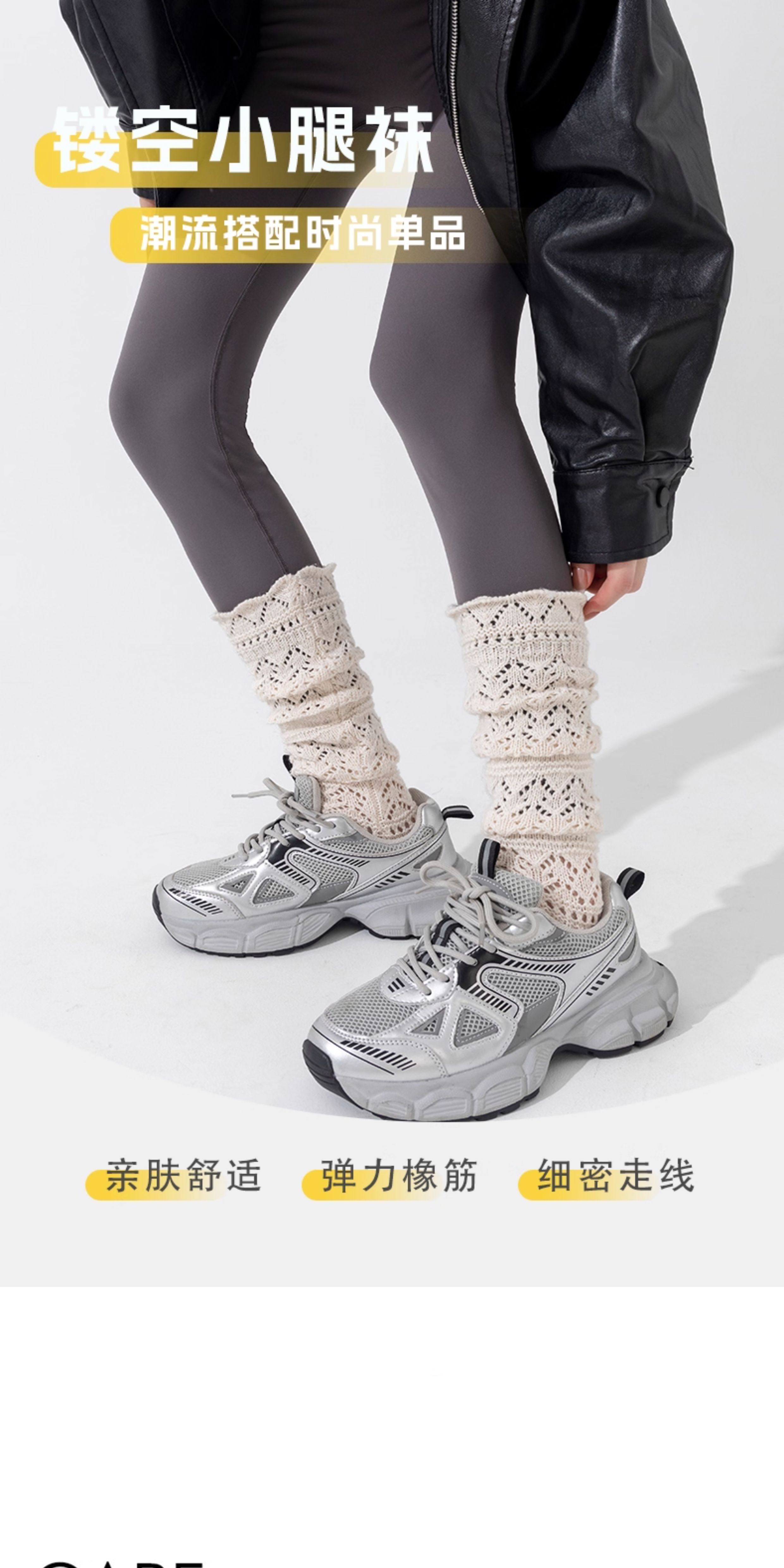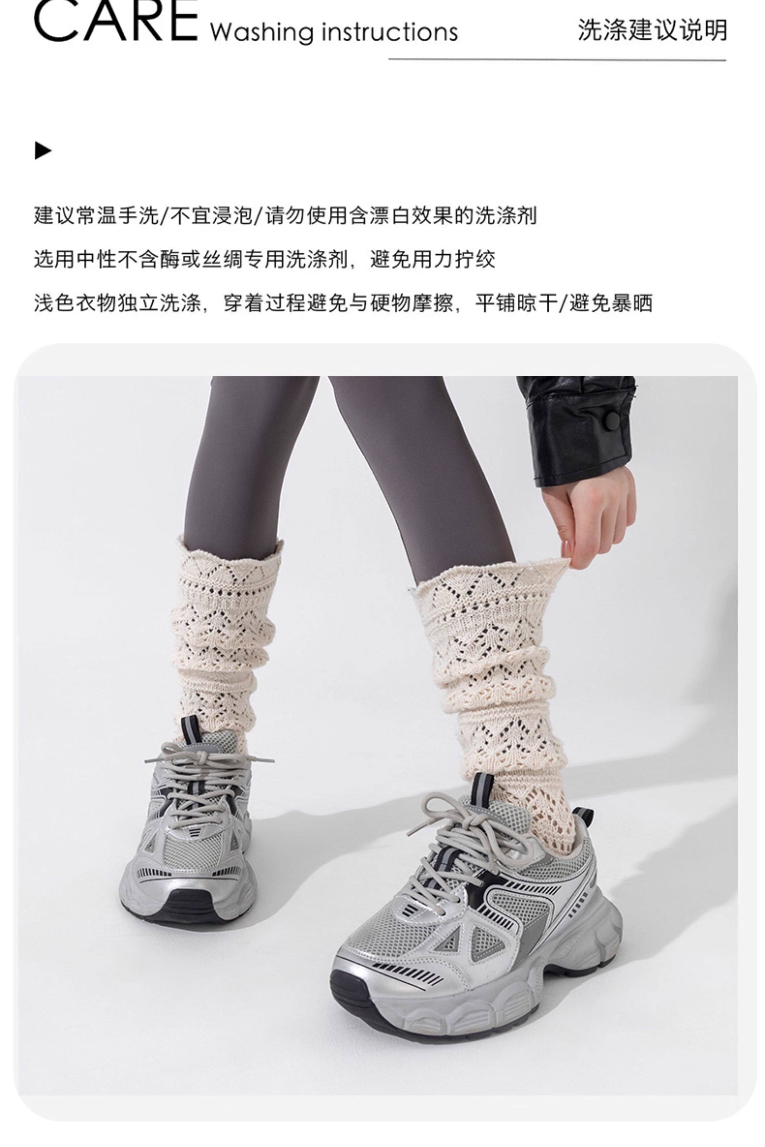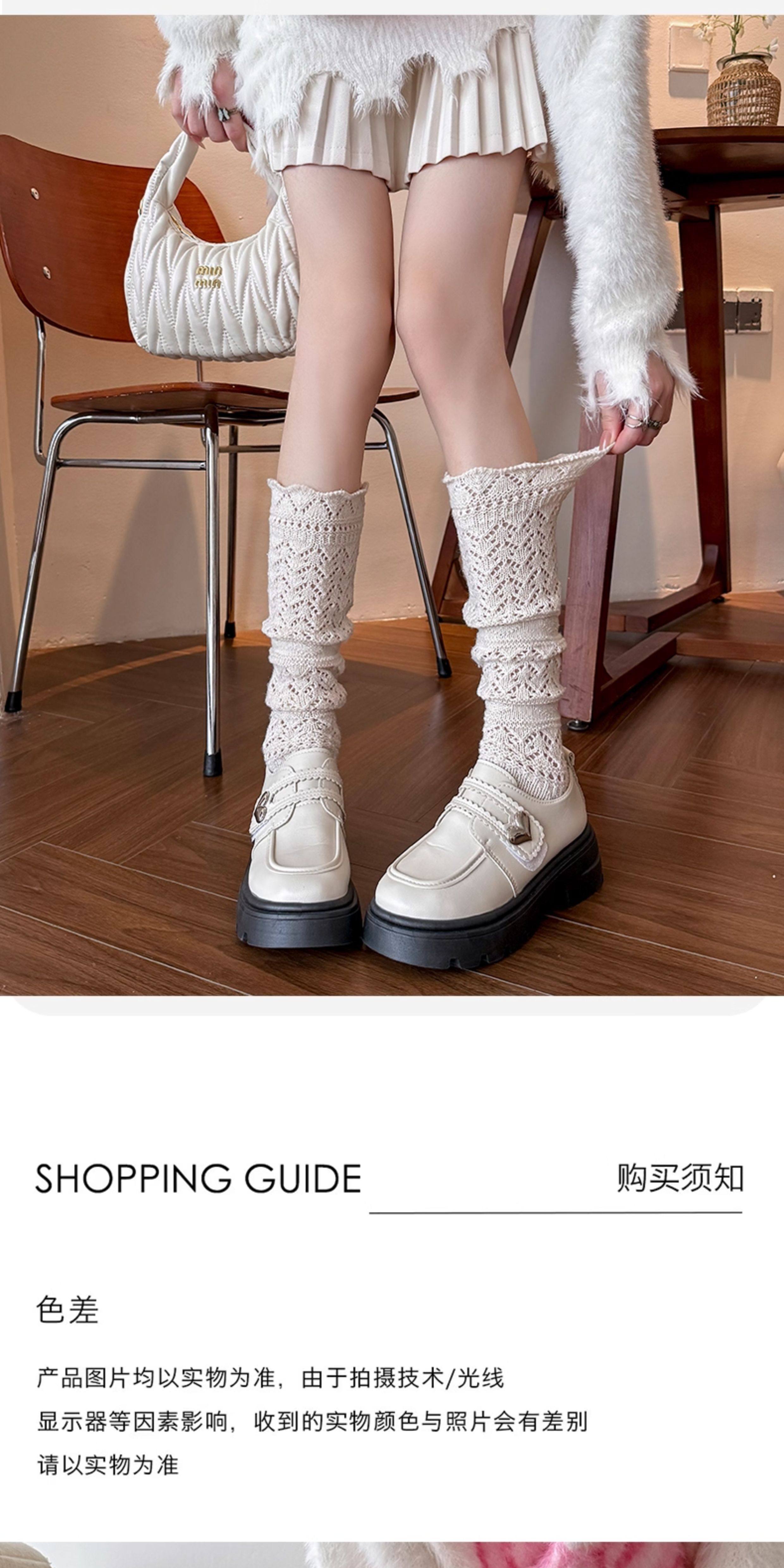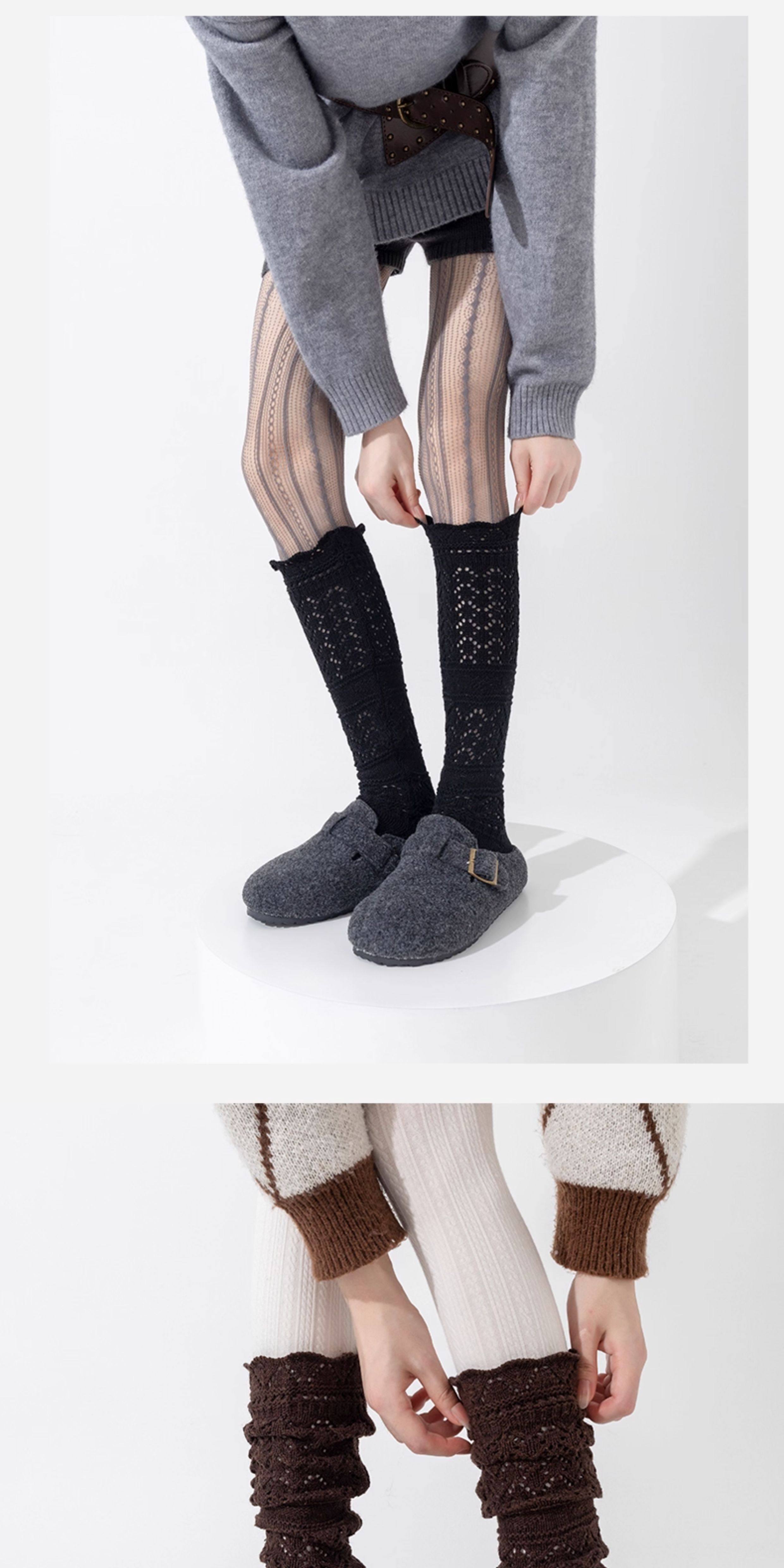 Weixue Style Wool Slouch Socks for Women, Autumn and Winter Warm Knitted Hollow-Out Calf Socks, Spring and Autumn Lace Wool Long Socks