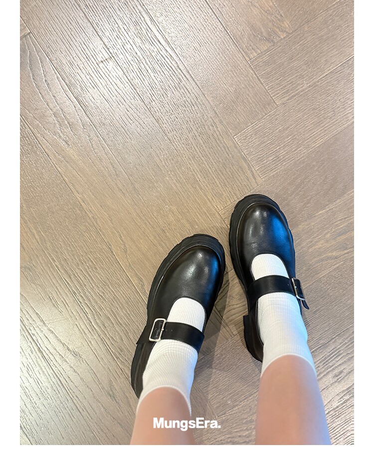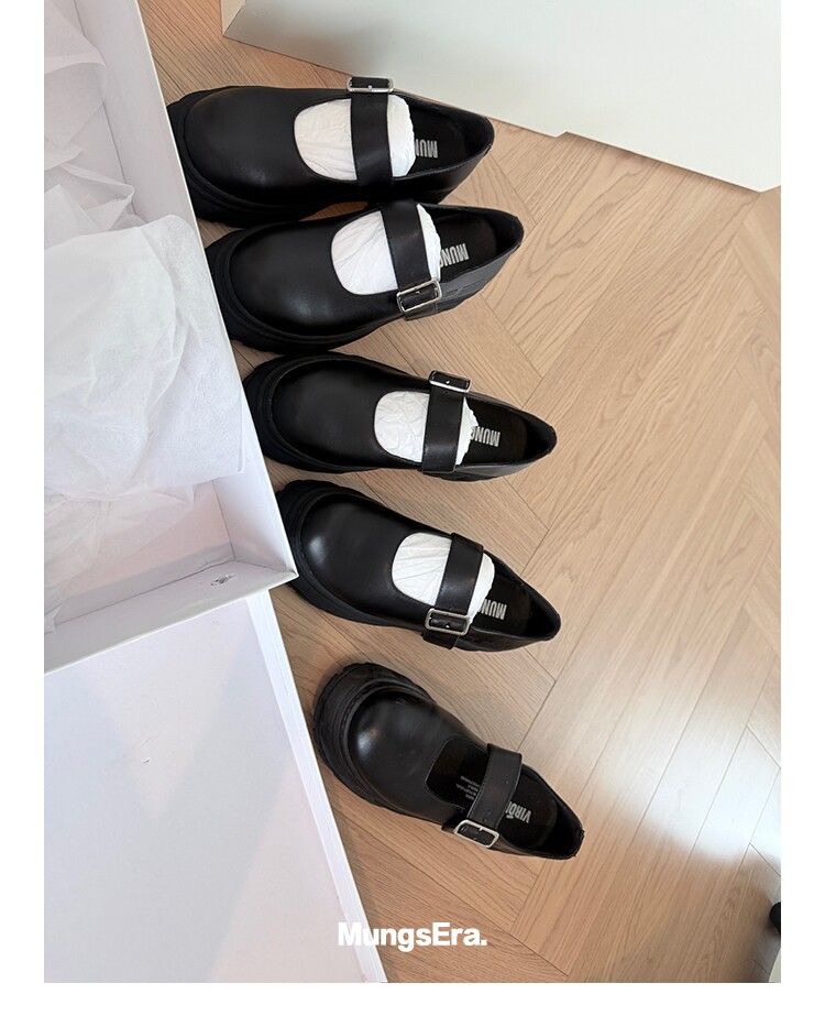 Mungsera[Rome Academy]5Cm Thick-Soled Molded Mary Jane Loafers Made of First-Layer Cowhide Leather