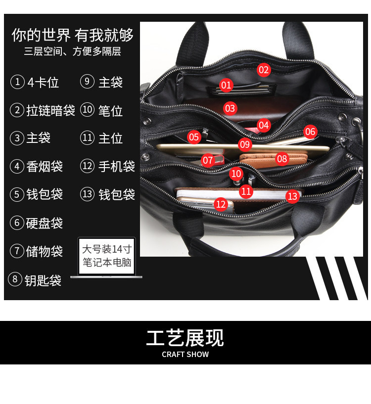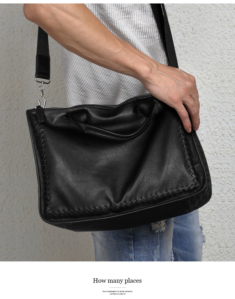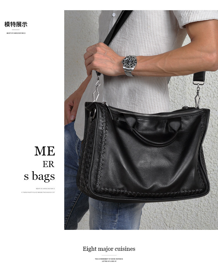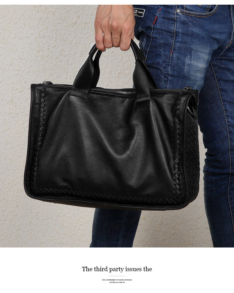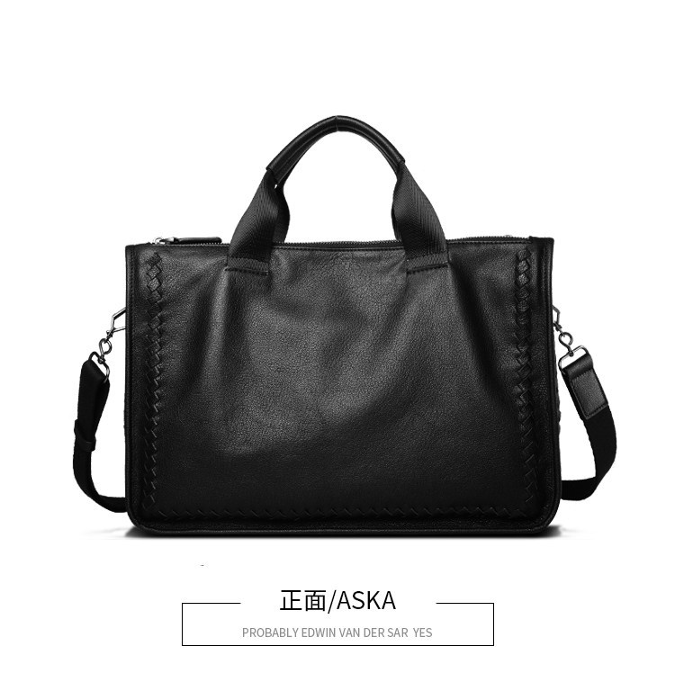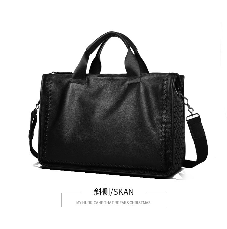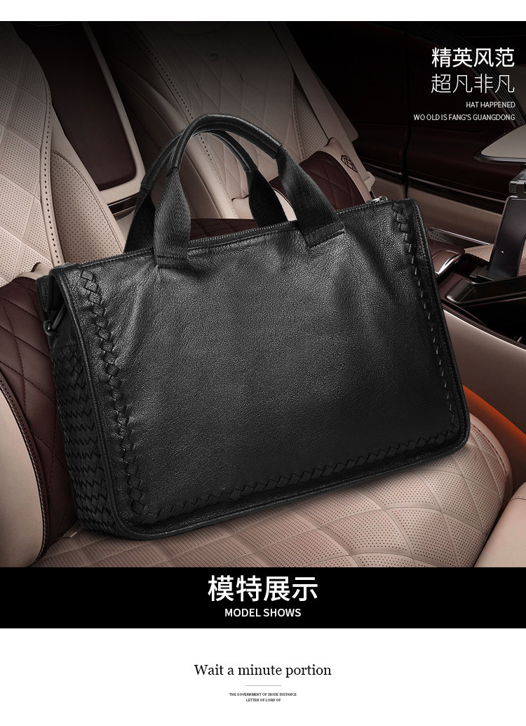 Lendaryer Woven Cowhide Men's Handbag Genuine Leather Business Casual Soft Leather Business Briefcase Computer Bag