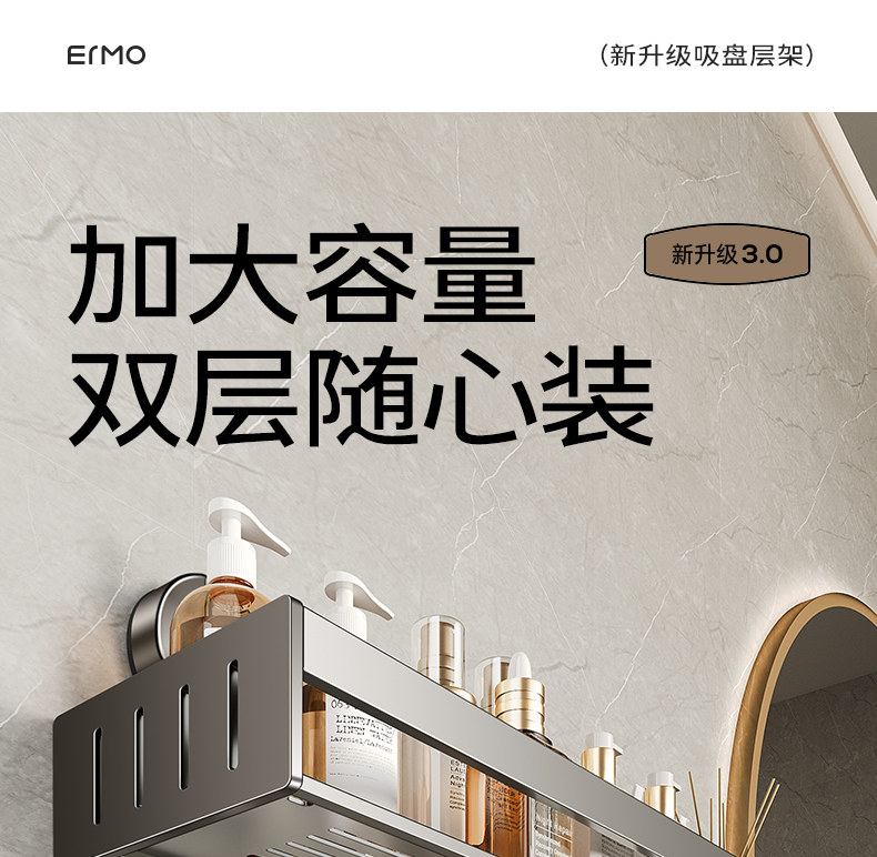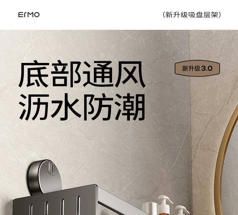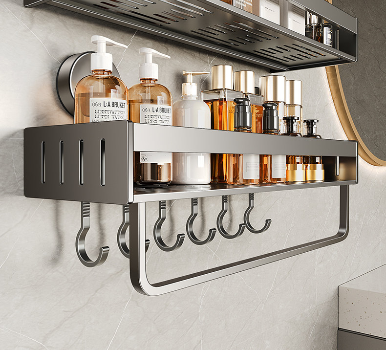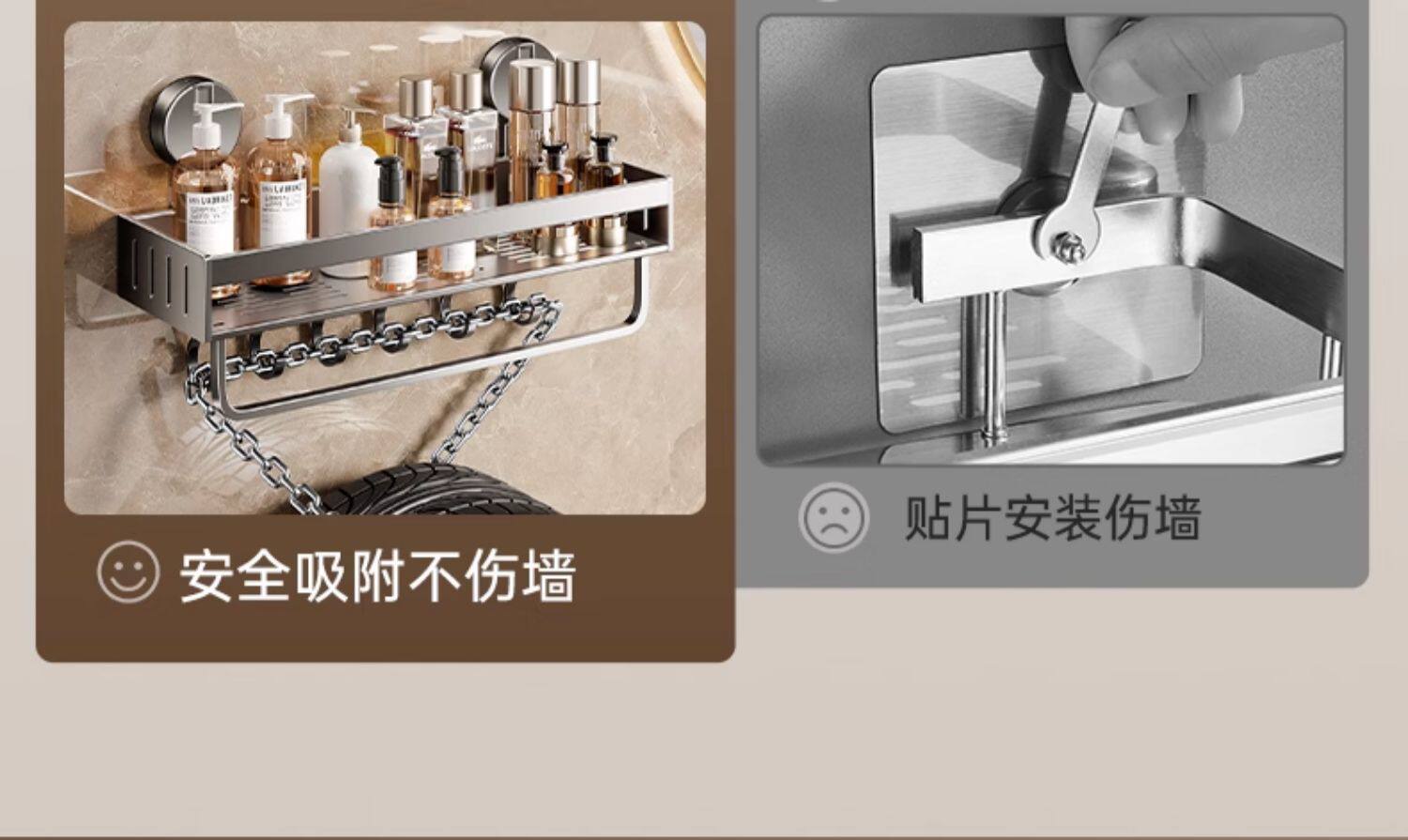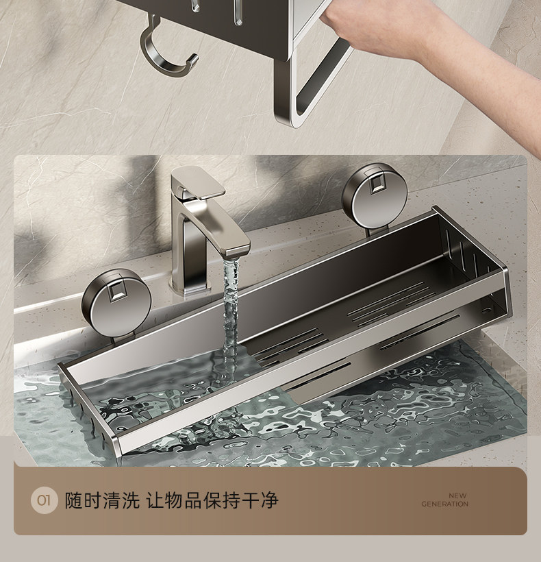 Suction Cup Bathroom Storage Rack, No-Drill Wall-Mounted Washbasin Organizer for Bathroom and Toilet
