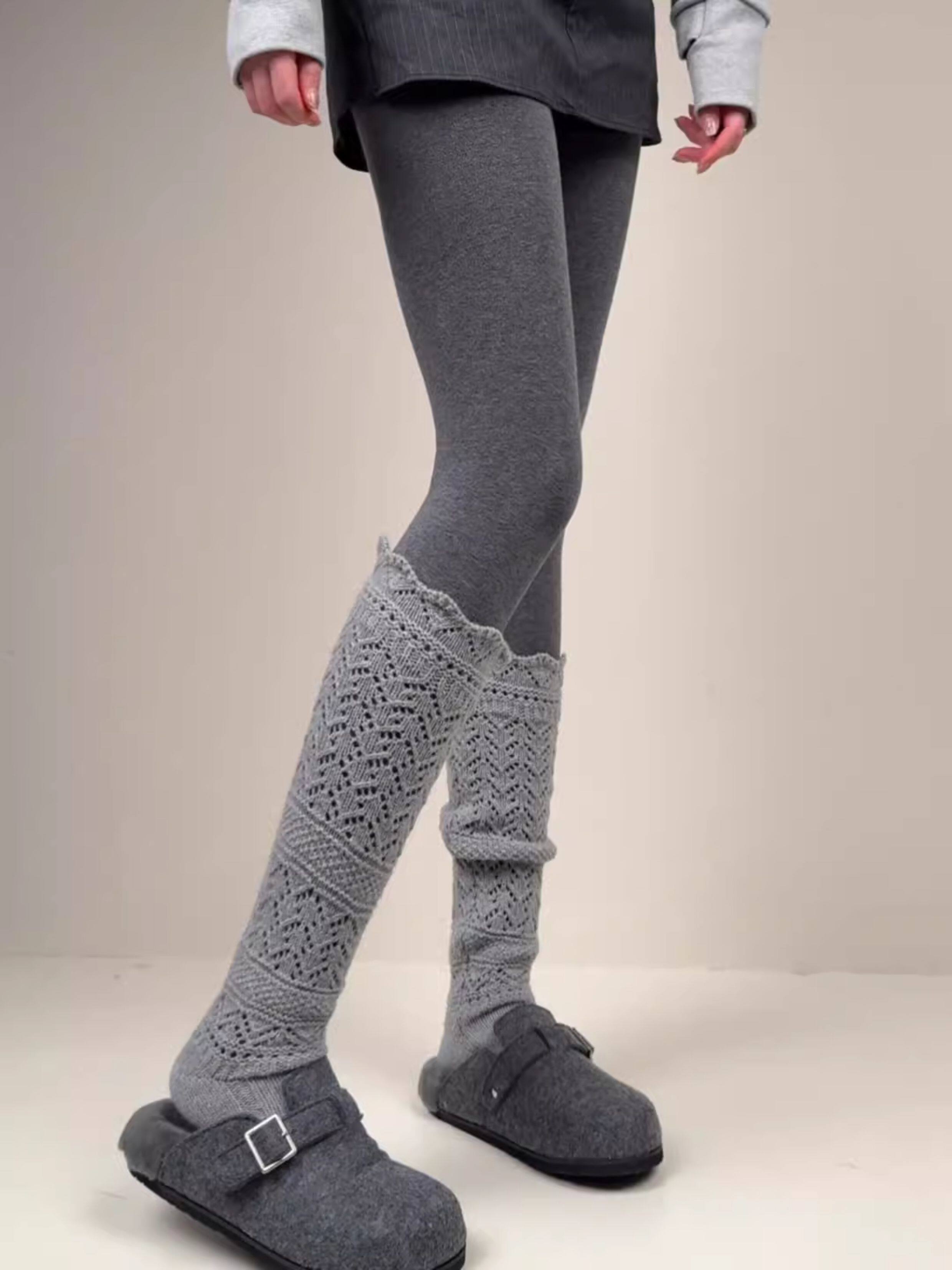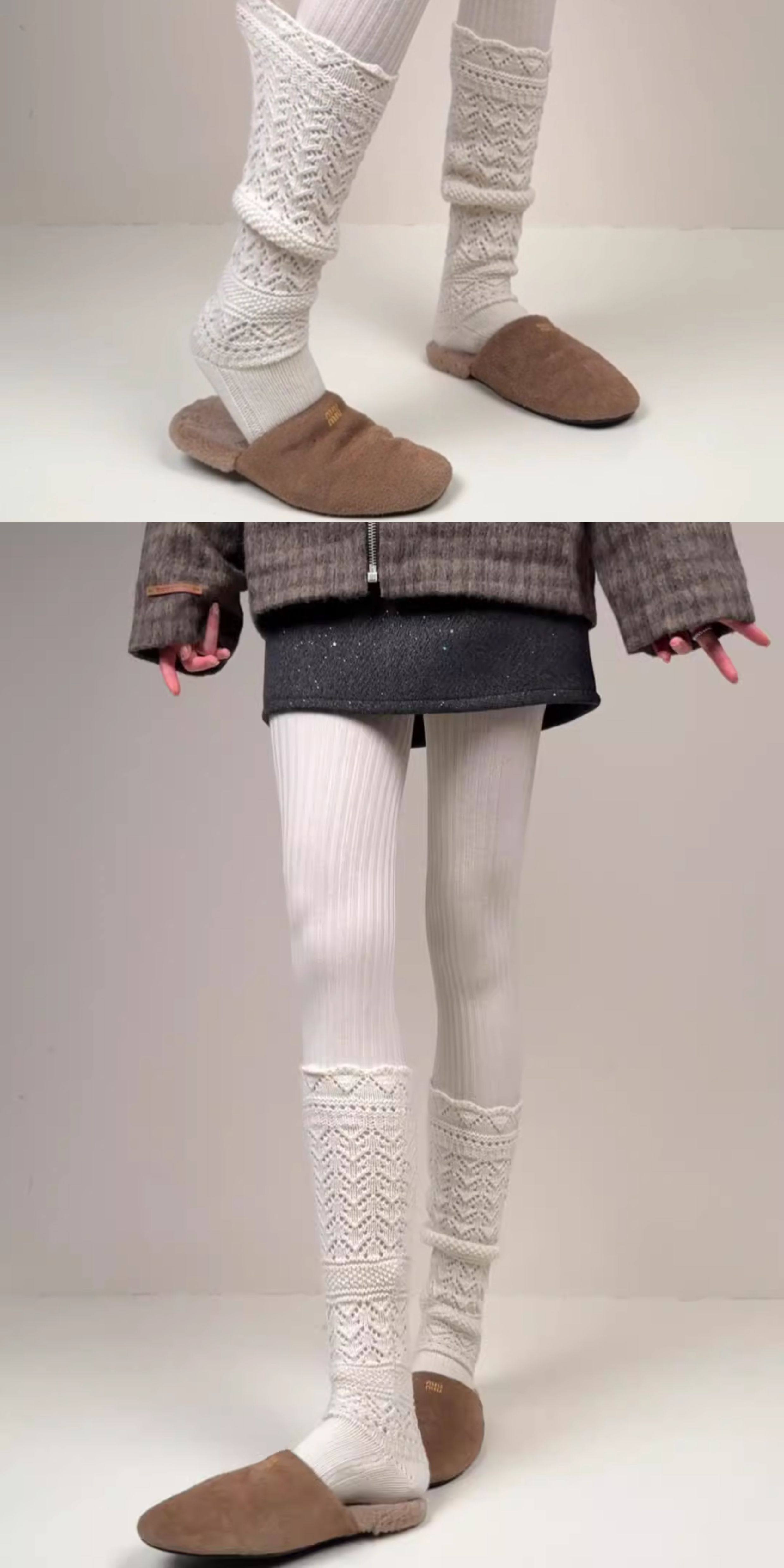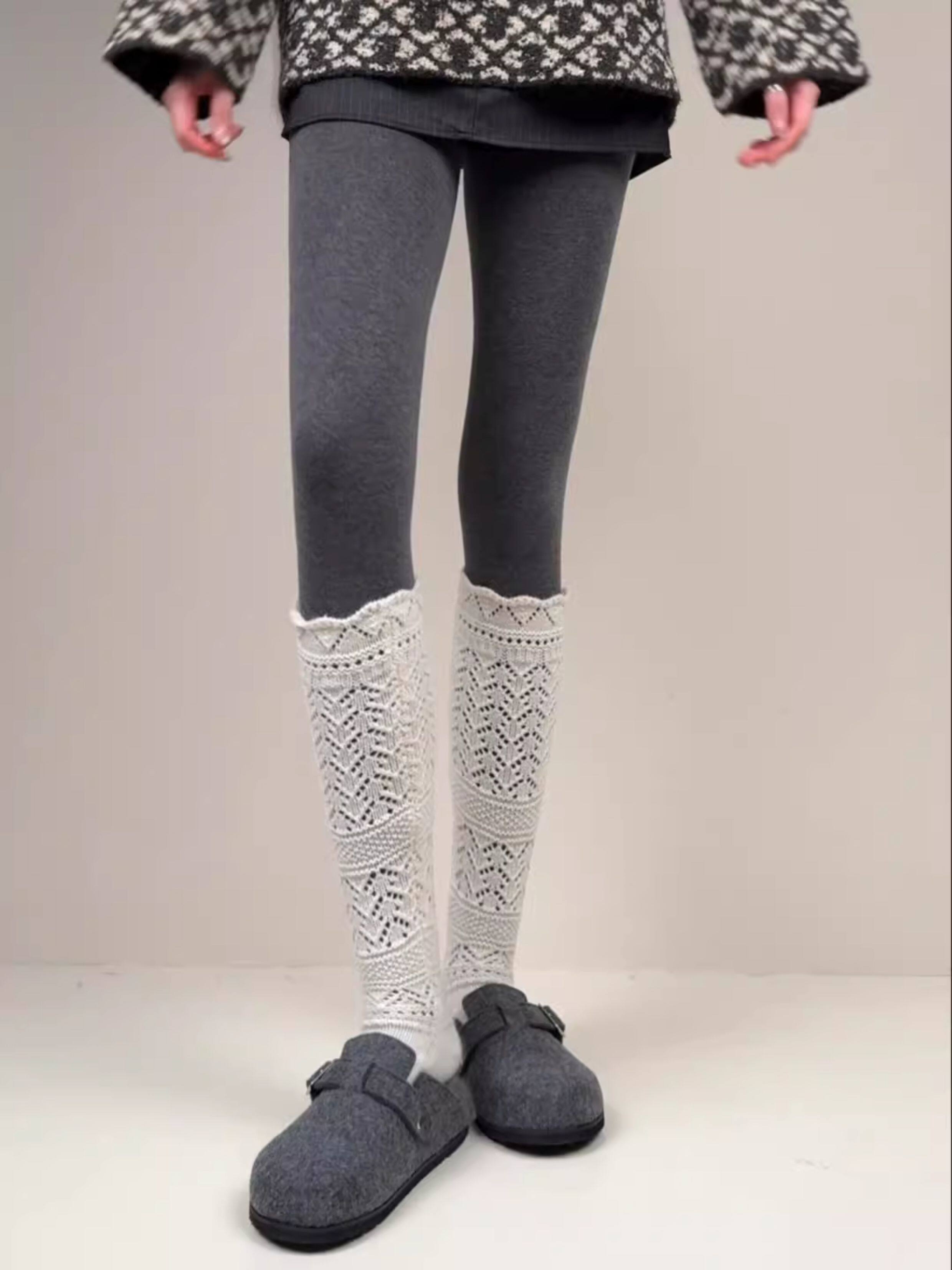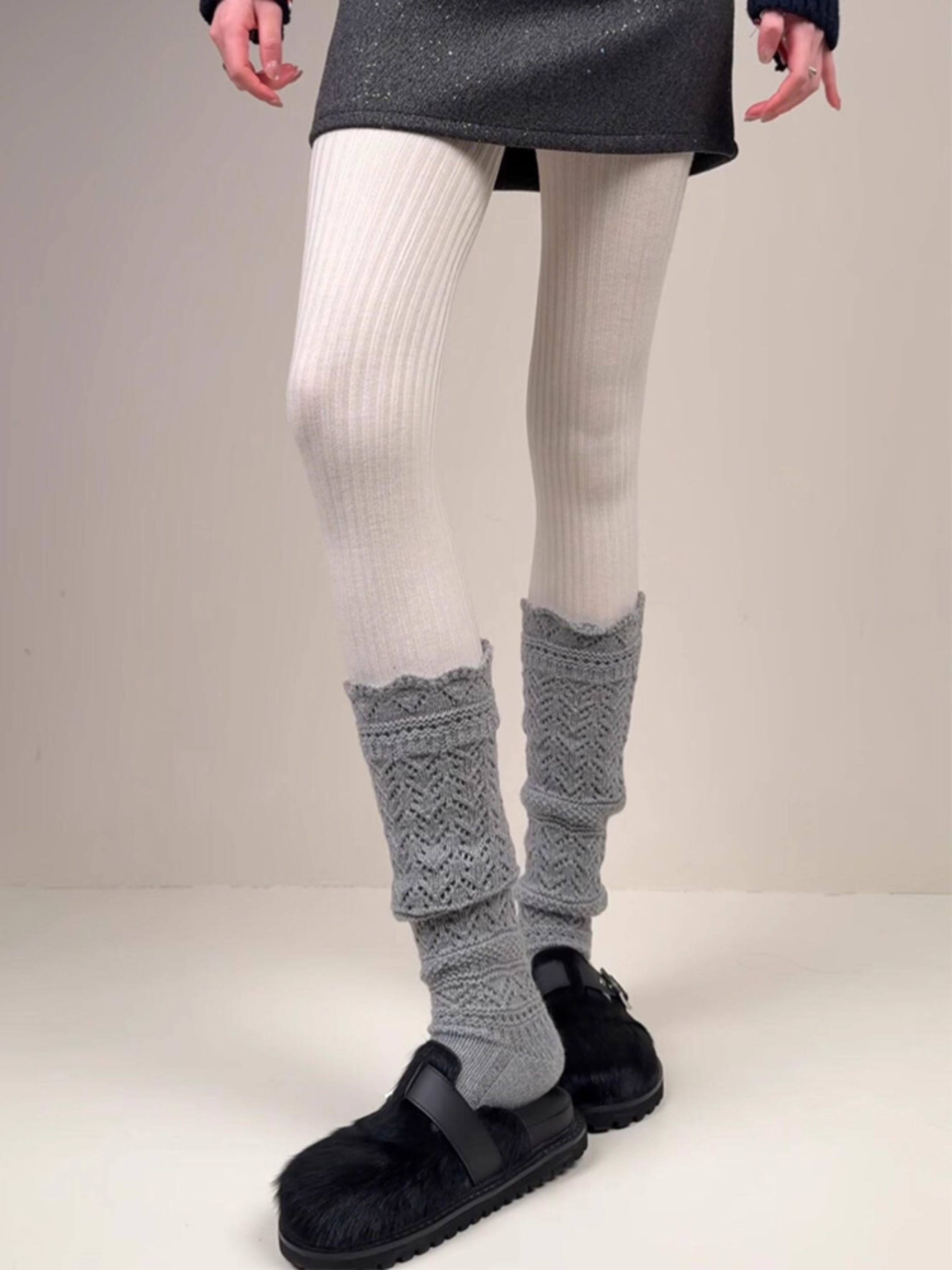 Weixue Style Knitted Hollow-Out Calf Socks for Women, Spring and Autumn Warm Wool Slouch Socks, Autumn and Winter Lace Wool Long Socks