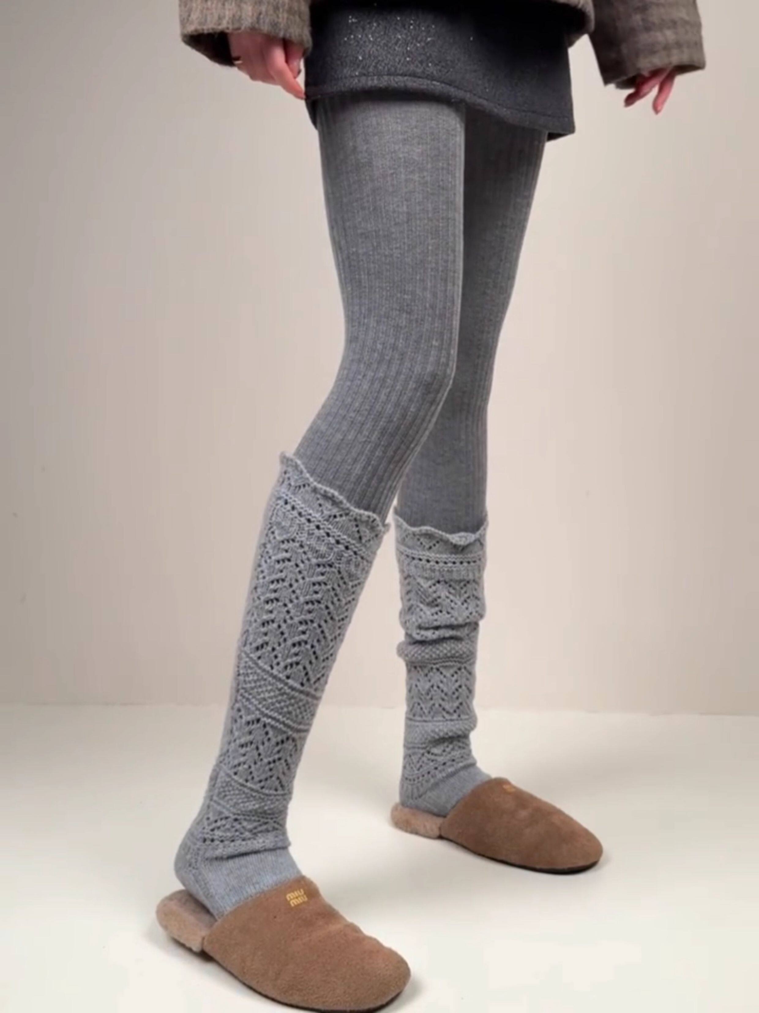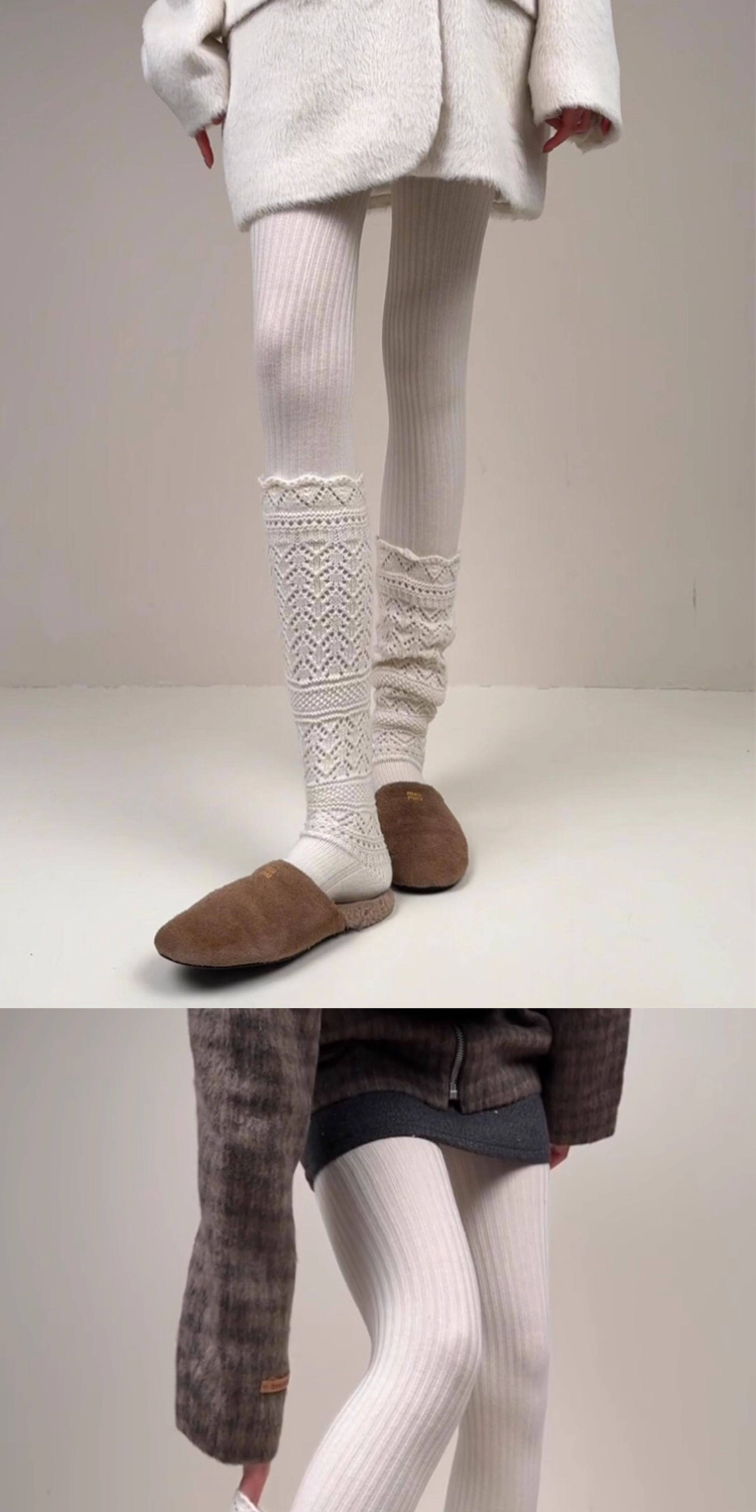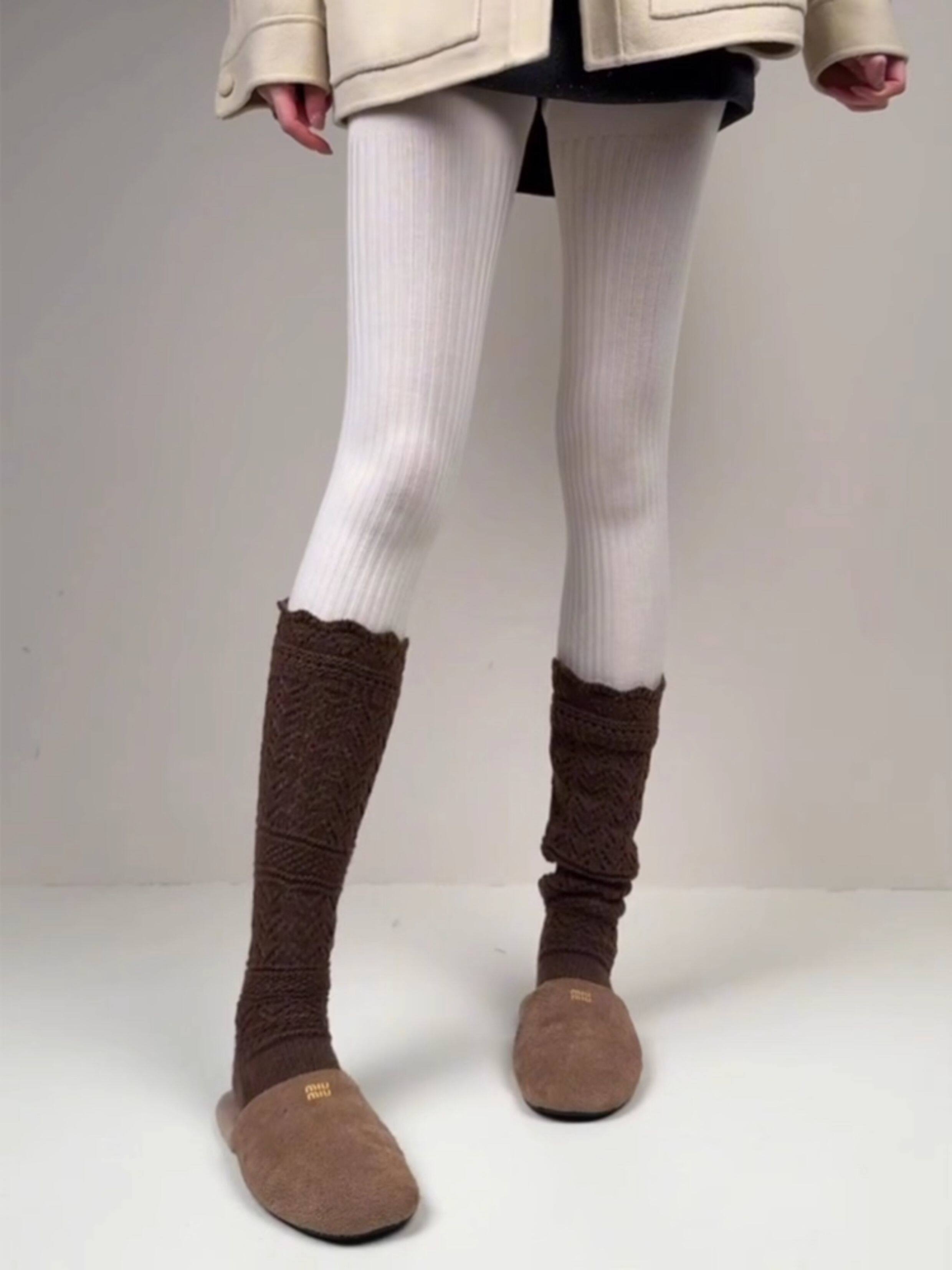 Weixue Style Knitted Hollow-Out Calf Socks for Women, Spring and Autumn Warm Wool Slouch Socks, Autumn and Winter Lace Wool Long Socks