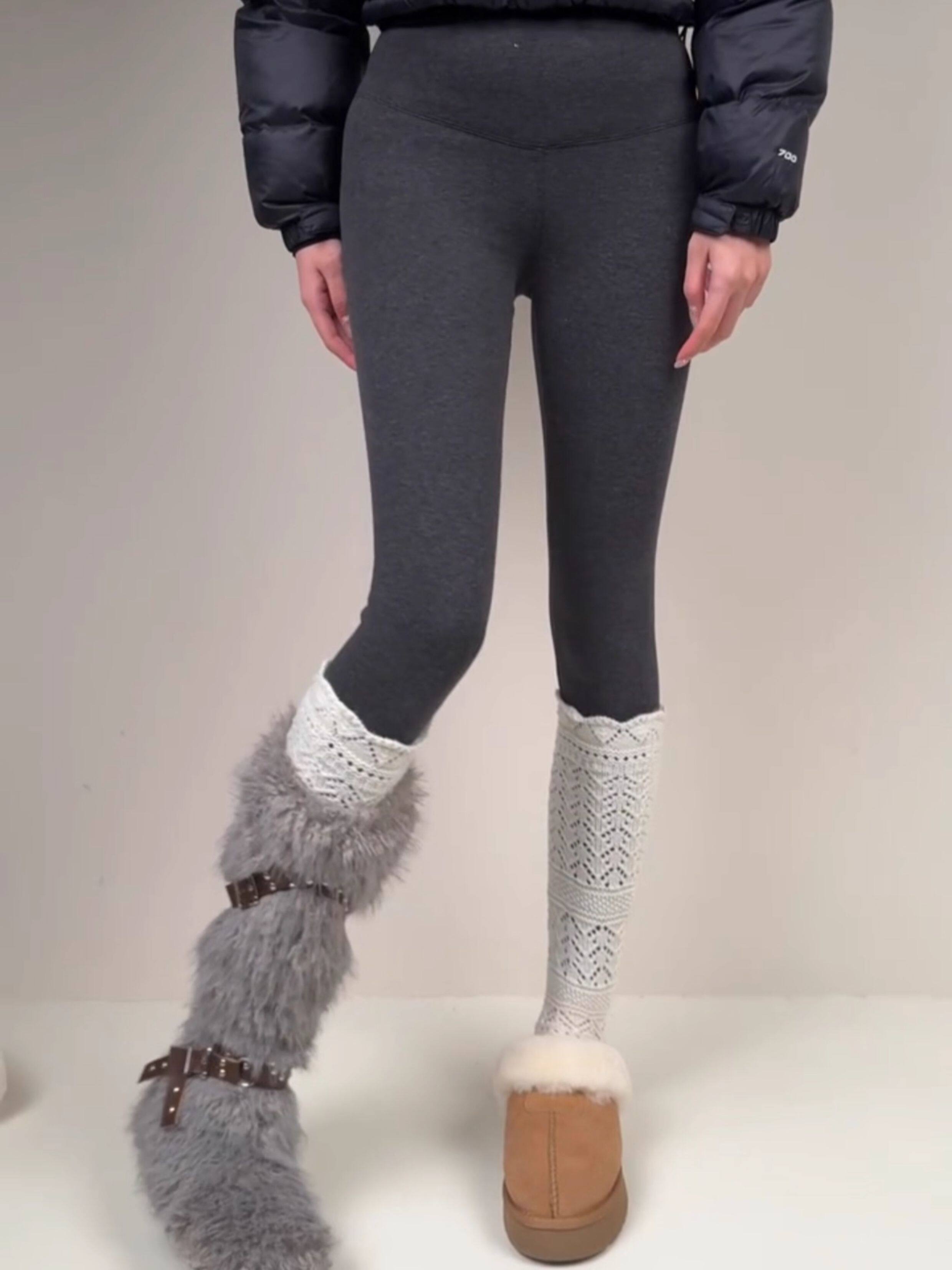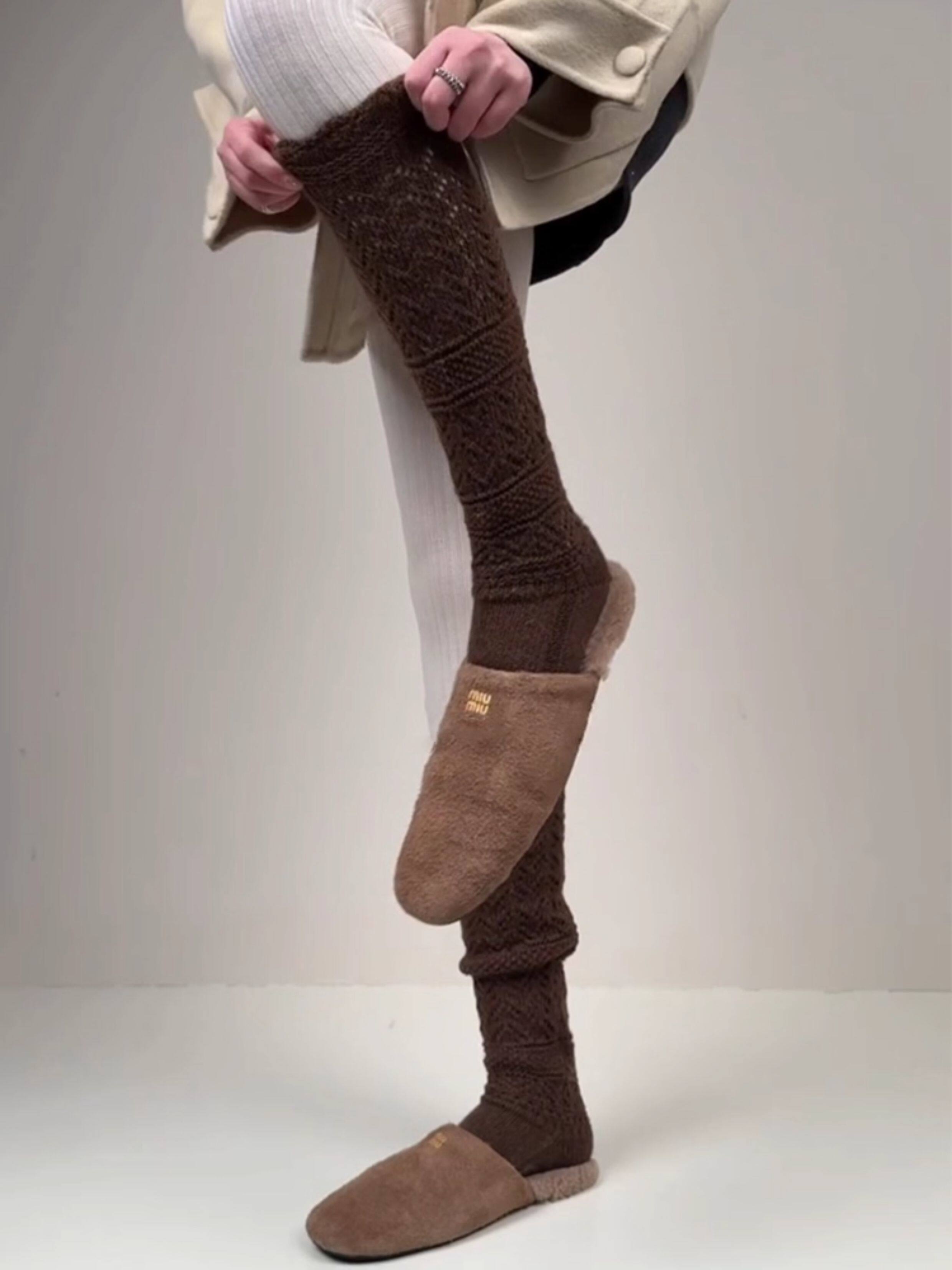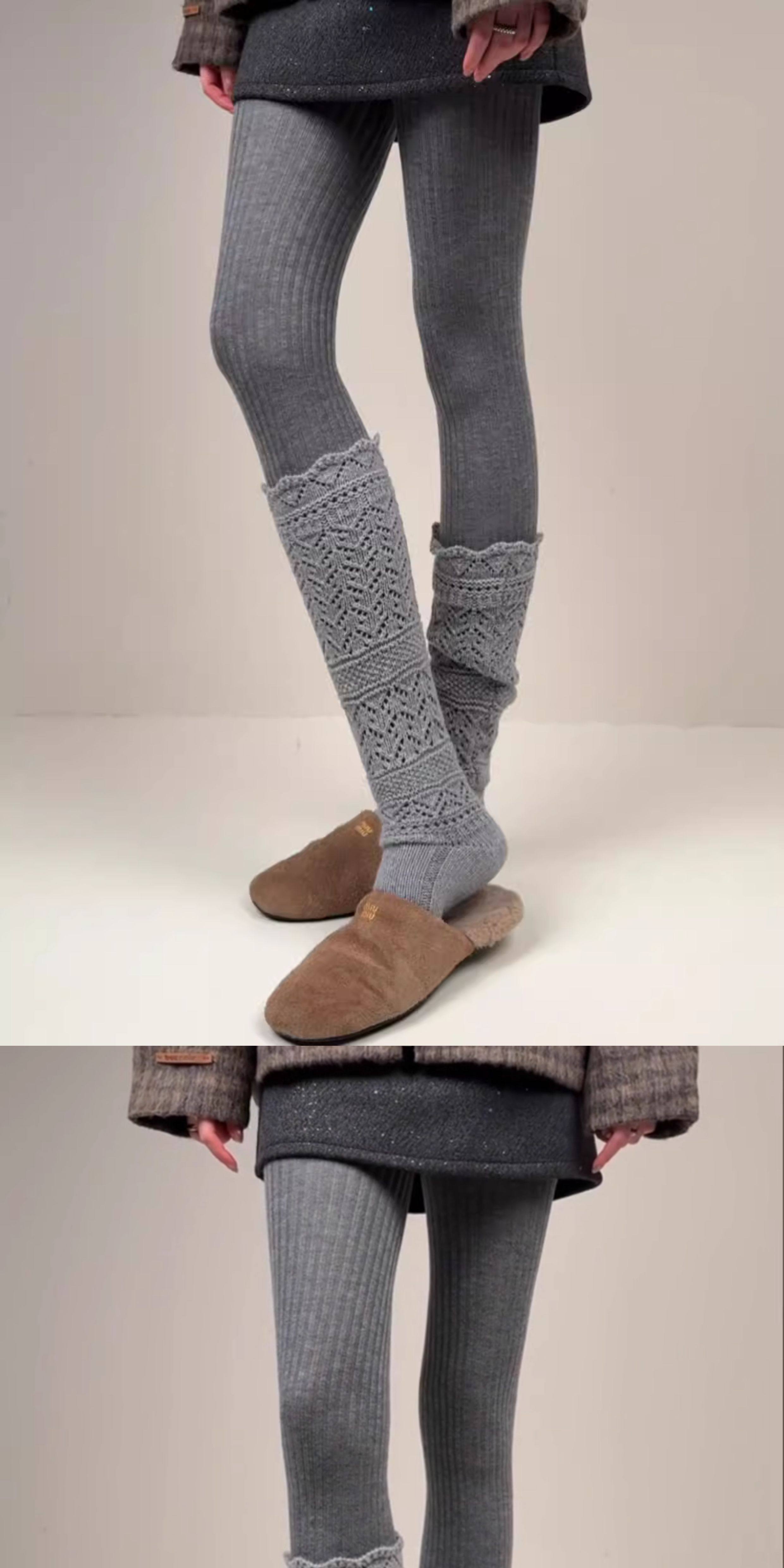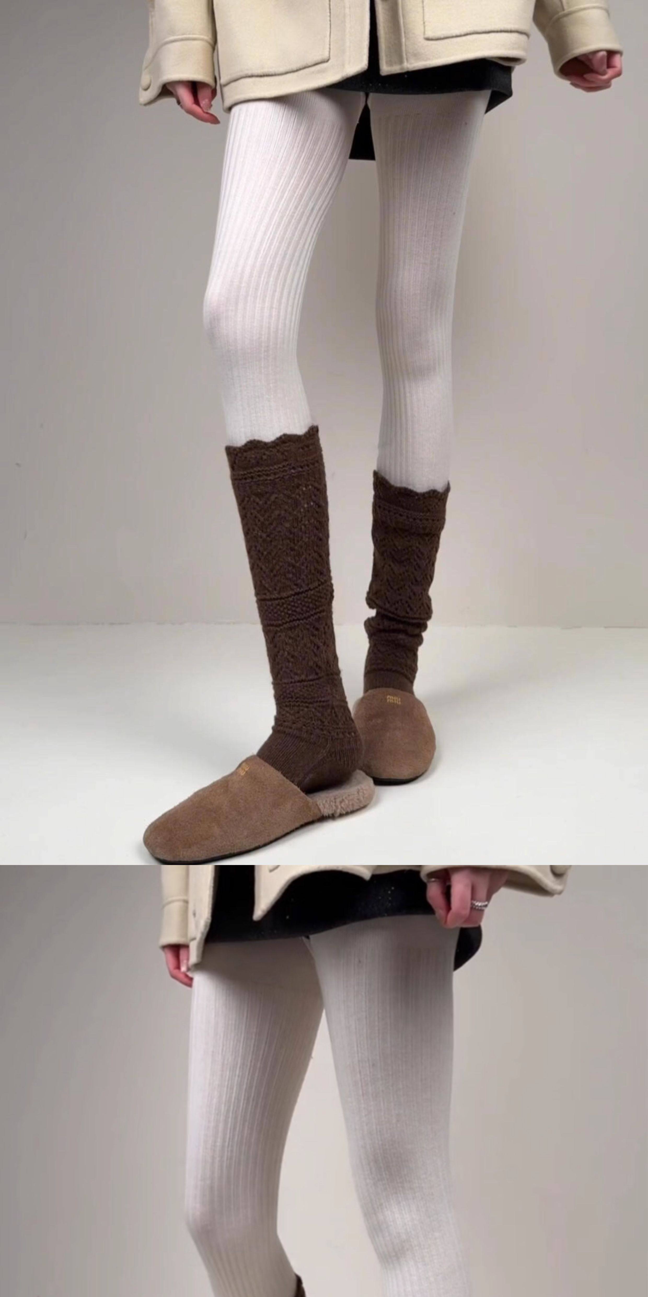 Weixue Style Knitted Hollow-Out Calf Socks for Women, Spring and Autumn Warm Wool Slouch Socks, Autumn and Winter Lace Wool Long Socks